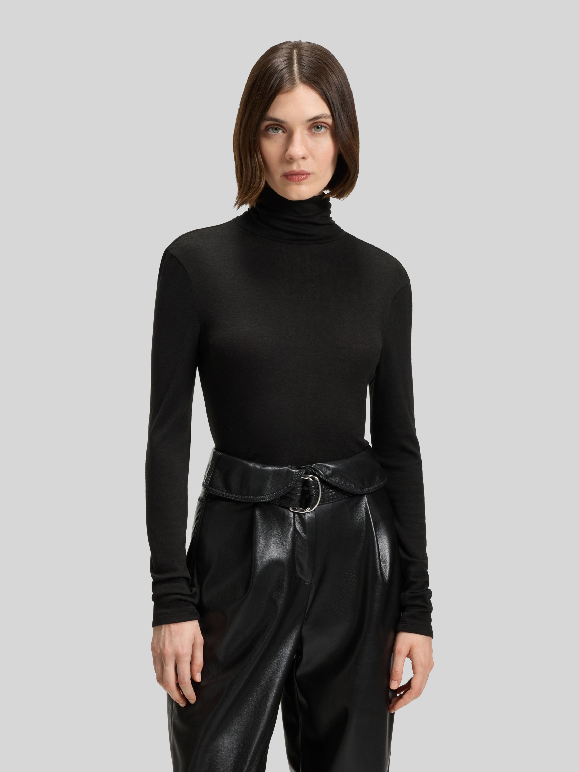 Bluzka z długim rękawem o kroju slim fit z mieszanki lyocellu - czarny