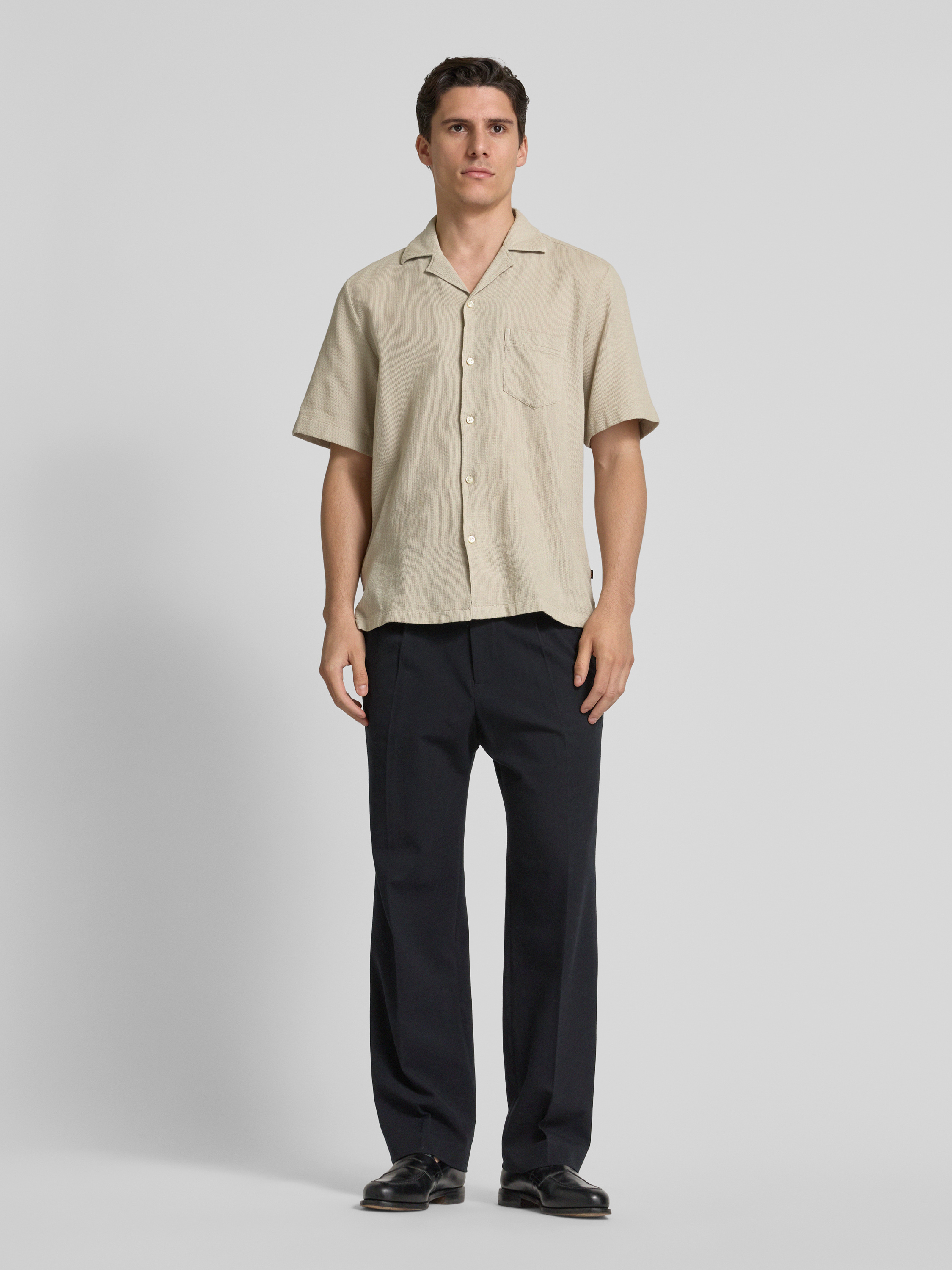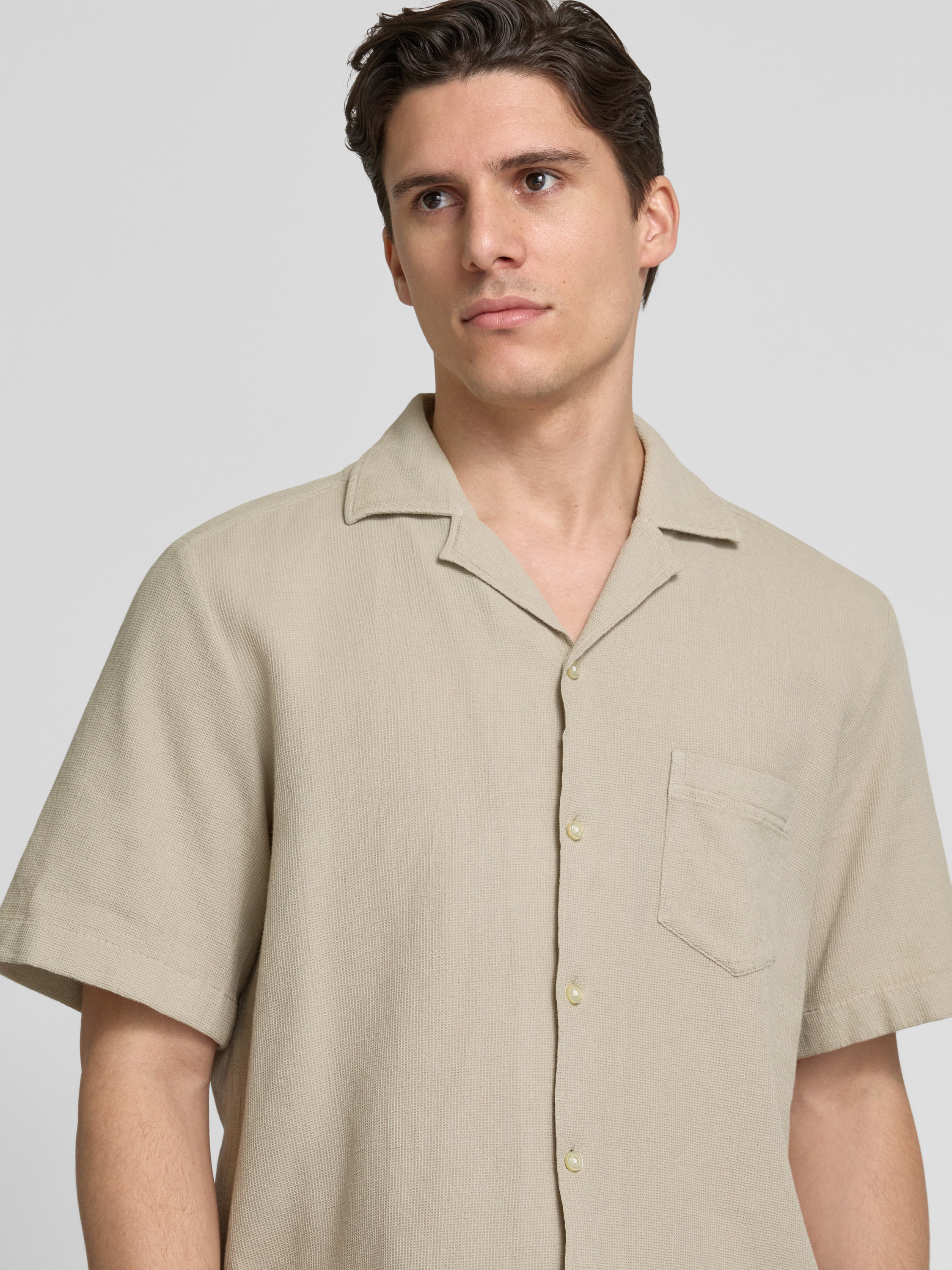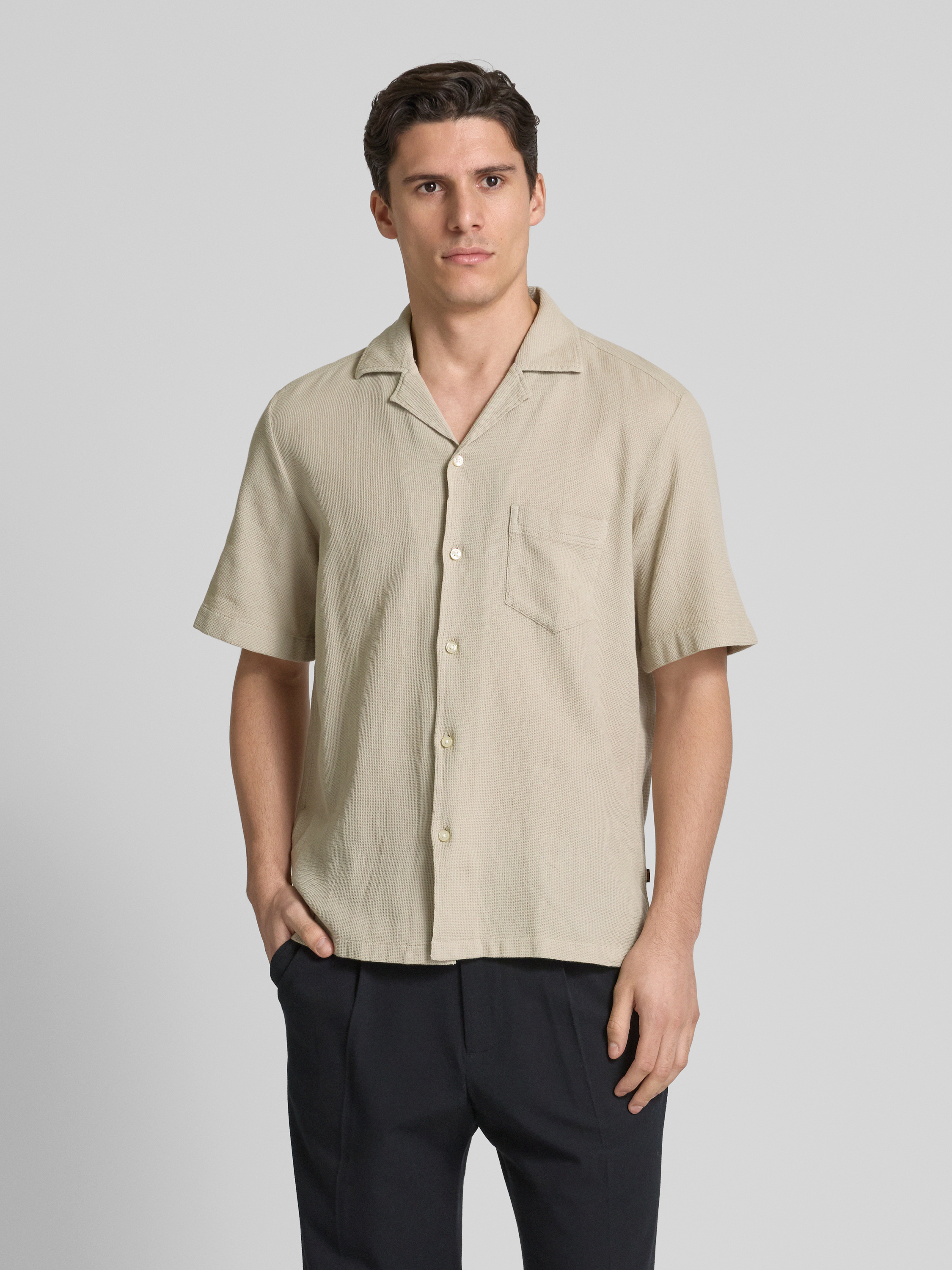Koszula casualowa o kroju regular fit z fakturowanym wzorem model ‘Raye’ - piaskowy