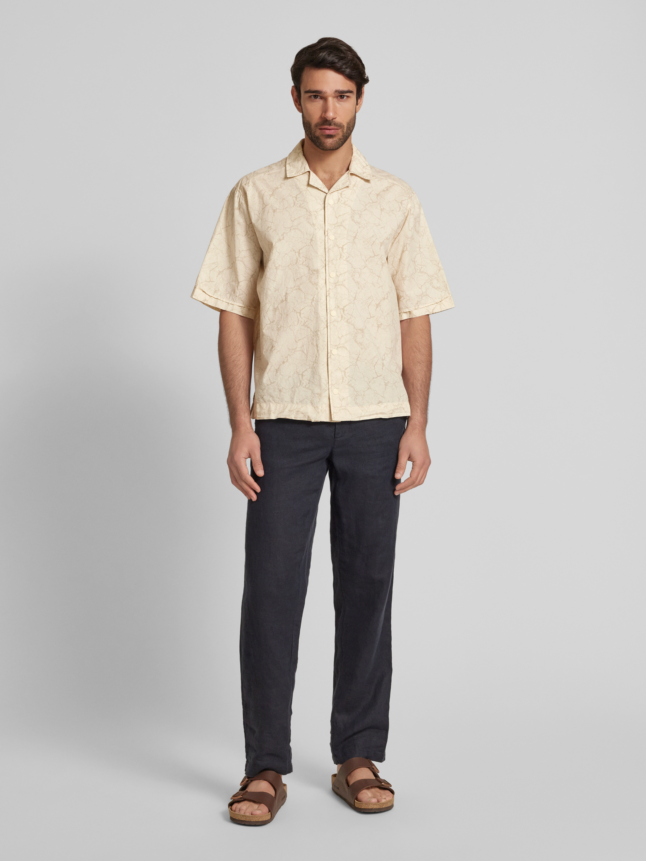 Koszula casualowa o kroju relaxed fit z rękawem o dł. 1/2 model ‘Lapisy’ - piaskowy