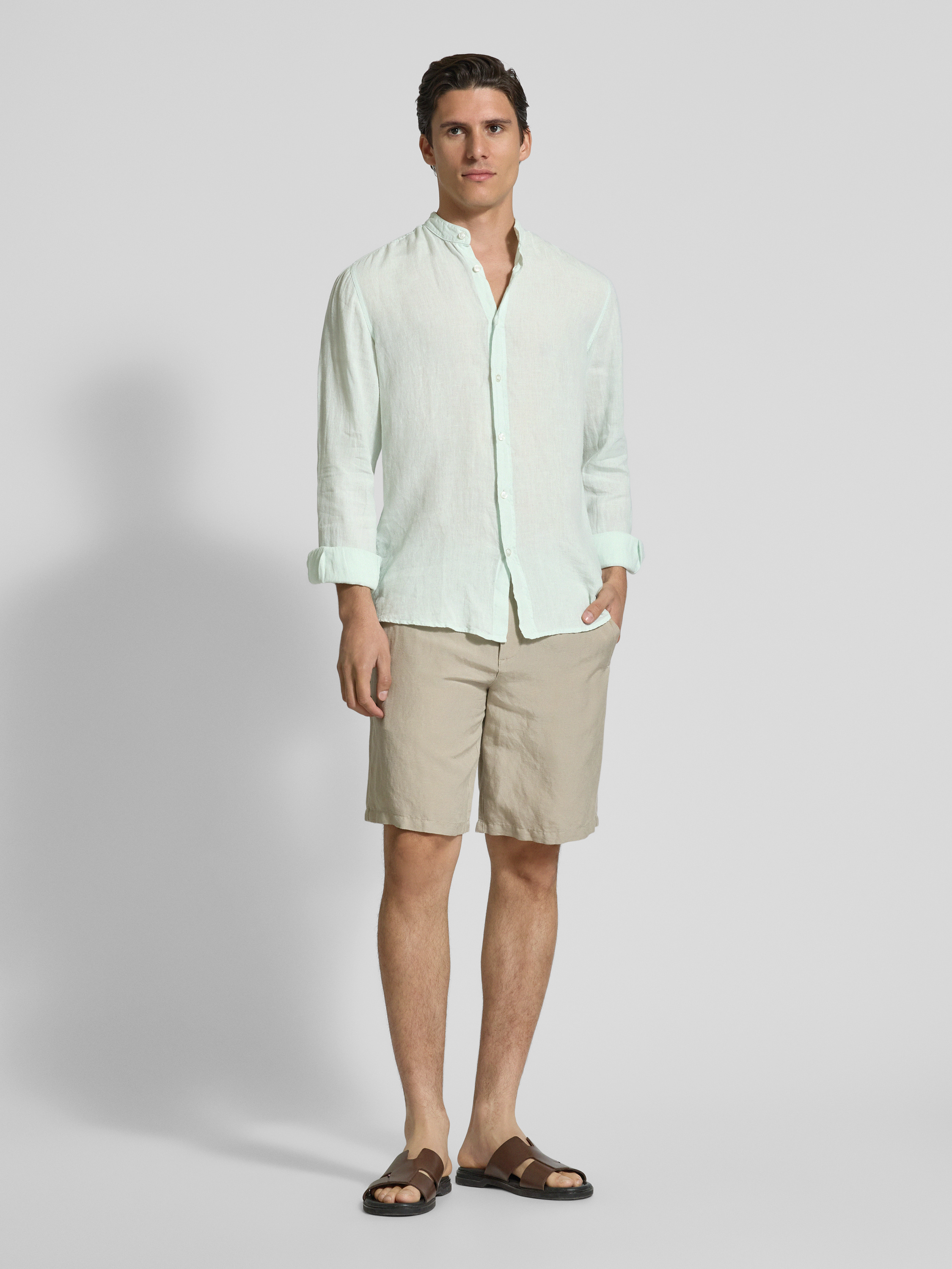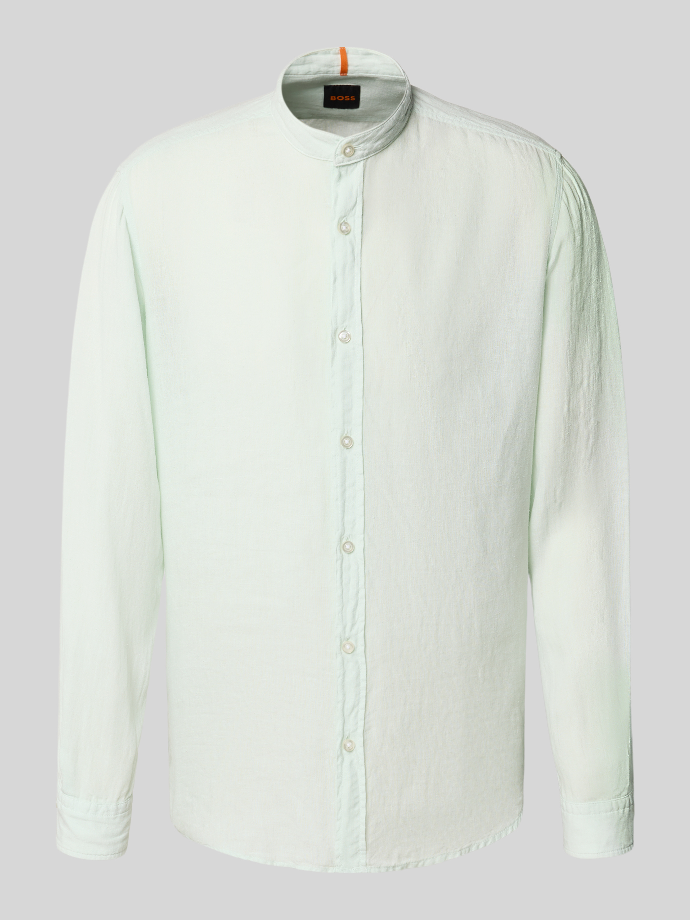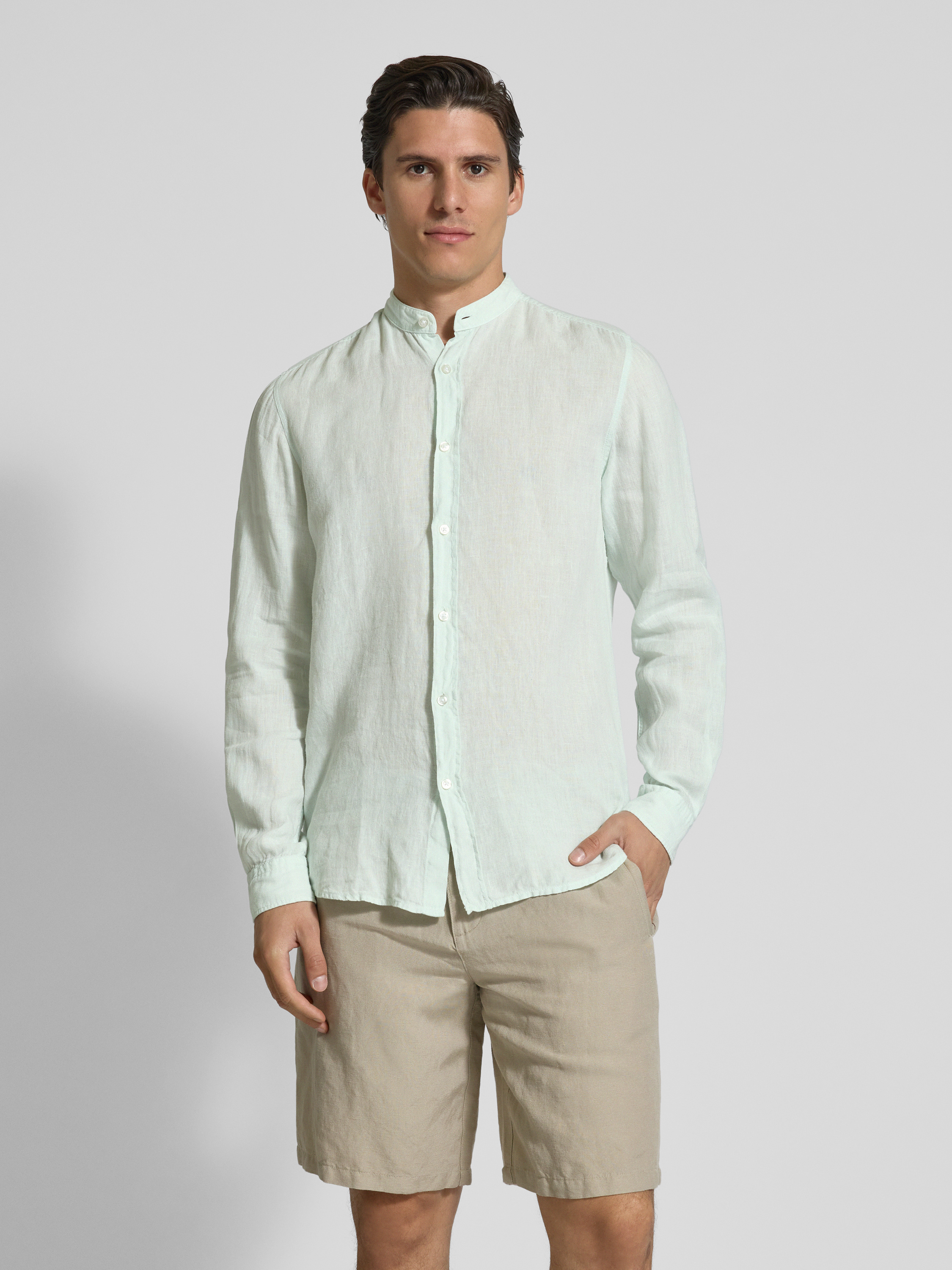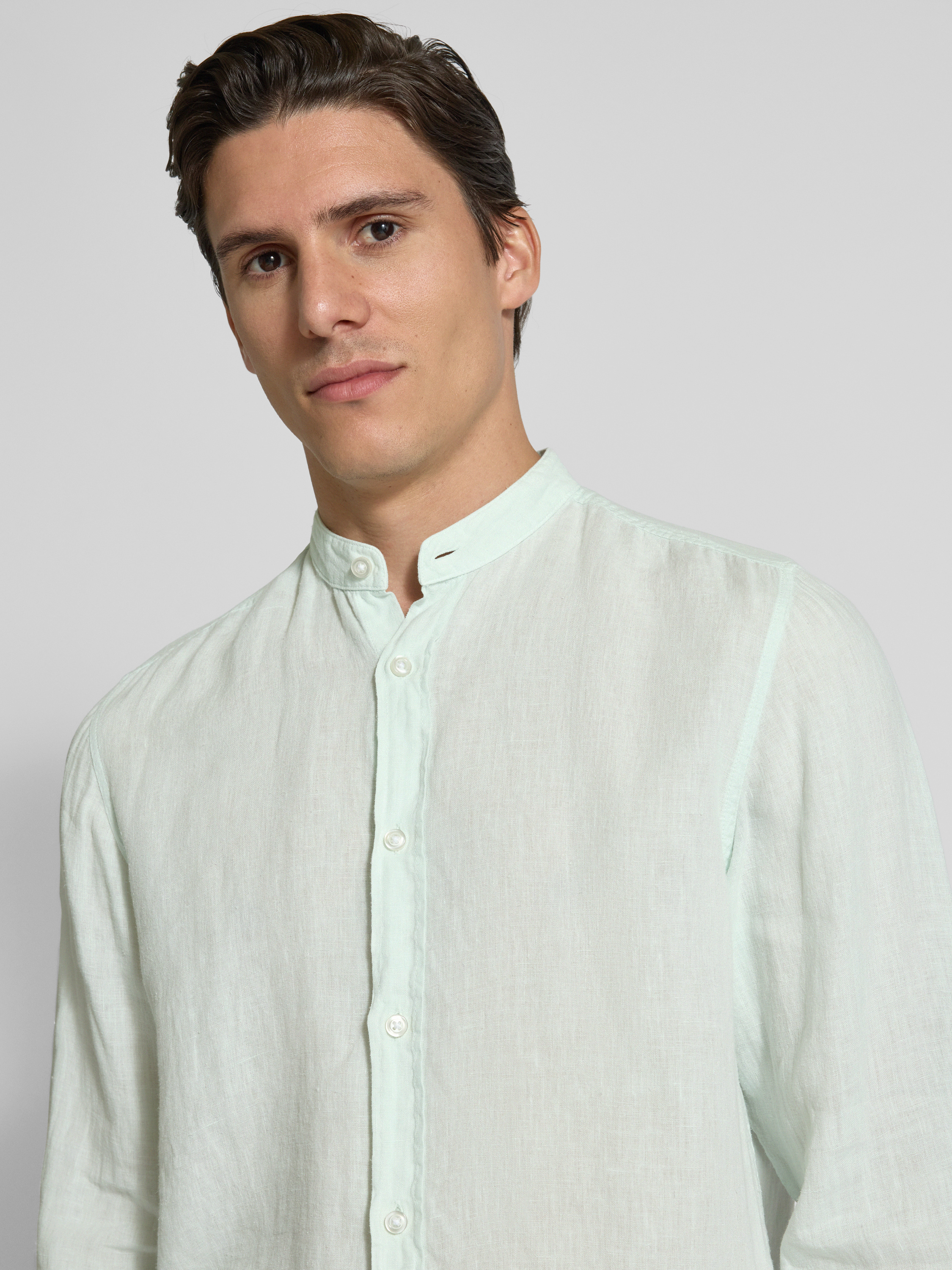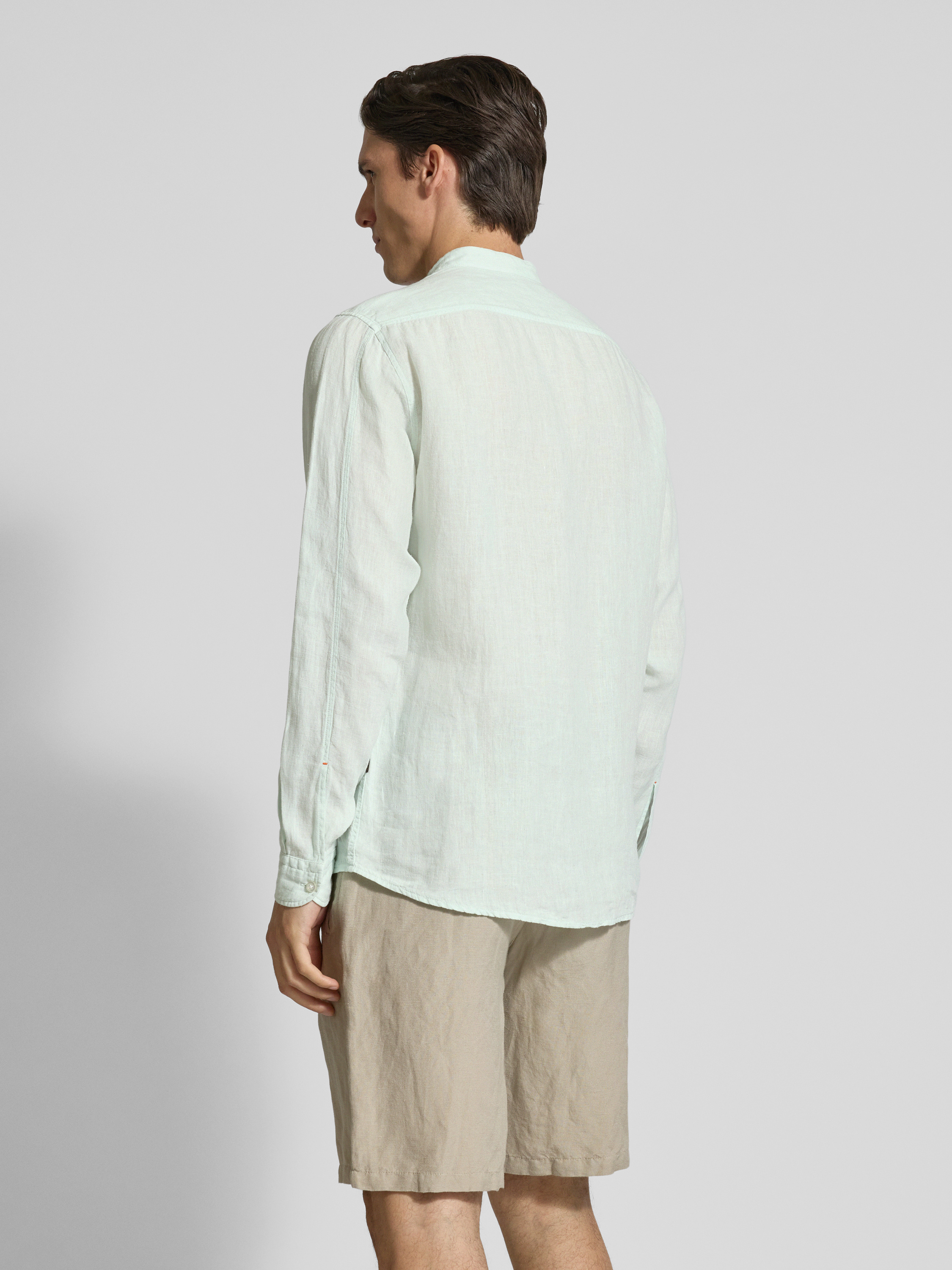 Koszula lniana o kroju regular fit ze stójką model ‘Race’ - limonkowy