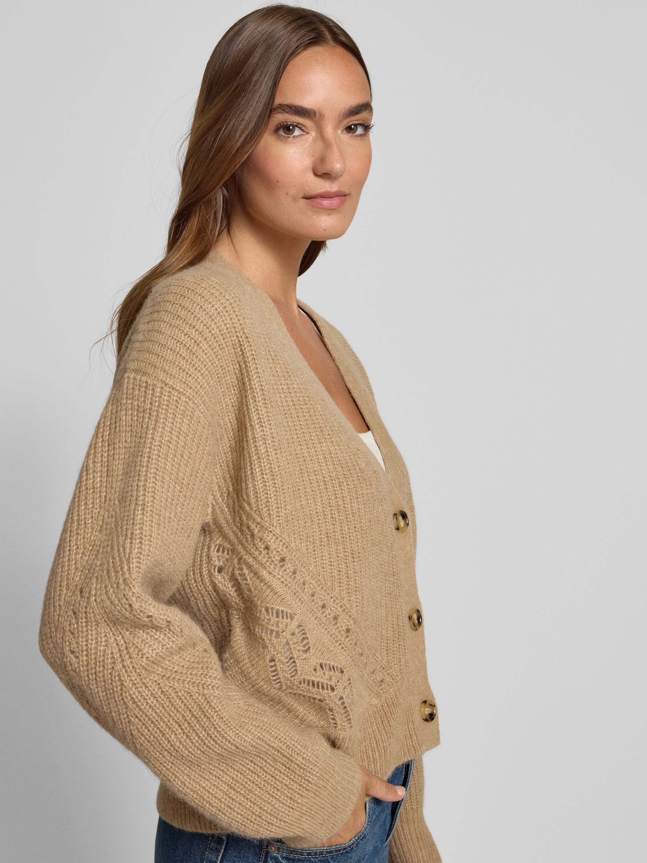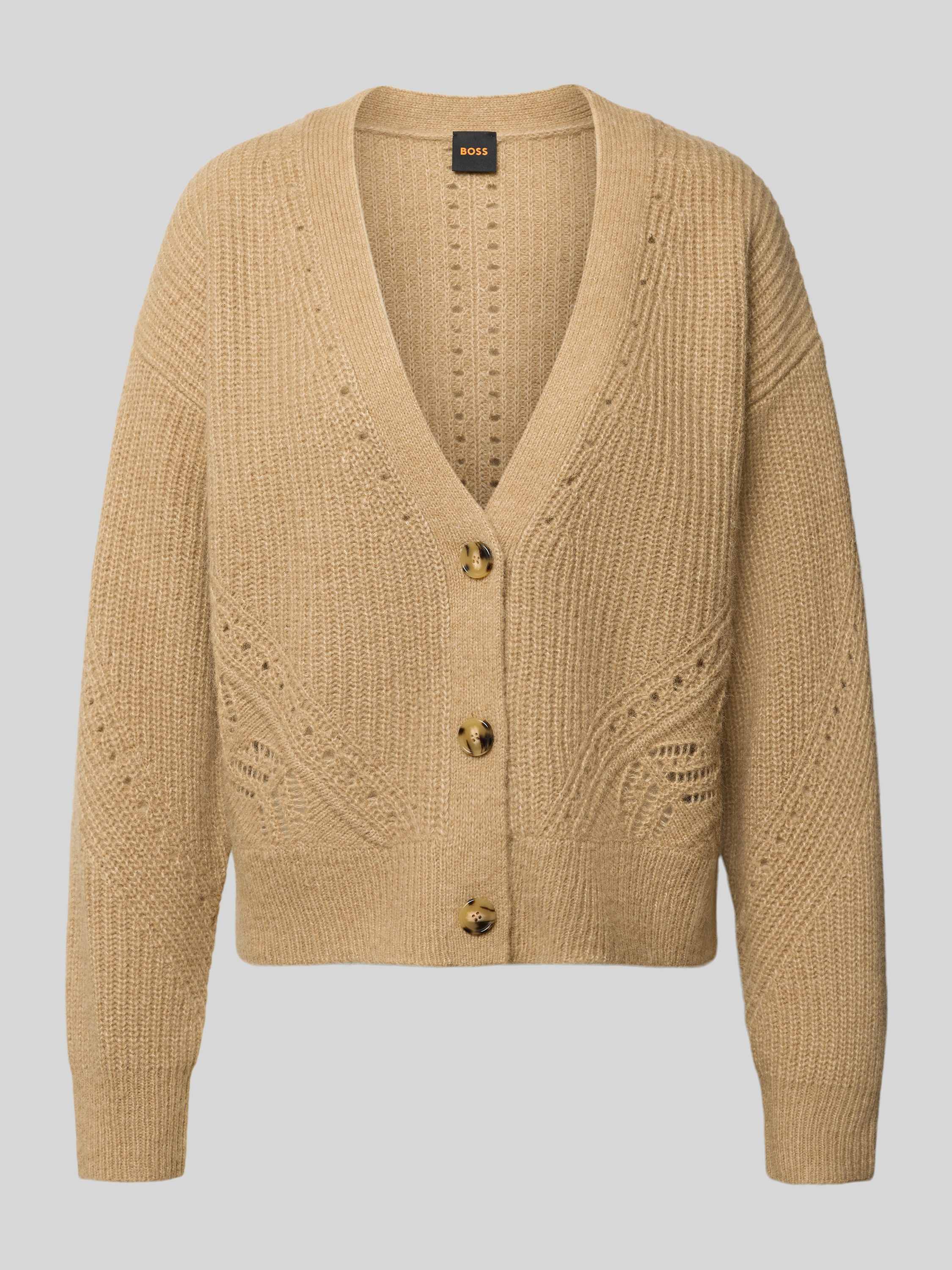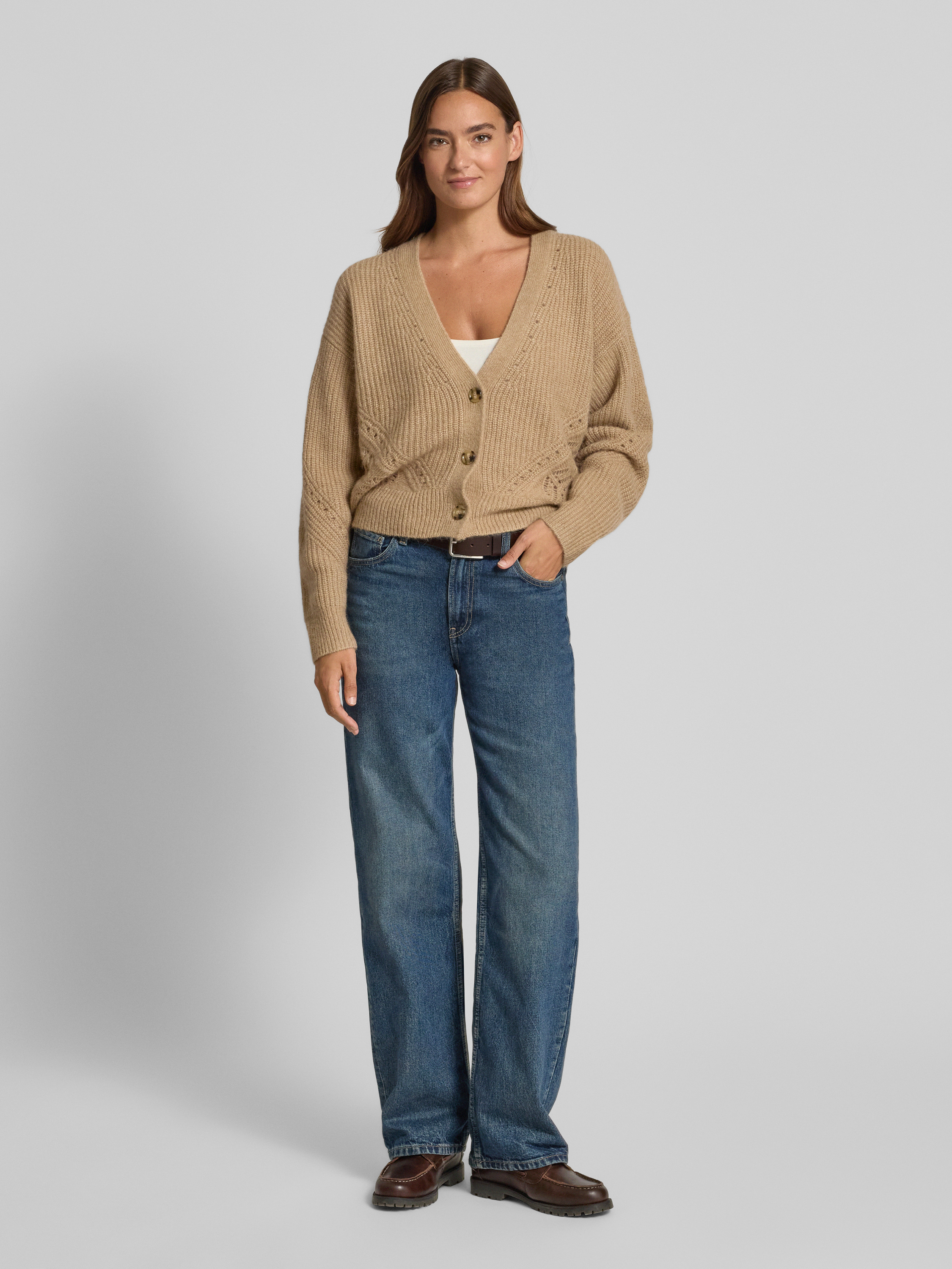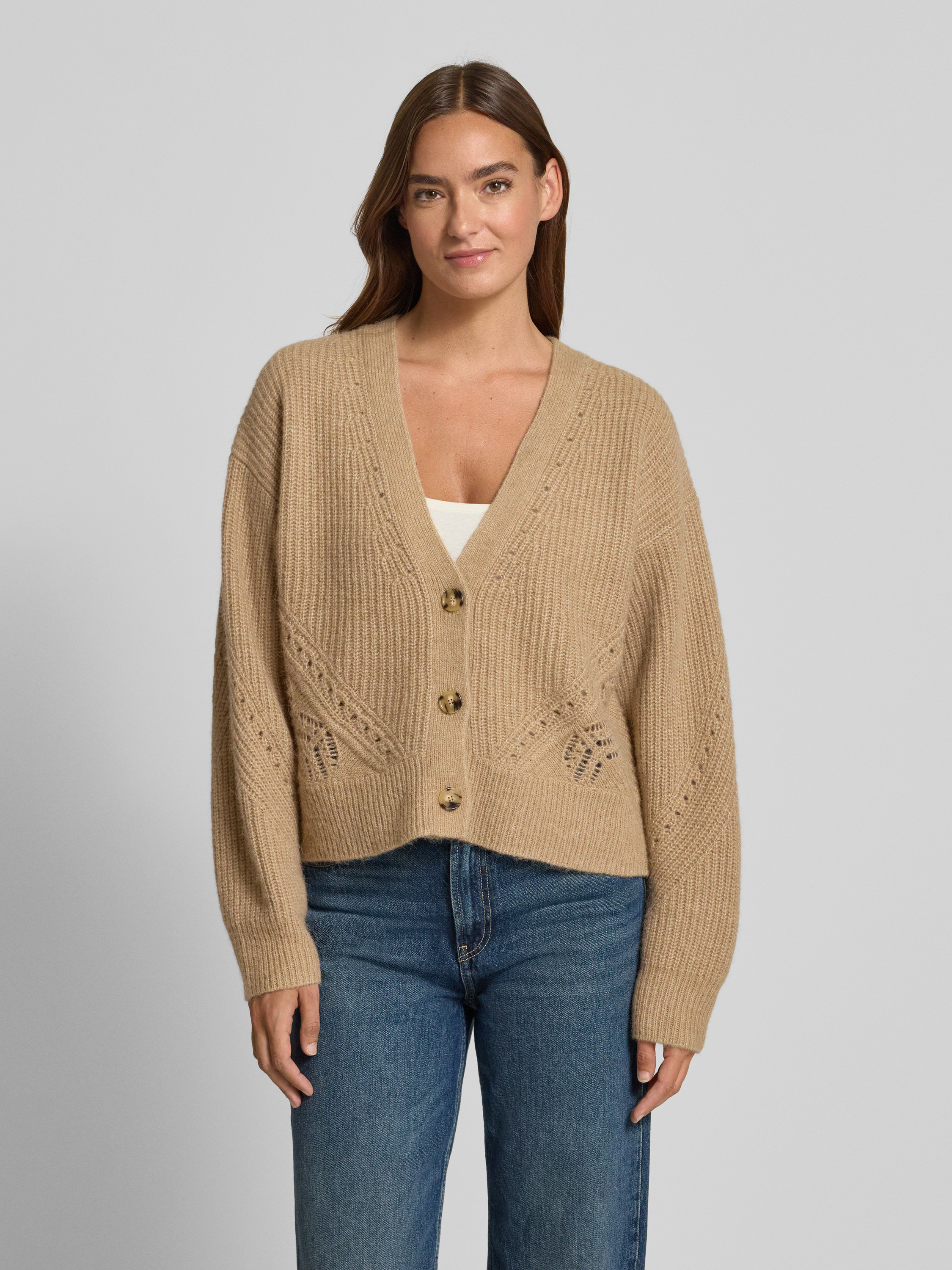 Kurtka z dzianiny o luźnym kroju z mieszanki wełny model ‘FORTELLINI’ - jasnobrązowy