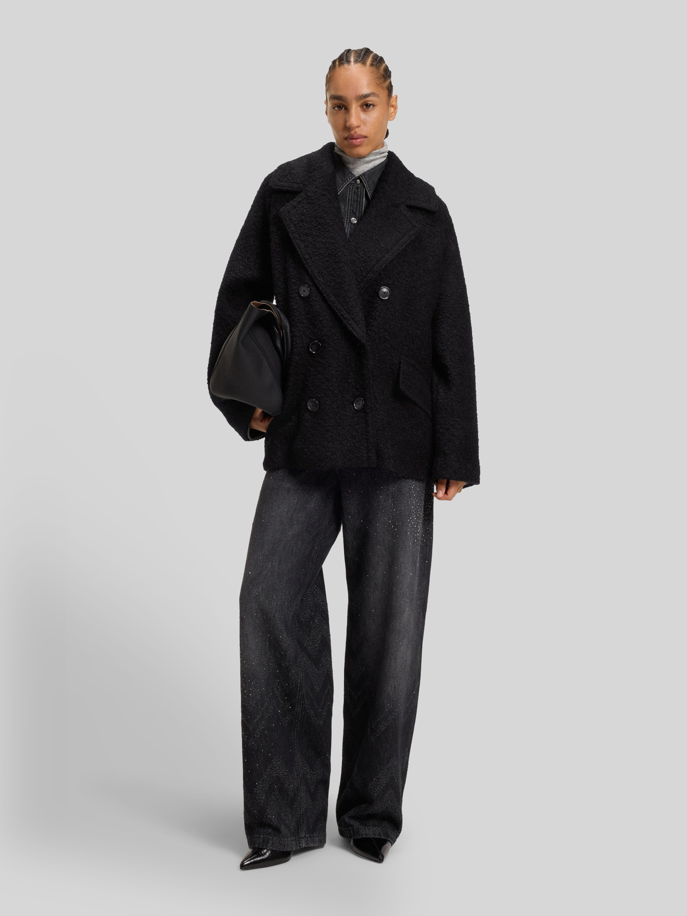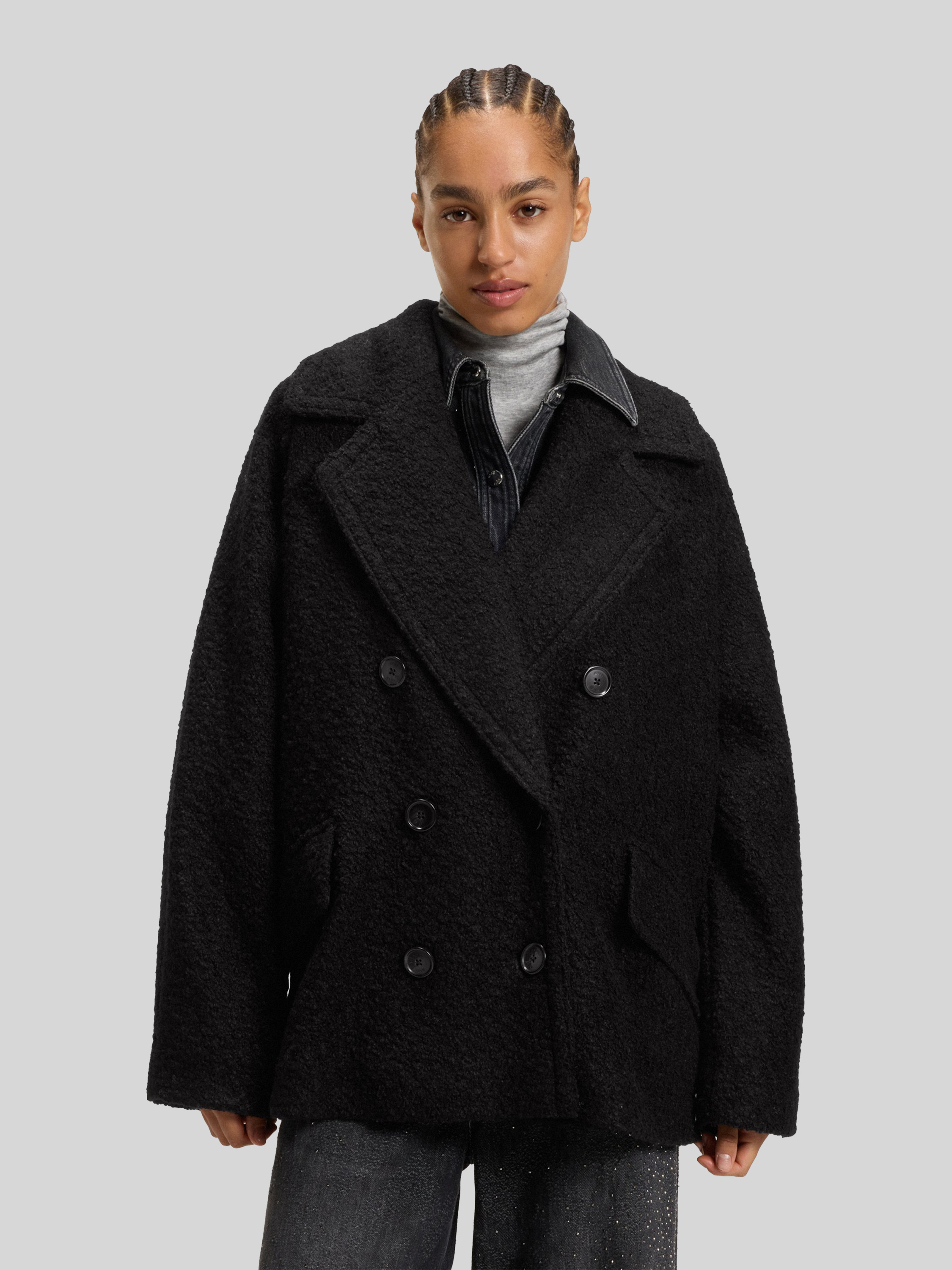 Płaszcz caban o pudełkowym kroju z dodatkiem wełny model ‘CABANI’ - czarny