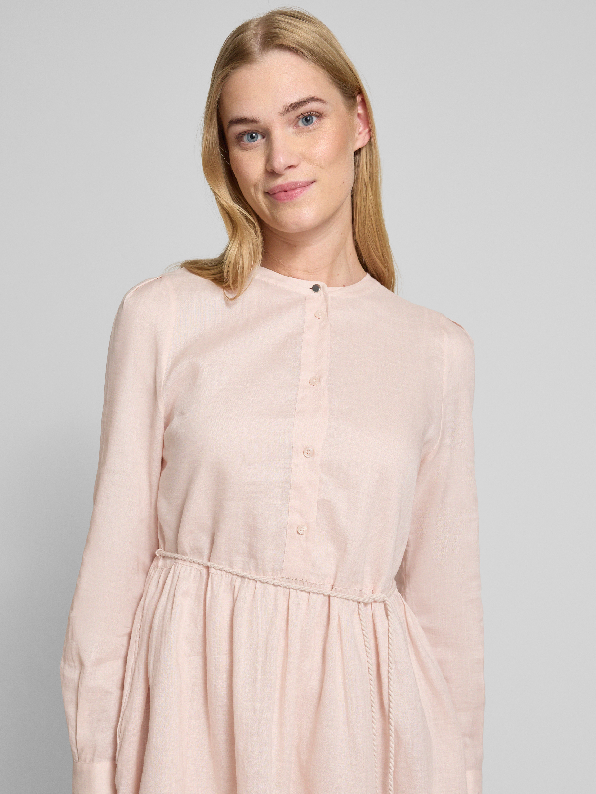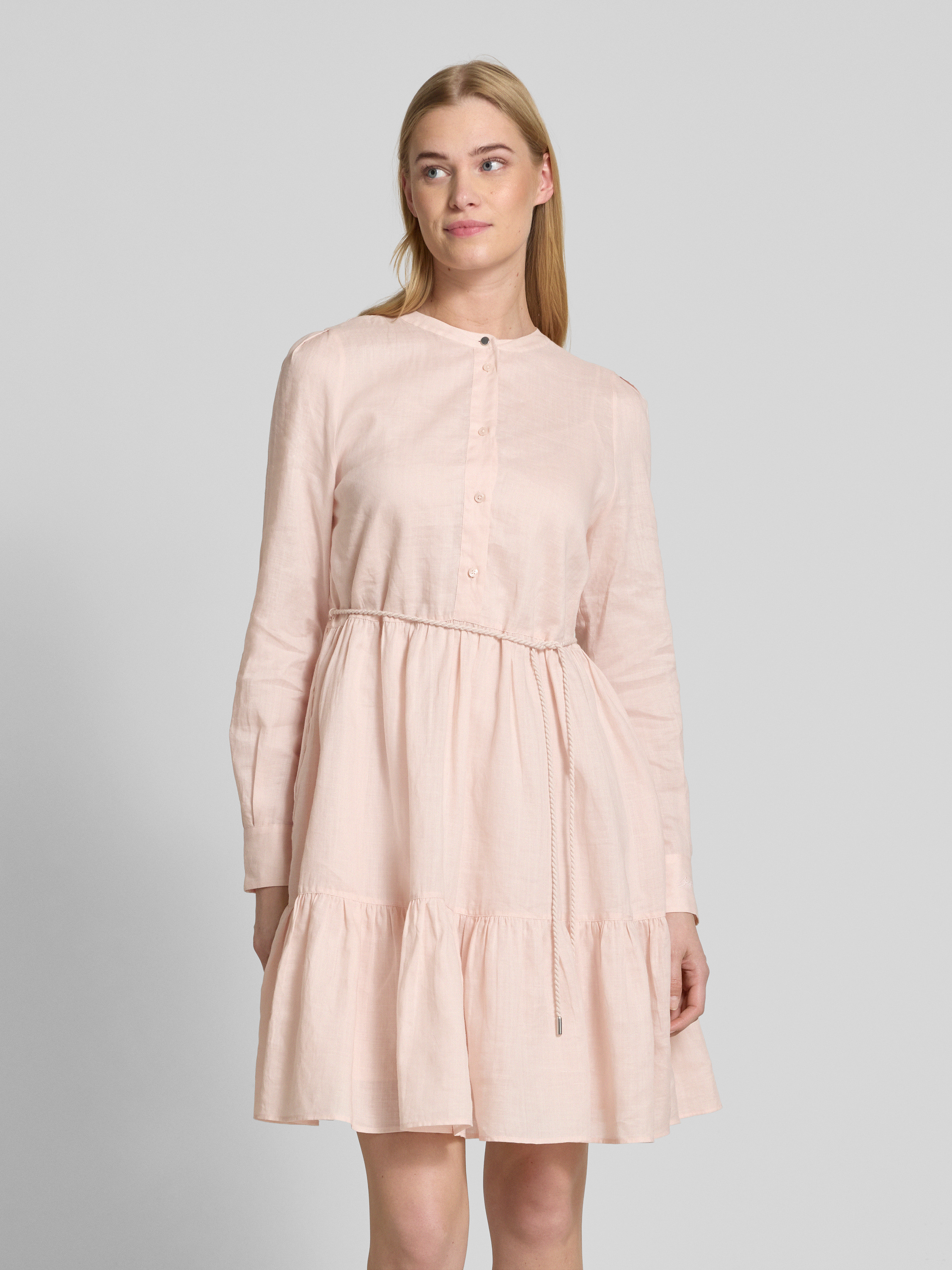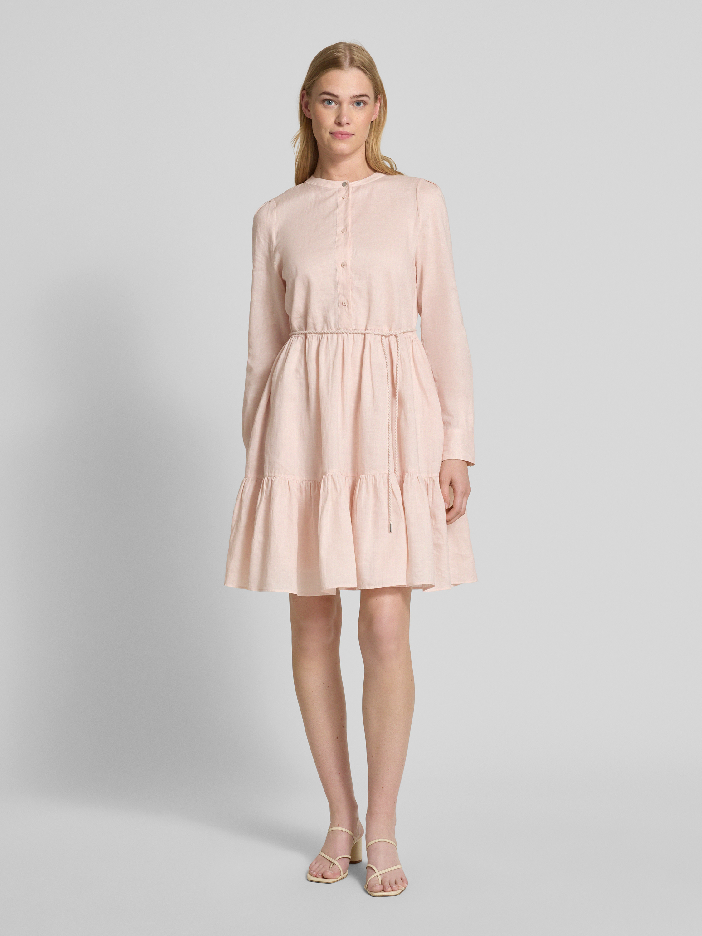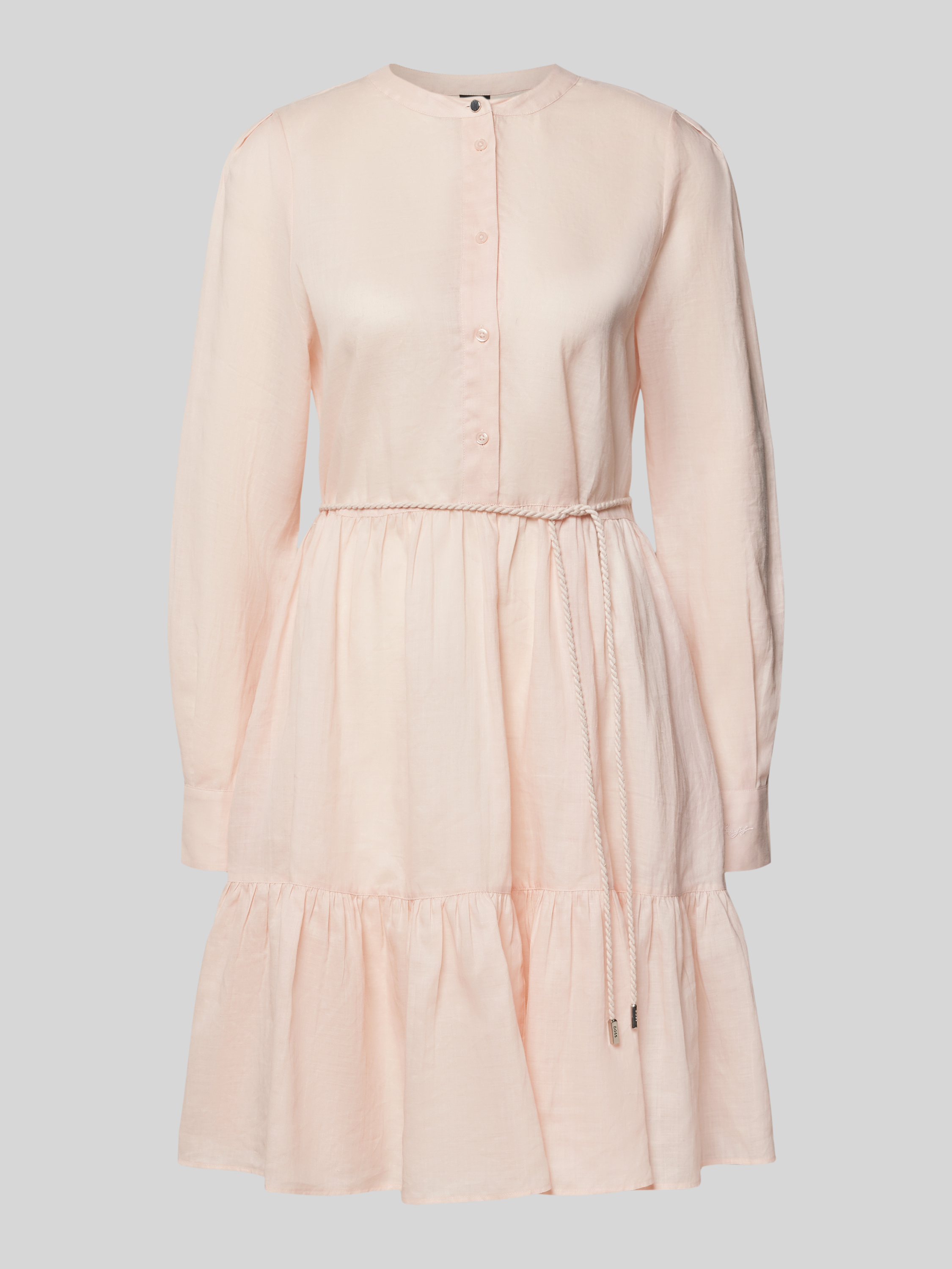 Sukienka koszulowa o długości do kolan z listwą guzikową i wiązanym paskiem - jasnoróżowy