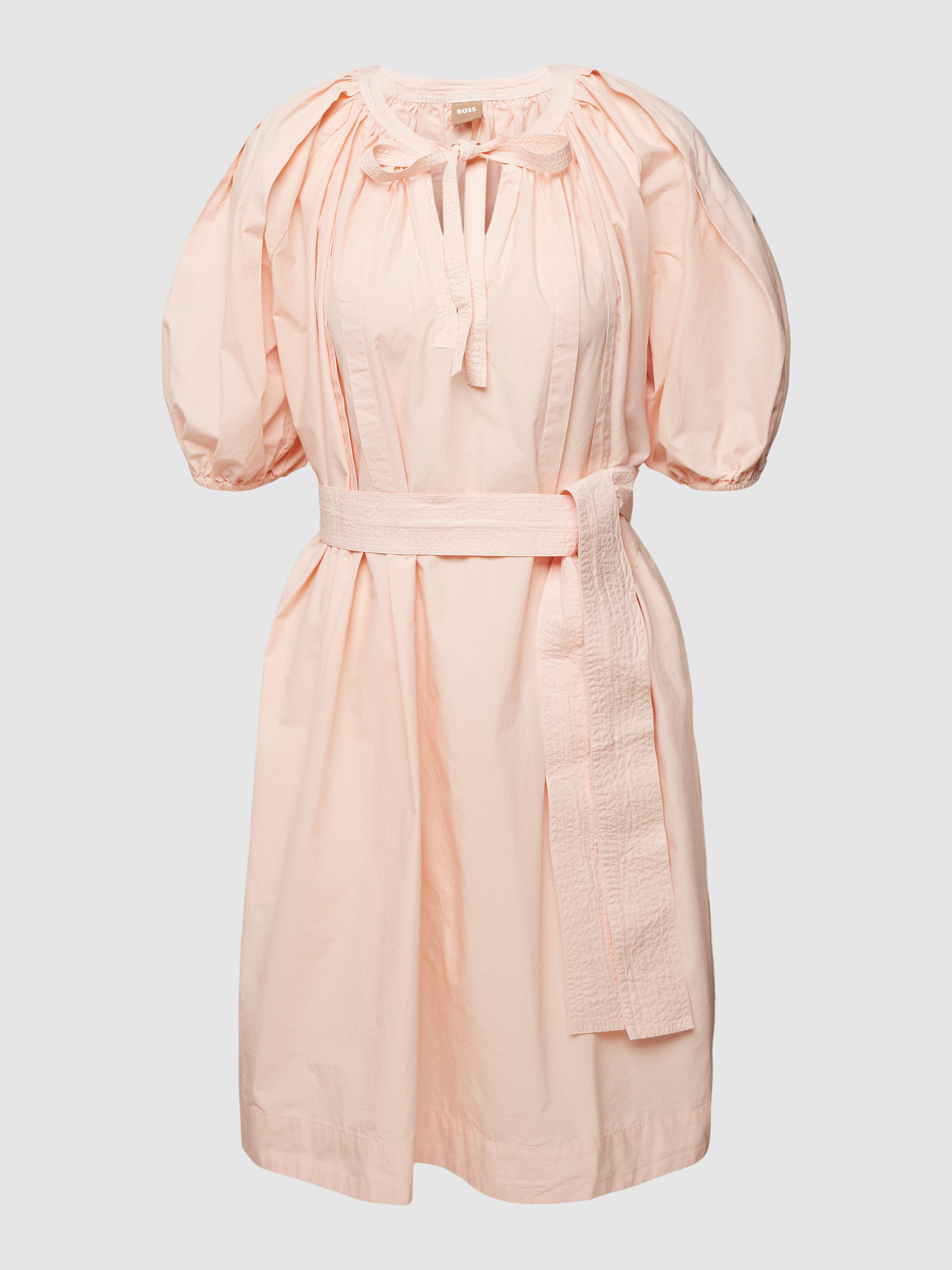 Sukienka o długości do kolan z wiązanym paskiem model ‘Dumpa’ - różowawy