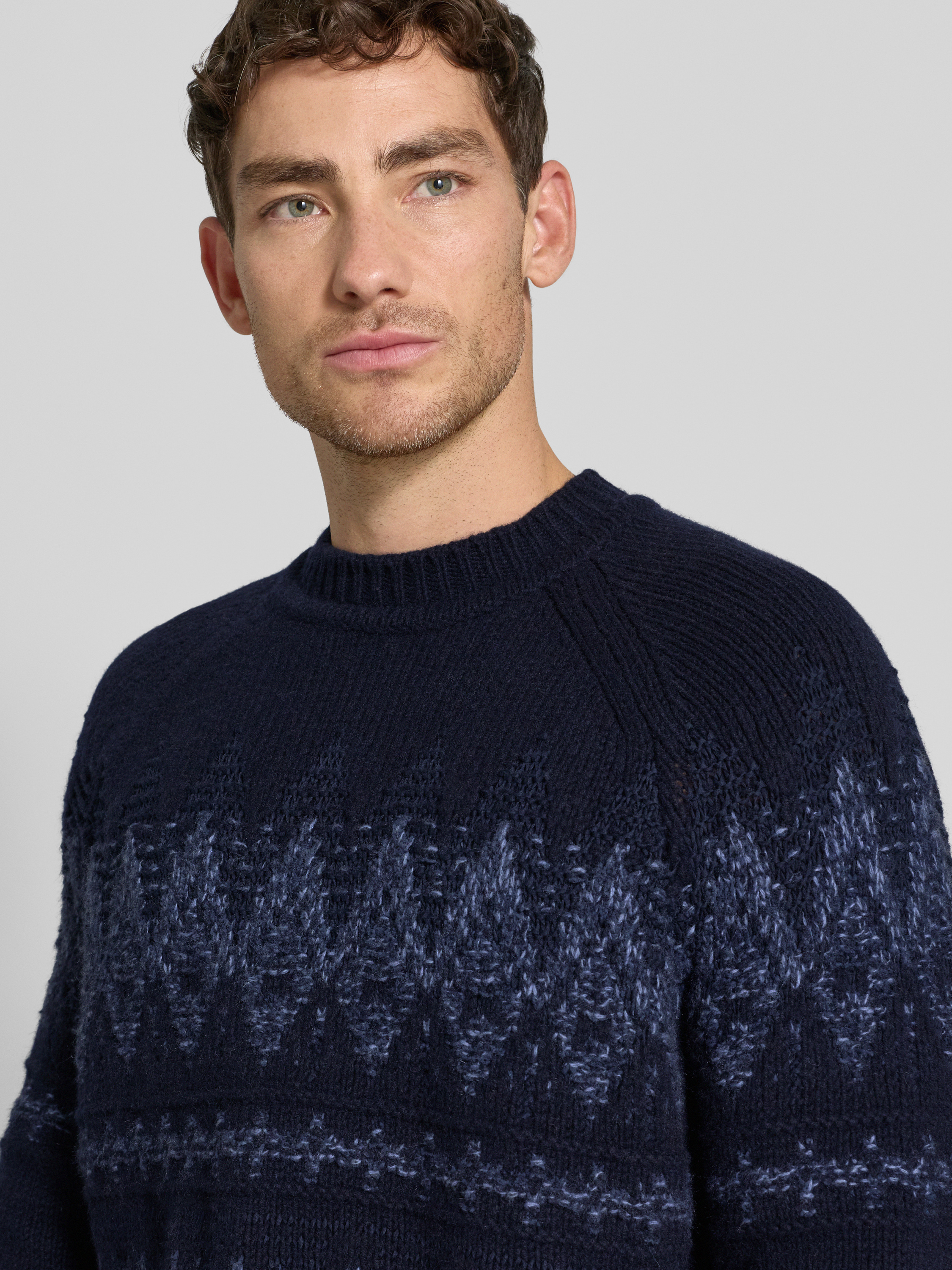 Sweter z dzianiny o kroju relaxed fit z mieszanki wełny model ‘KAROMBO’ - granatowy