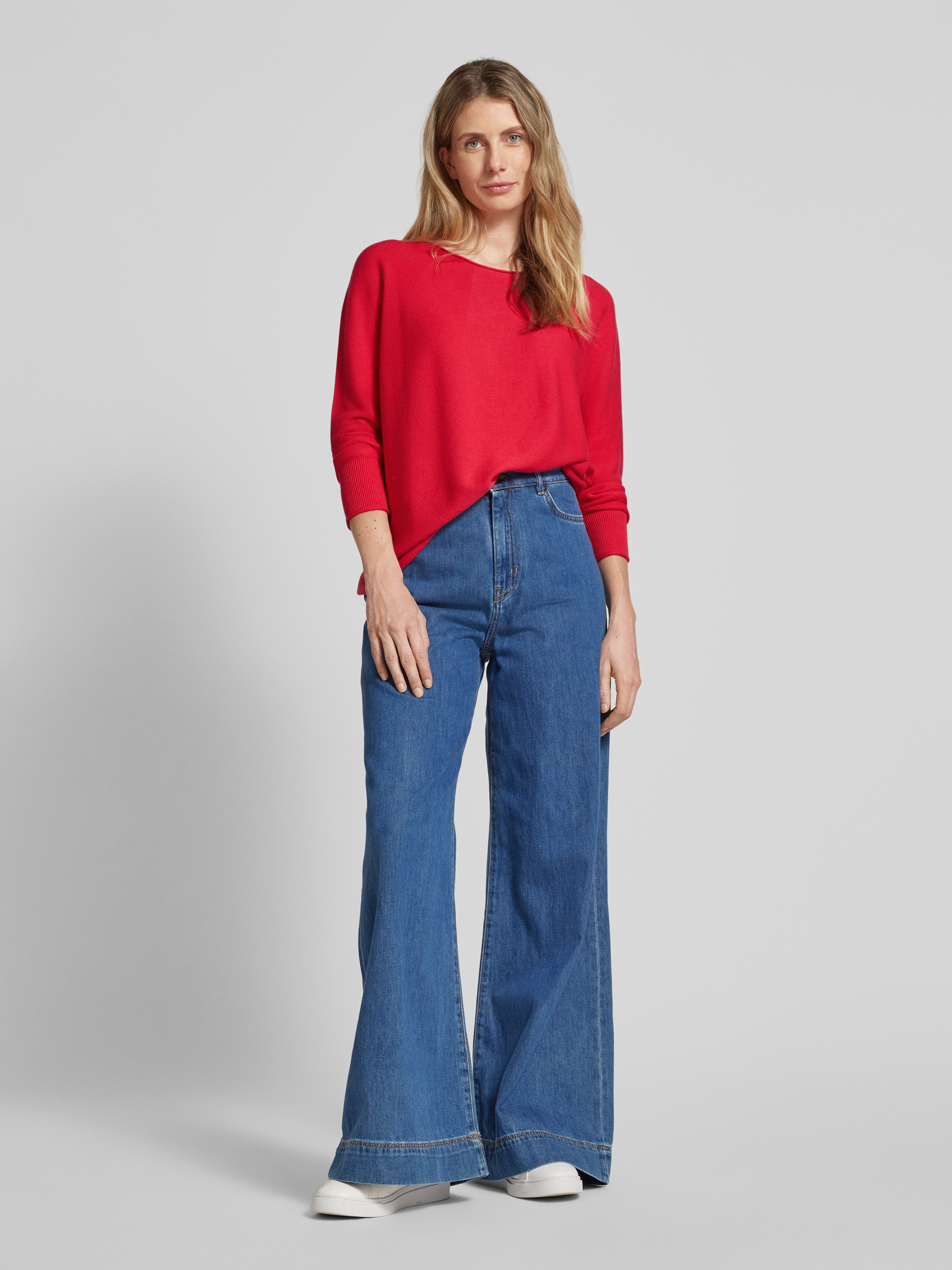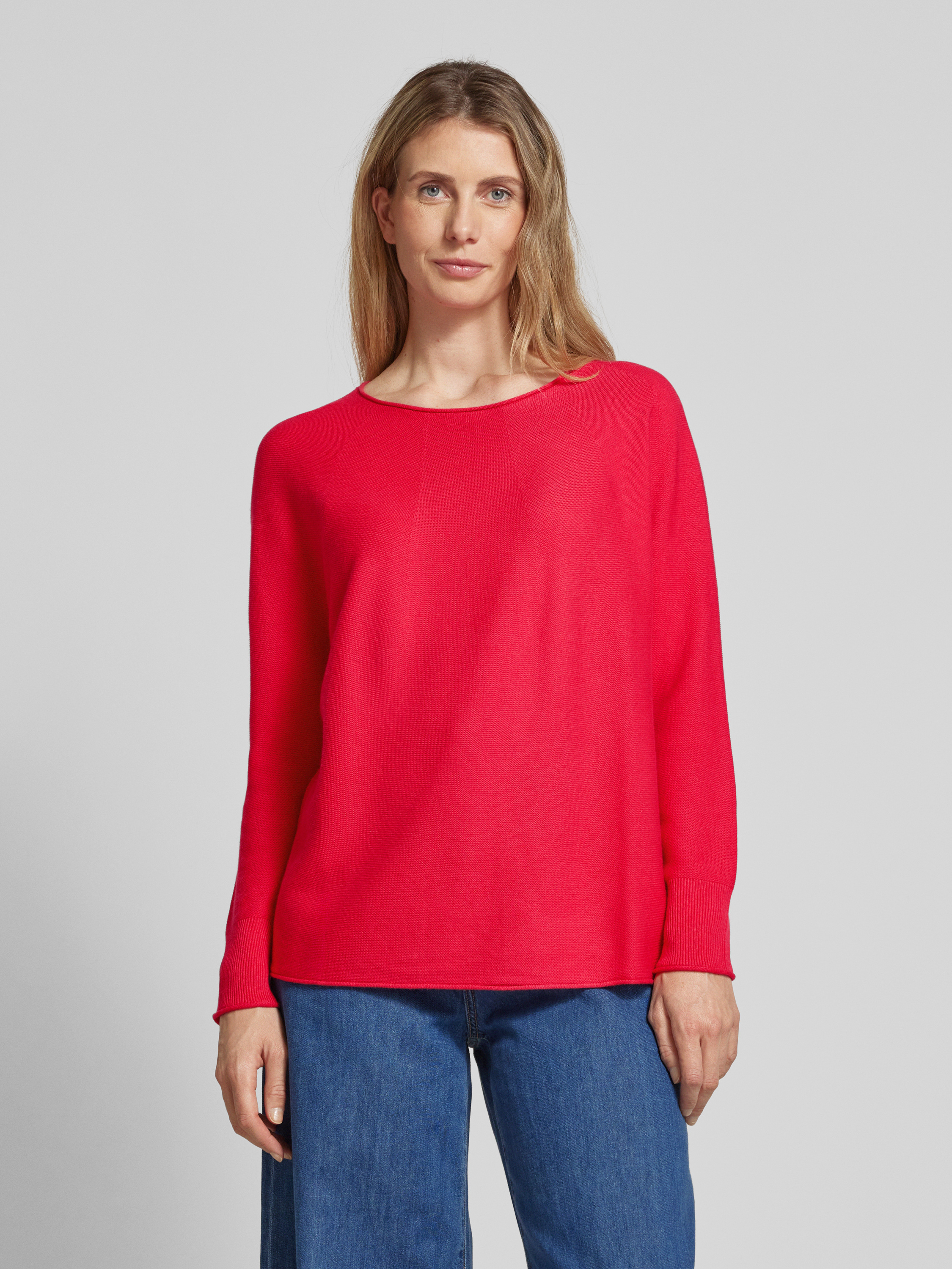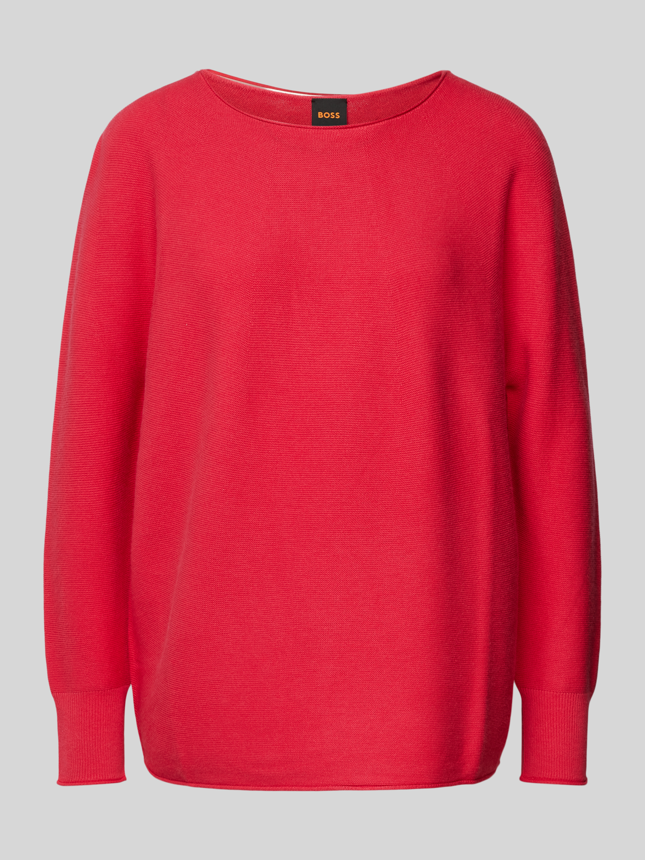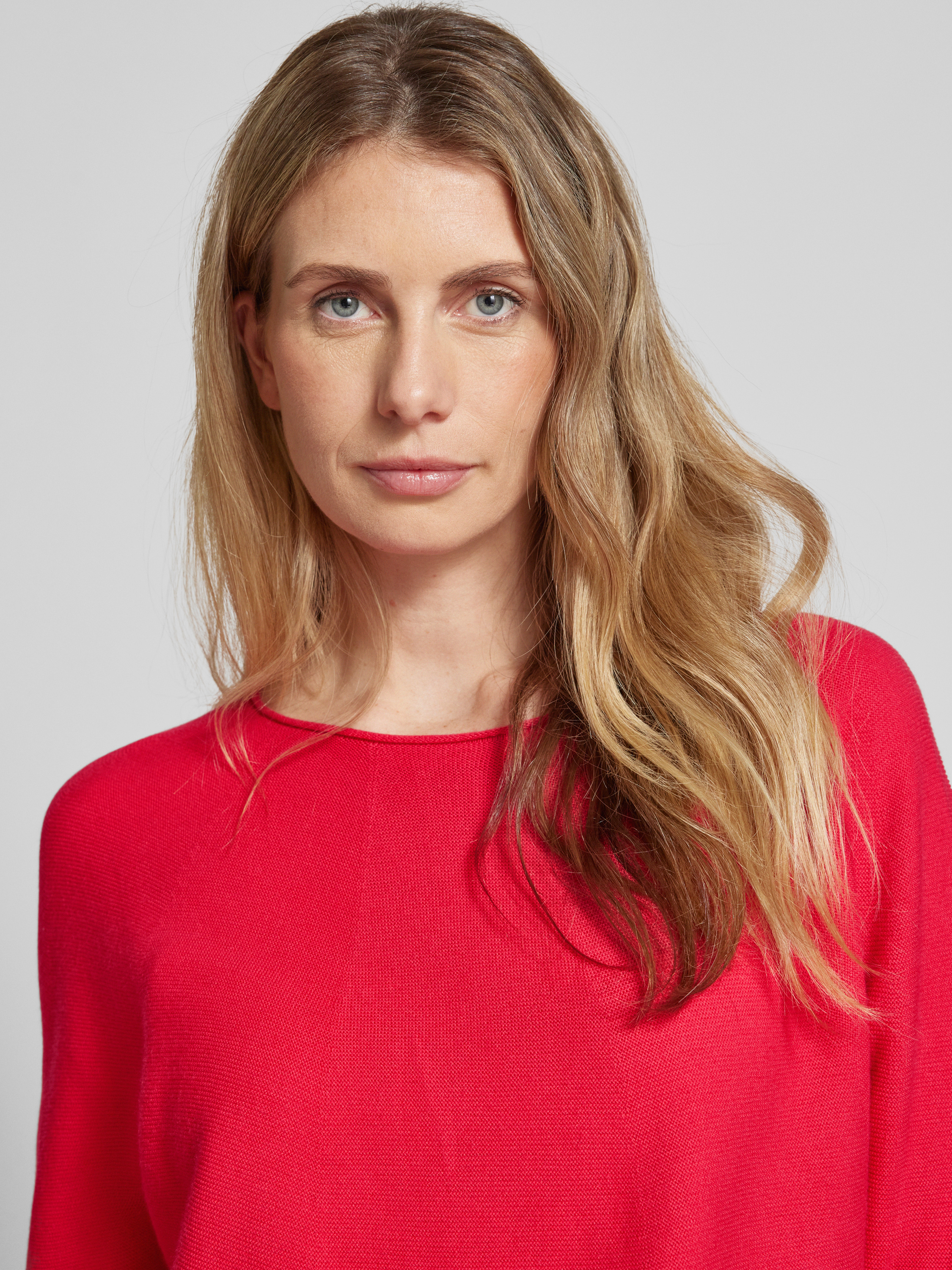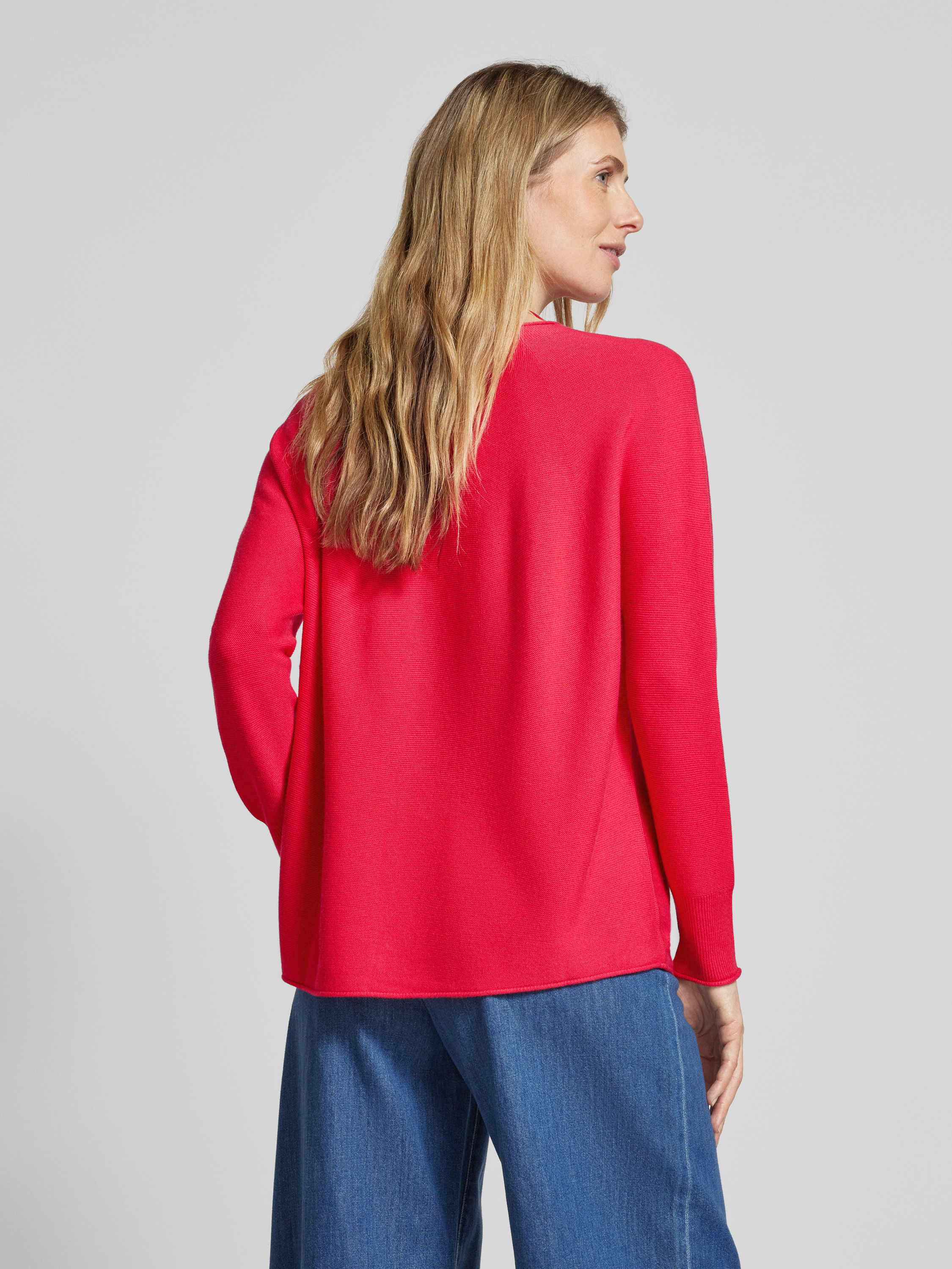 Sweter z dzianiny z bufiastymi rękawami model ‘Falandinas’ - mocnoróżowy