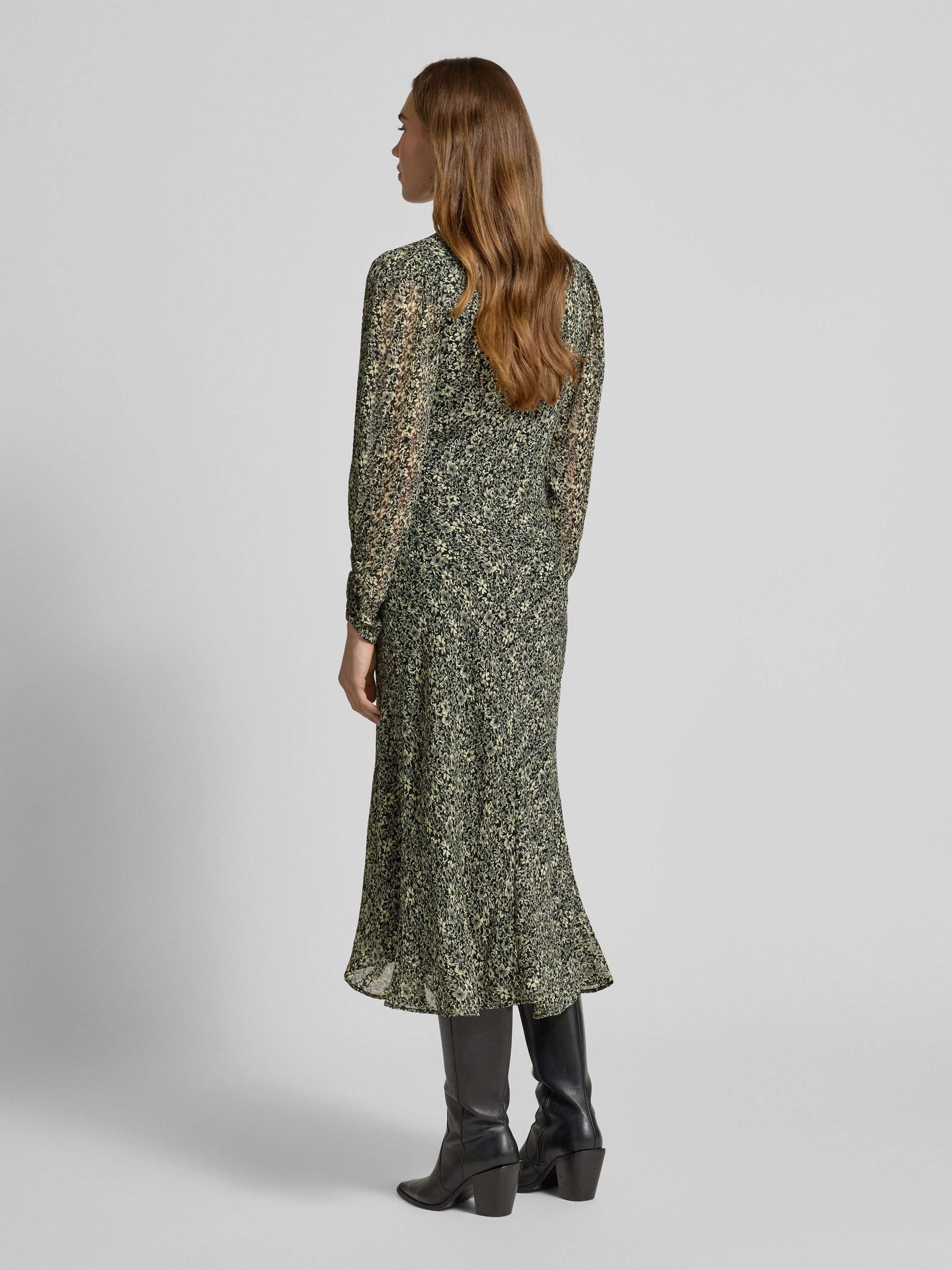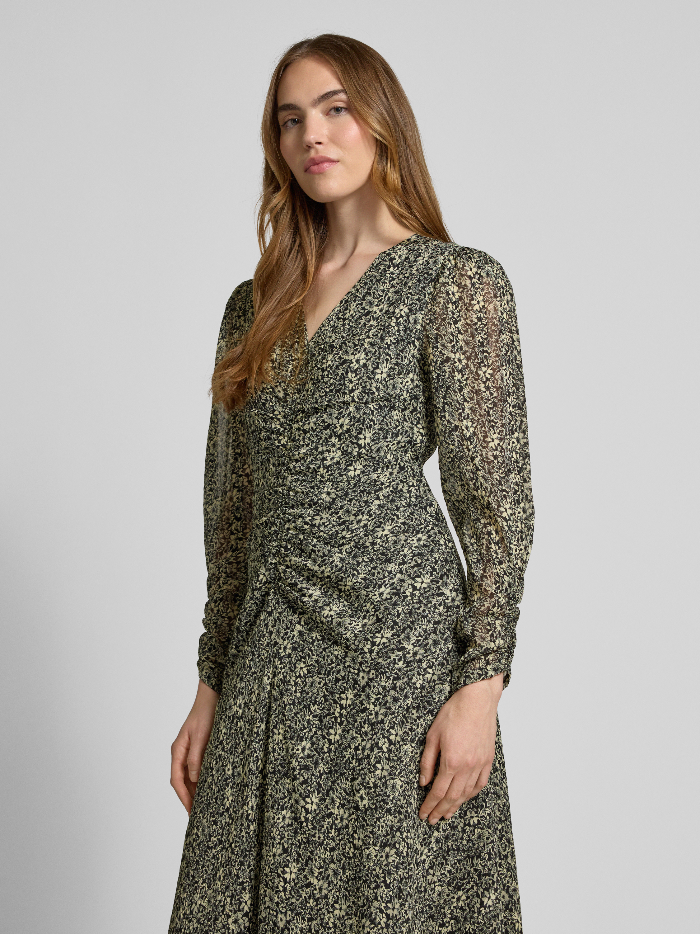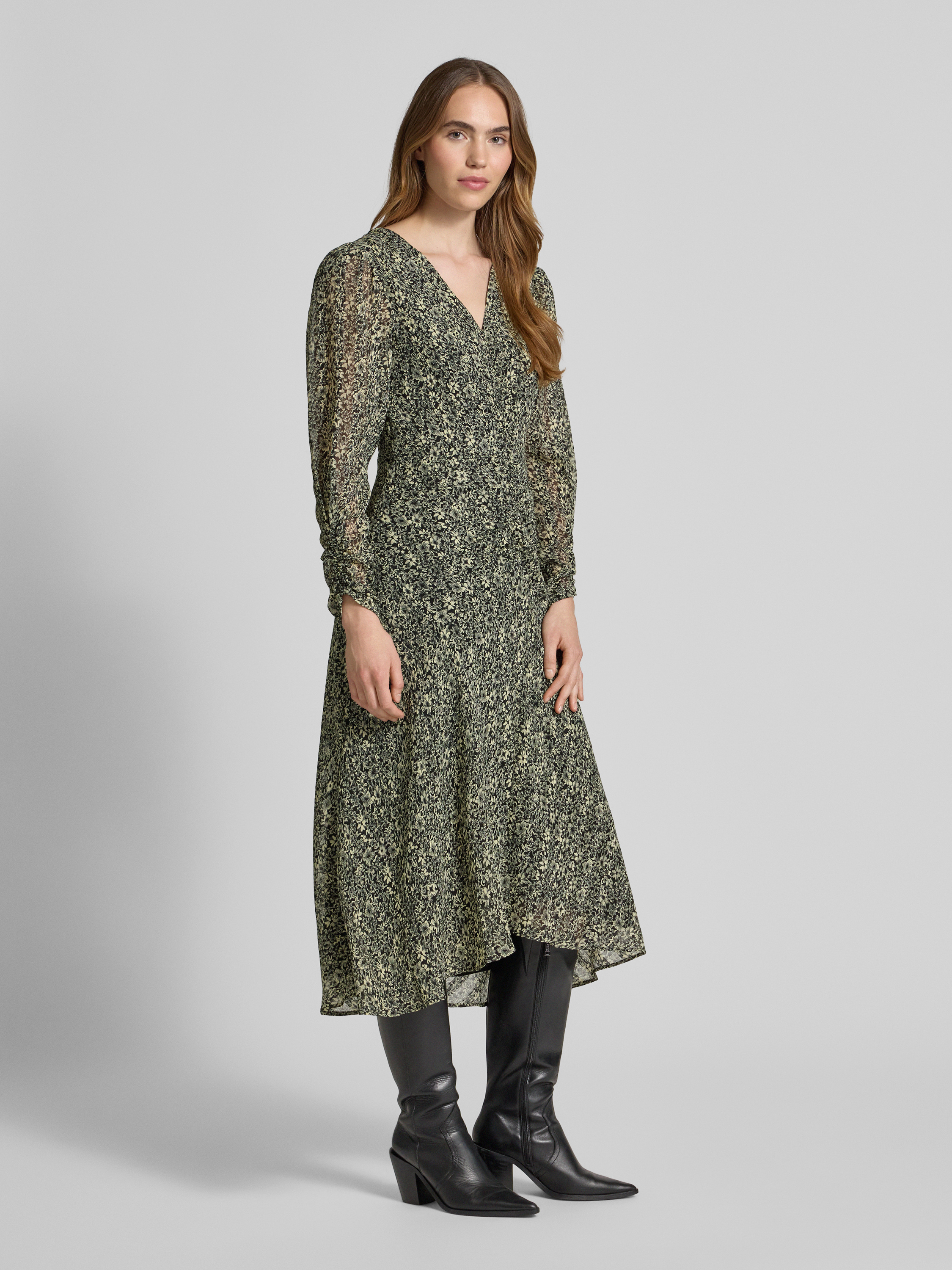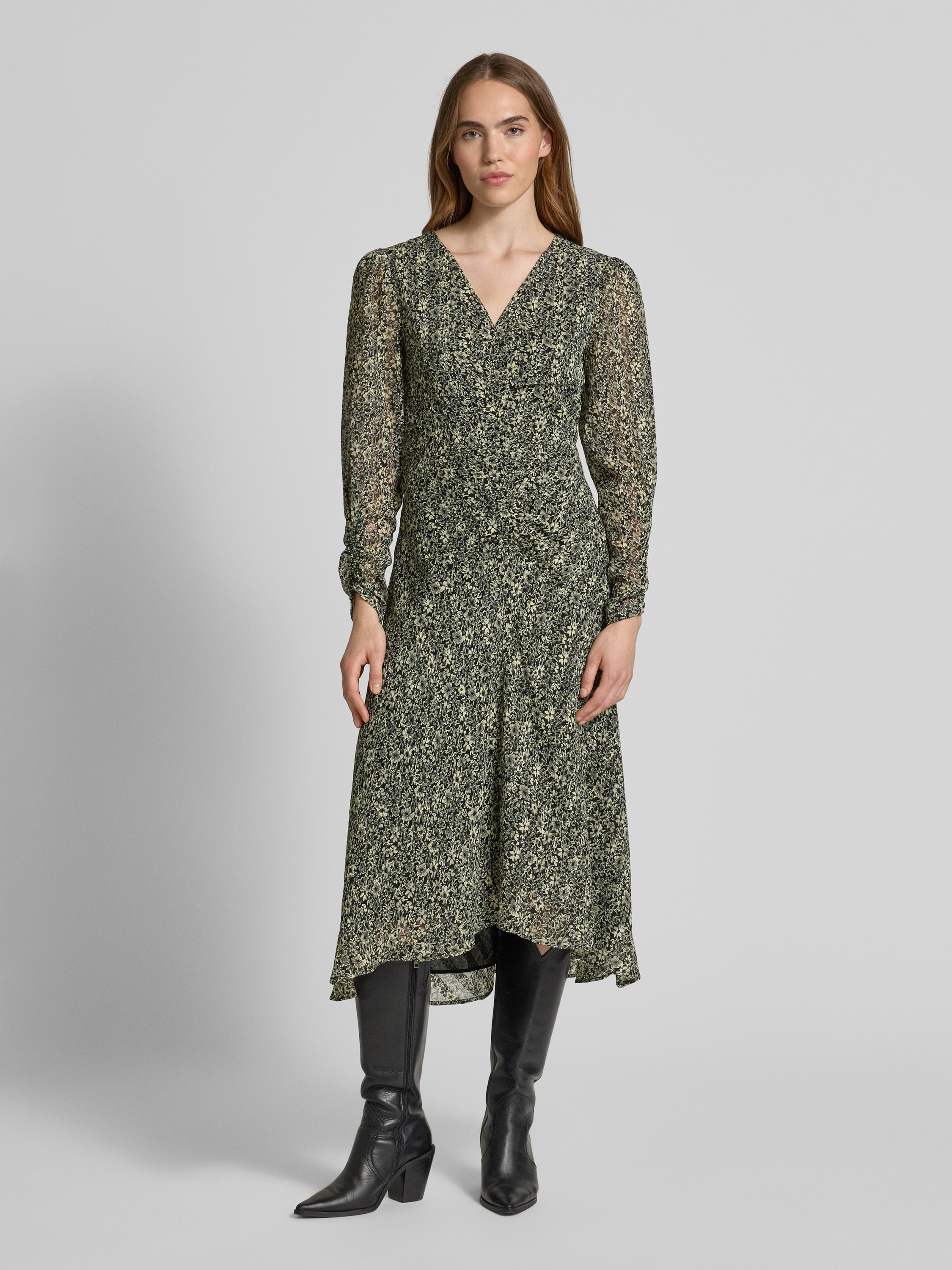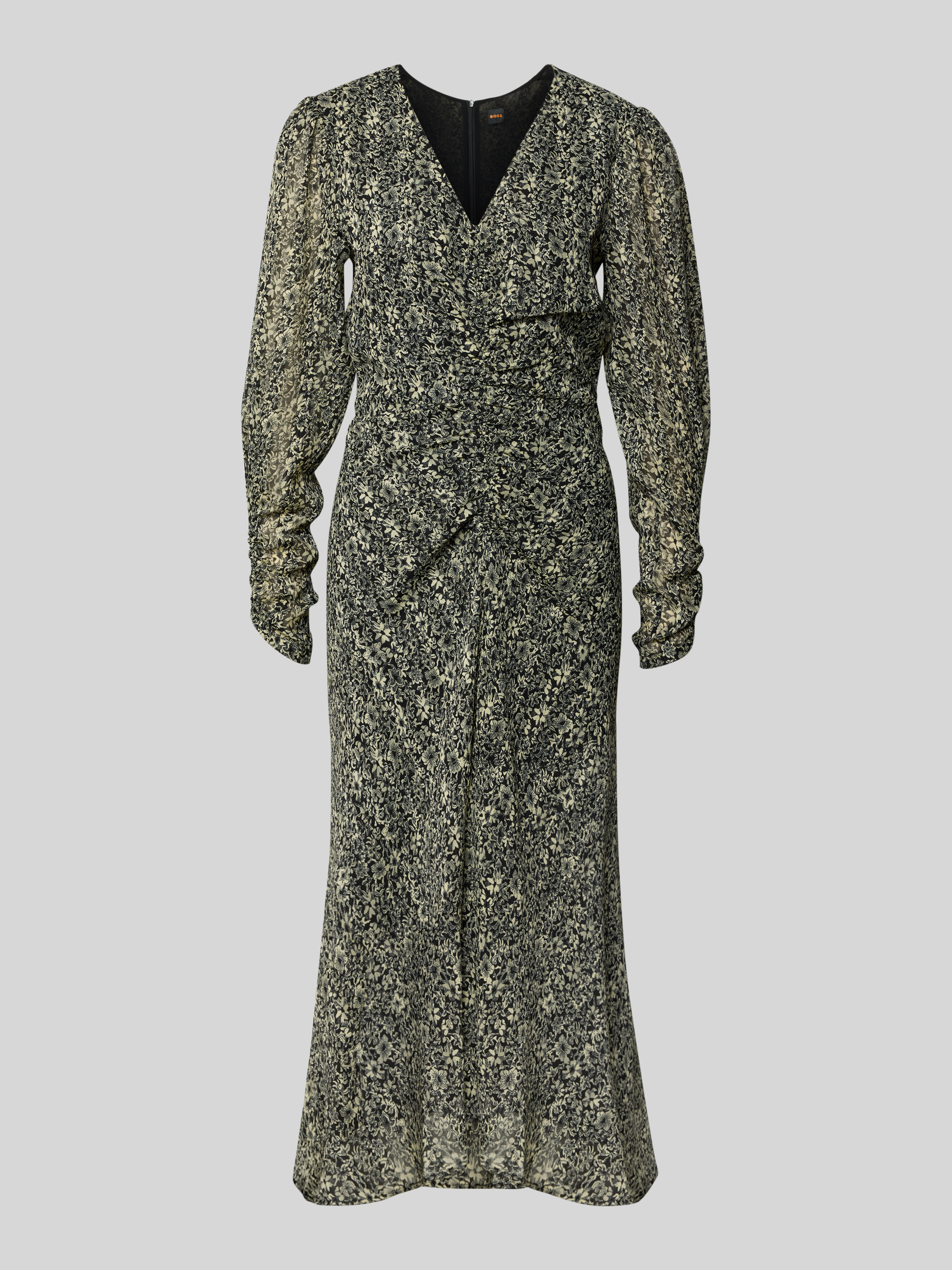 Taliowana sukienka casualowa ze wzorem na całej powierzchni - czarny
