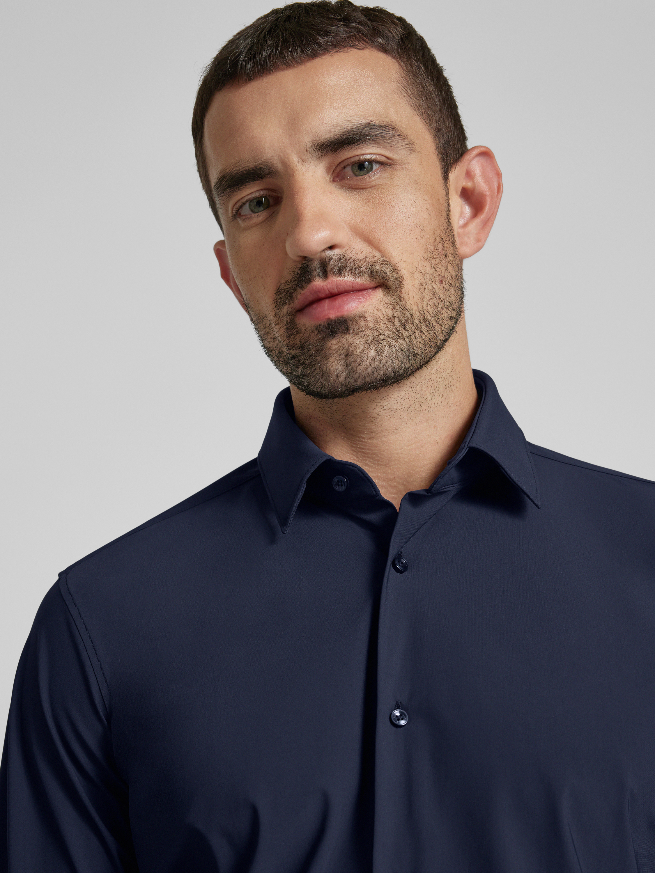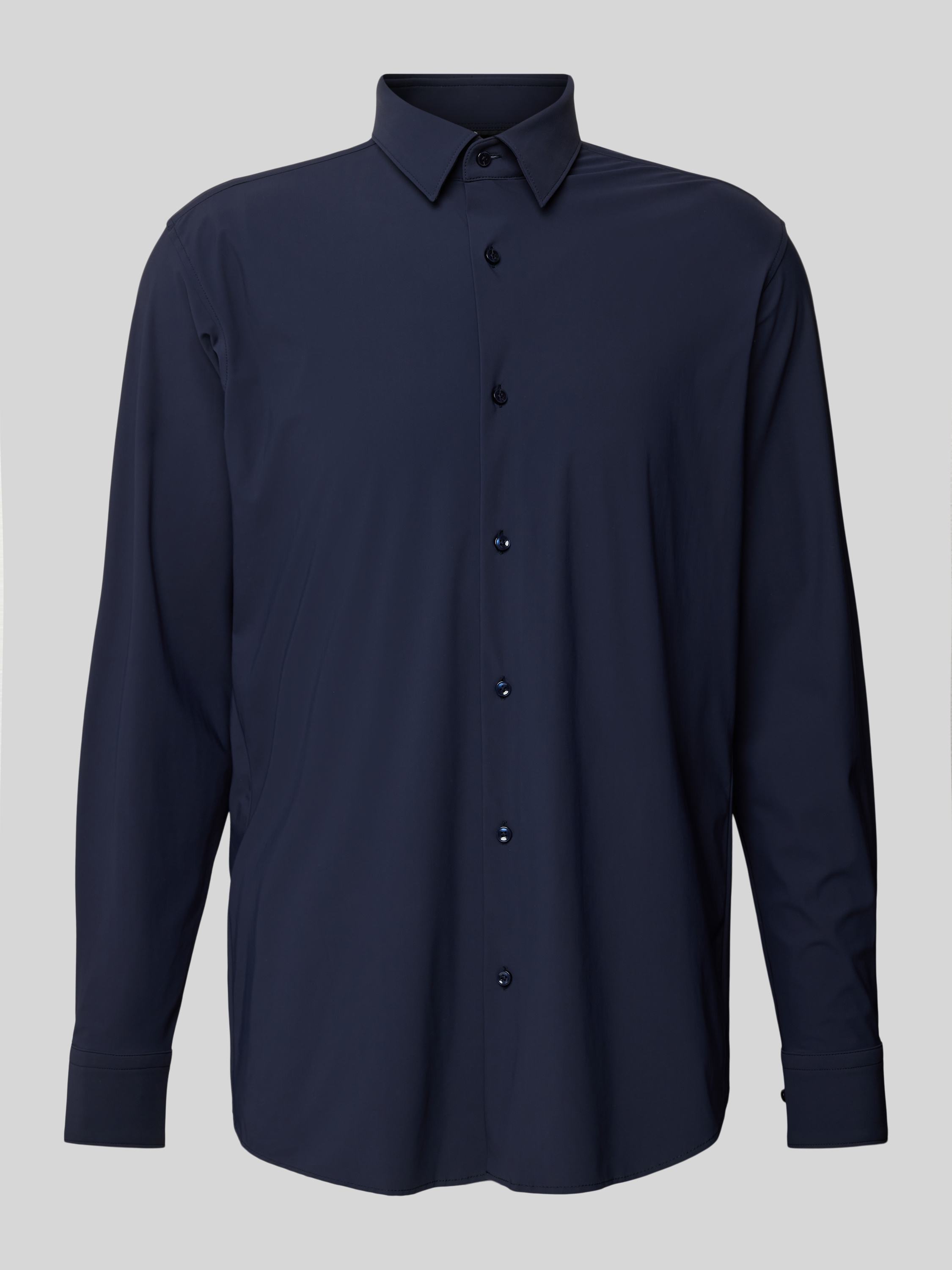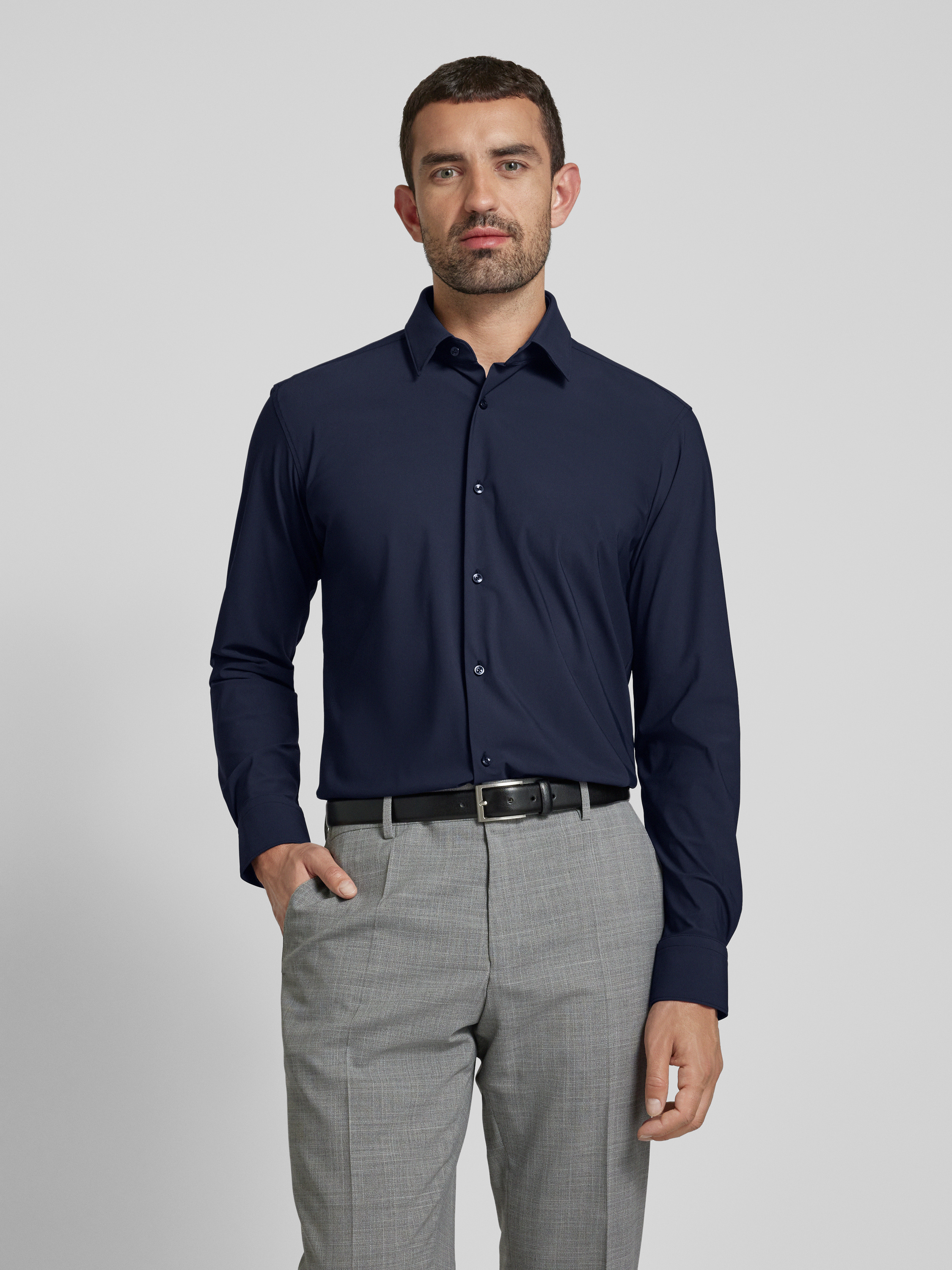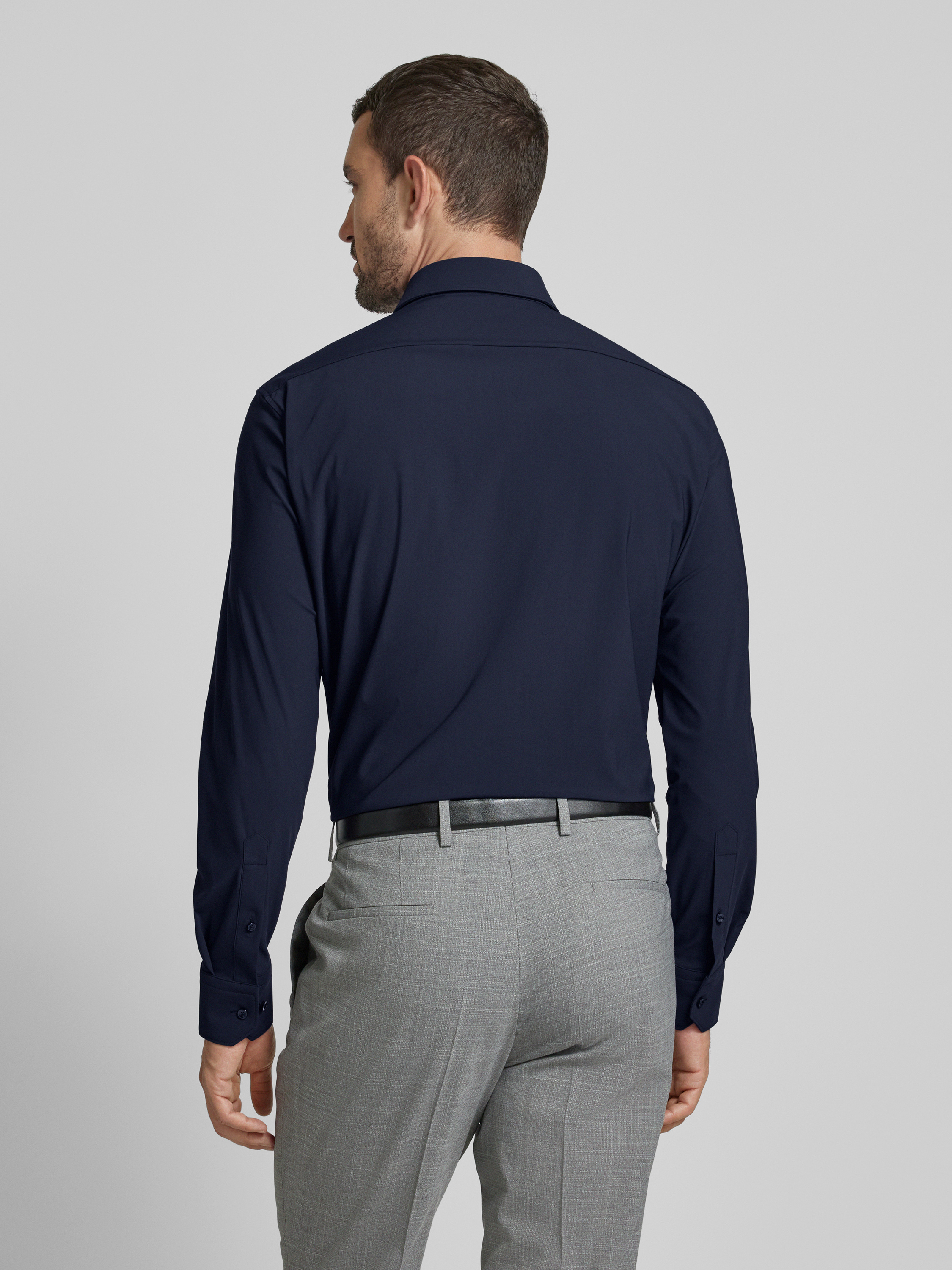 Koszula biznesowa o kroju regular fit z kołnierzykiem typu kent - granatowy