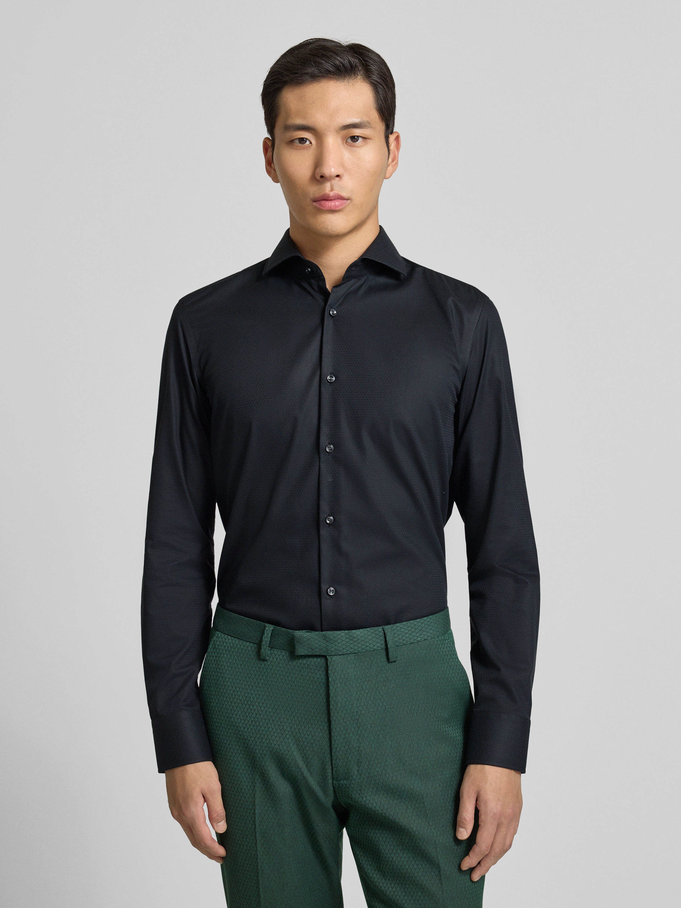 Koszula biznesowa o kroju slim fit z bawełny z kołnierzykiem typu kent model ‘HANK’ - czarny