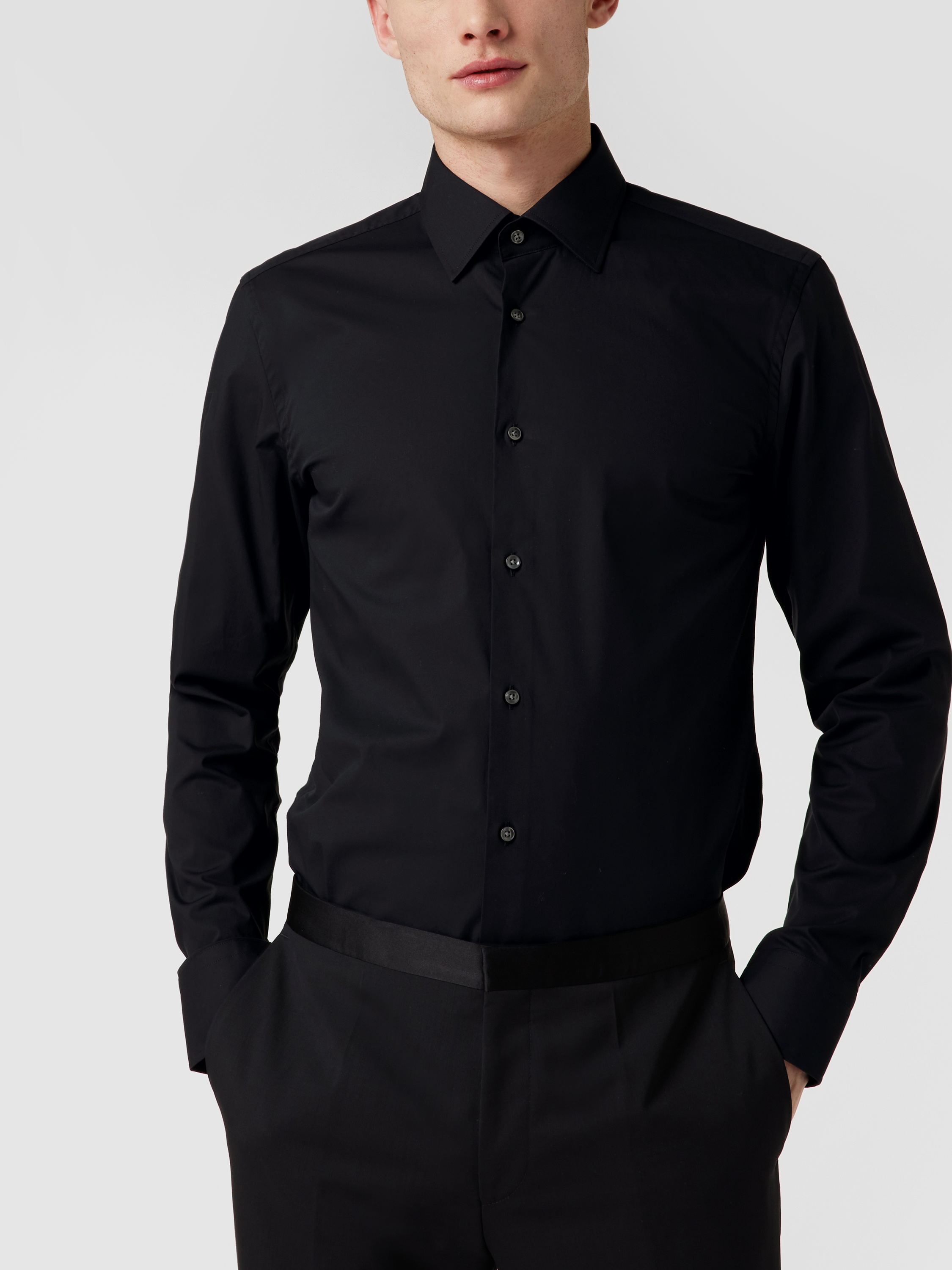 Koszula biznesowa o kroju slim fit z popeliny z dodatkiem streczu - czarny