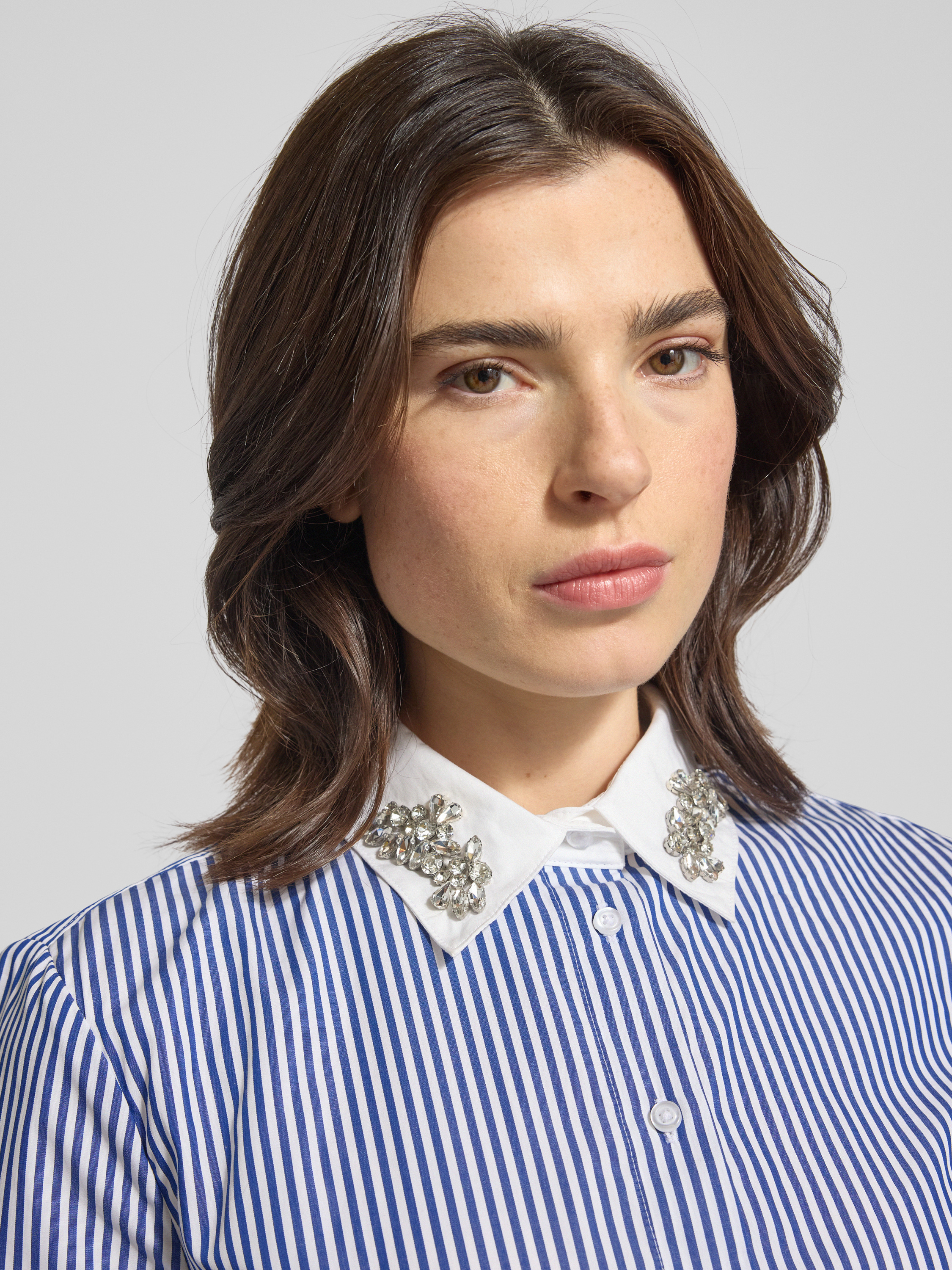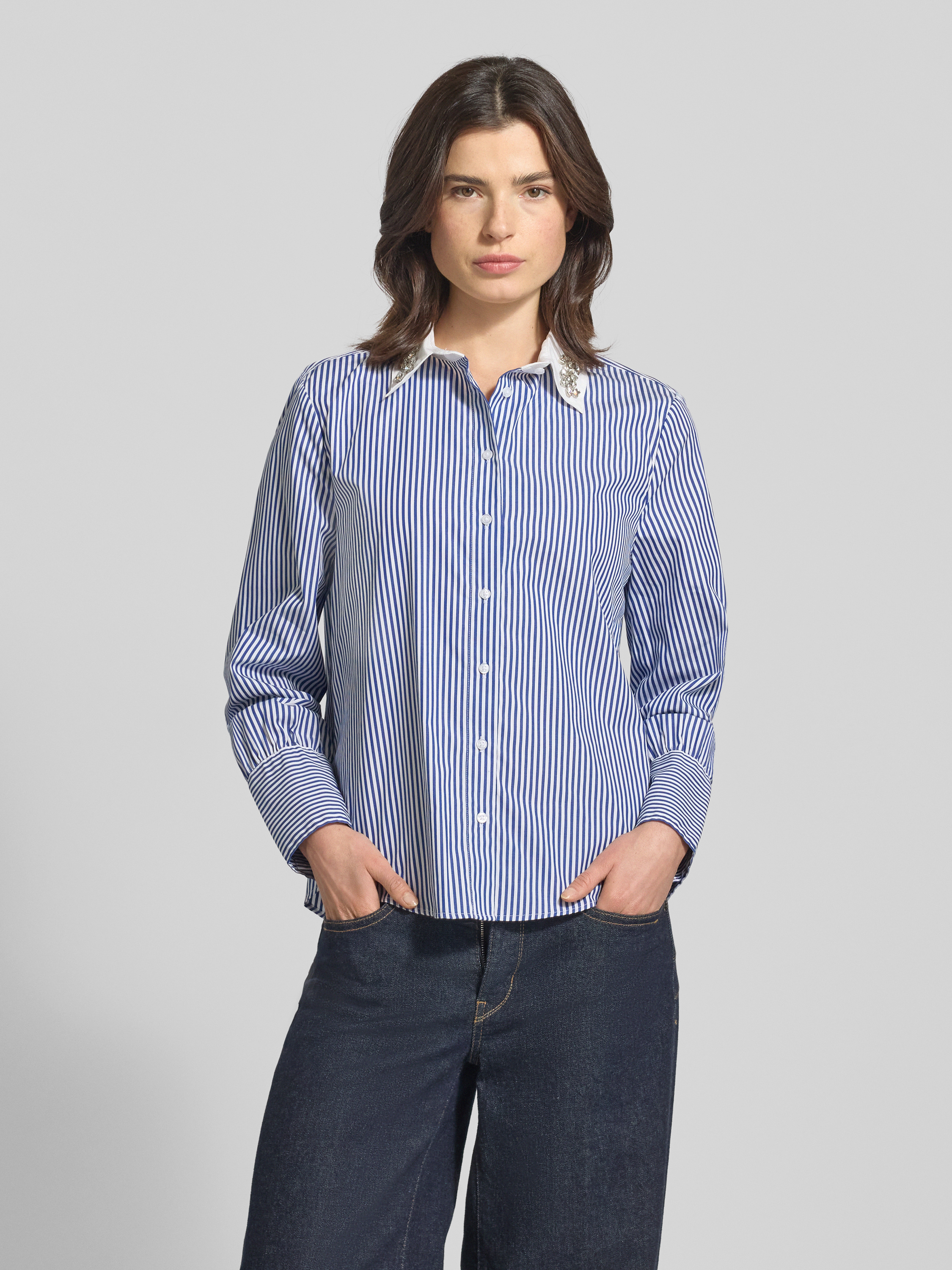 Bluzka koszulowa z listwą guzikową model ‘VICA’ - ciemnoniebieski