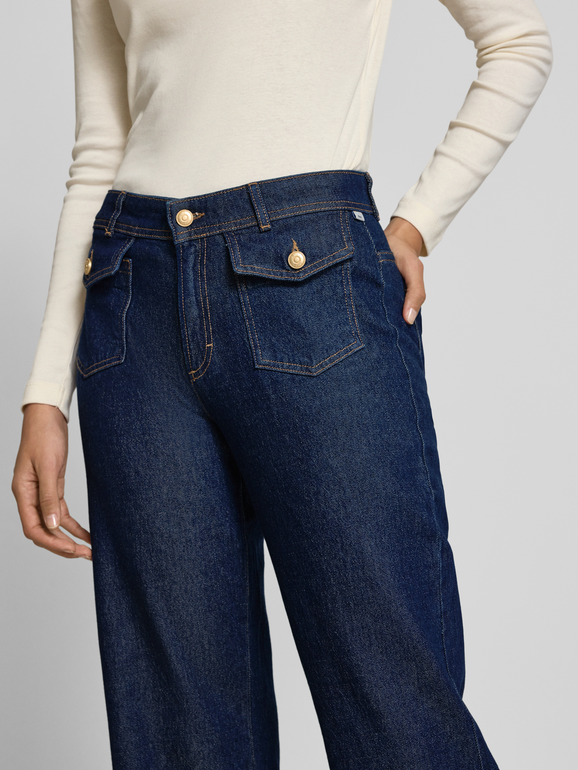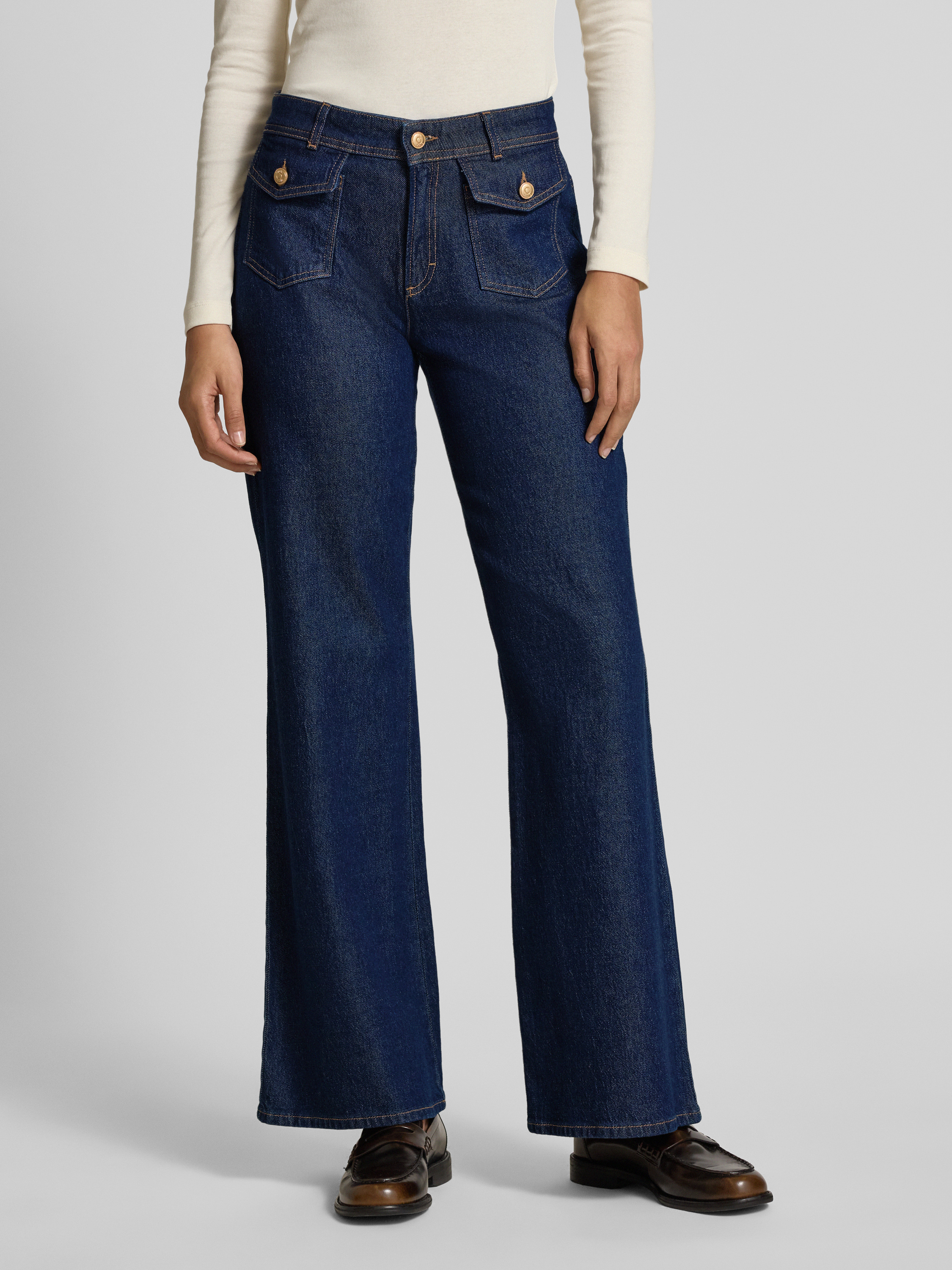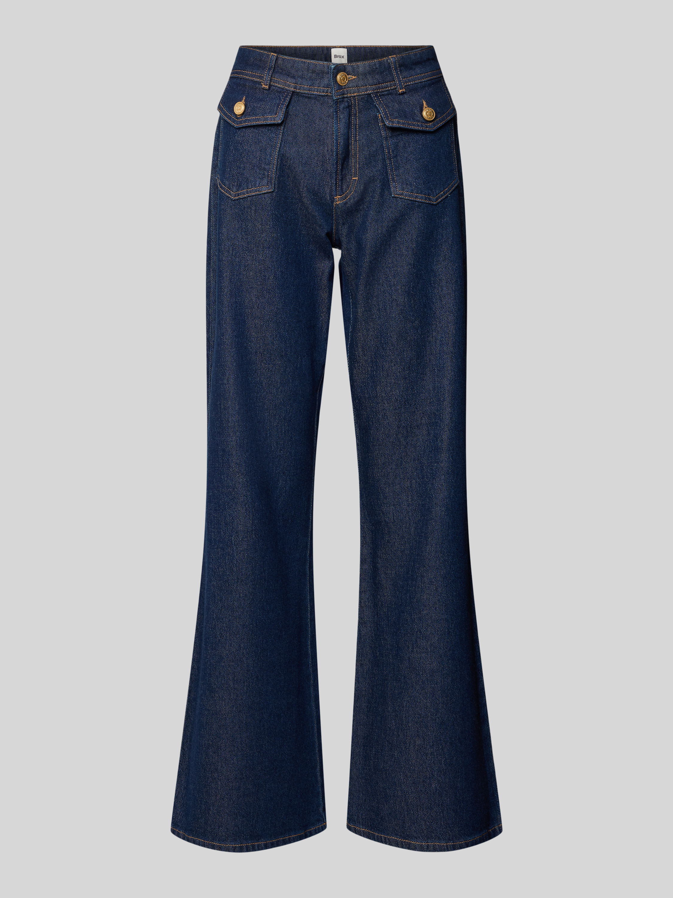 Jeansy rozkloszowane z kieszeniami z patką model ‘MAINE’ - ciemnoniebieski