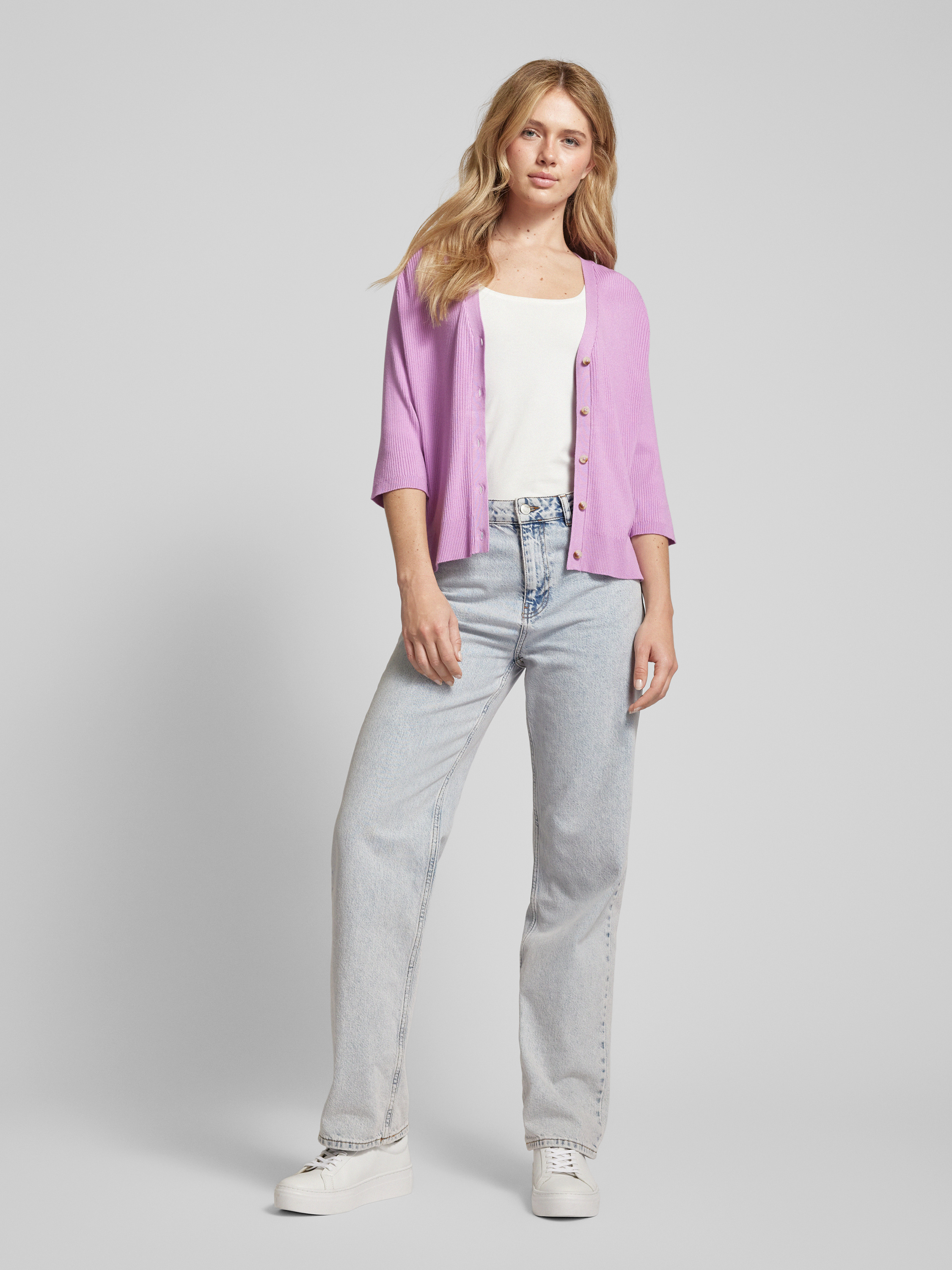 Kardigan z efektem prążkowania model ‘Style.Alice’ - mocnoróżowy