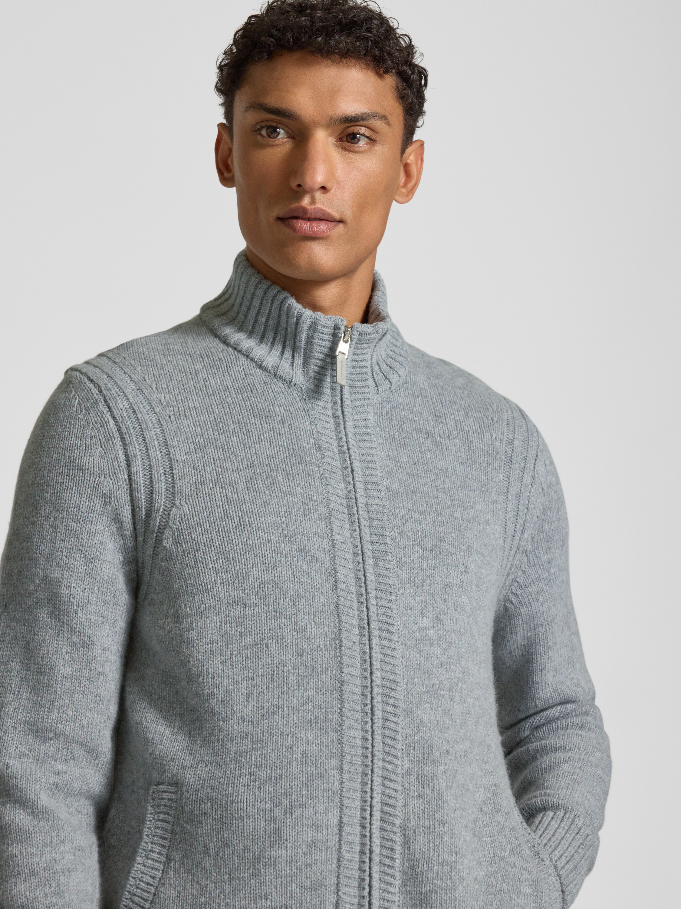 Kurtka z dzianiny z zamkiem błyskawicznym model ‘JAKE’ - ciemnoszary