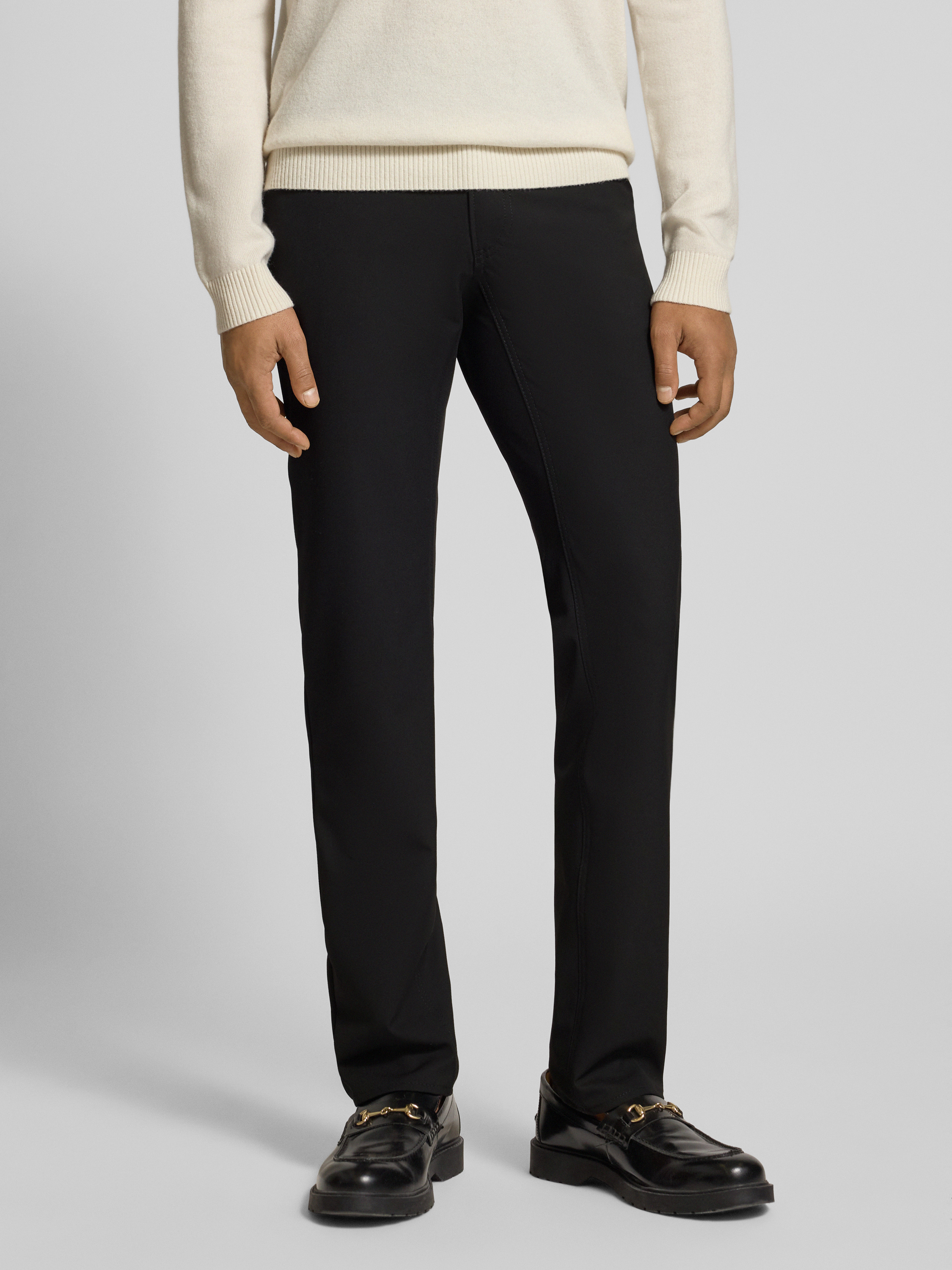Spodnie materiałowe o kroju straight fit z 5 kieszeniami - czarny