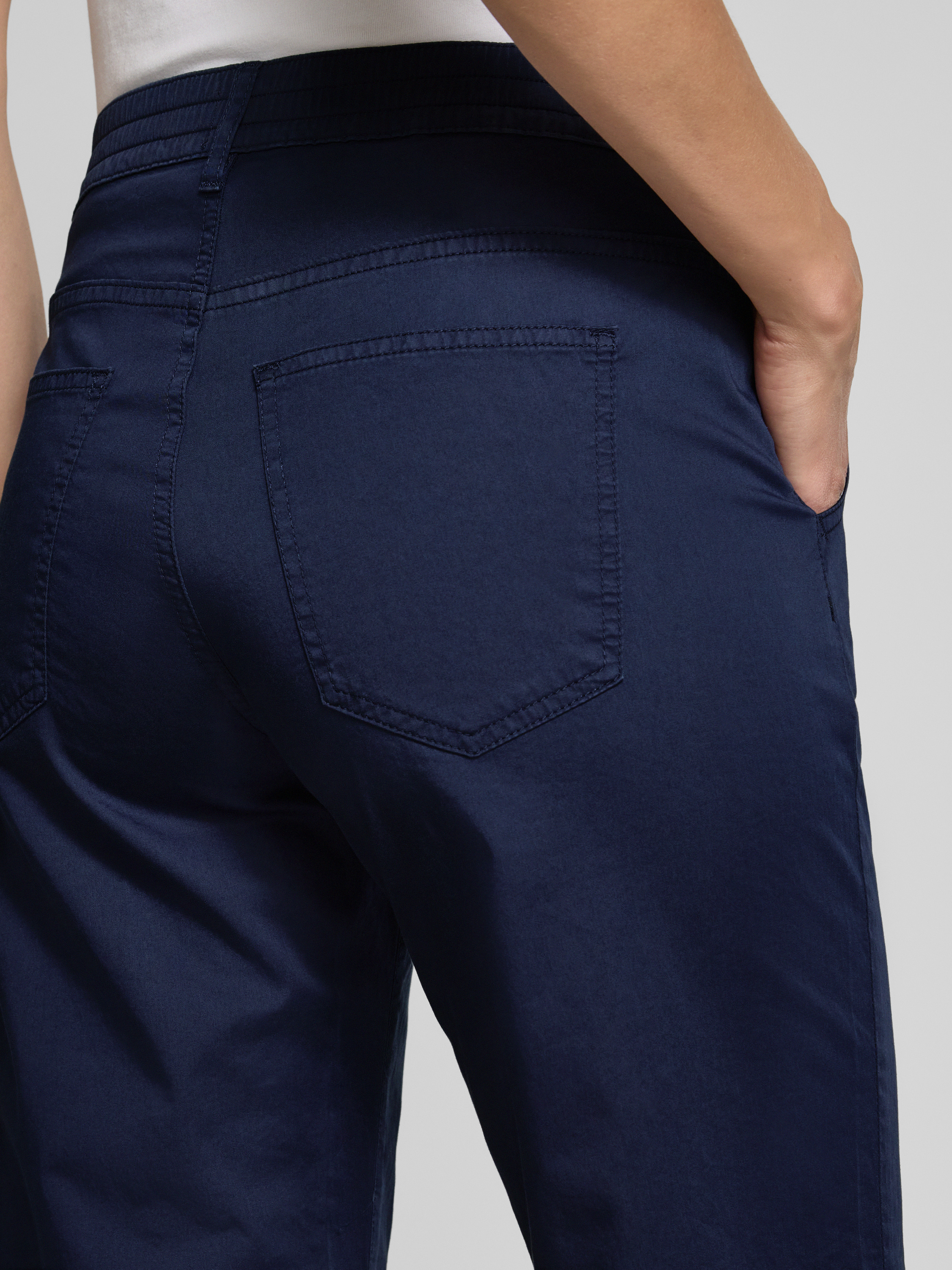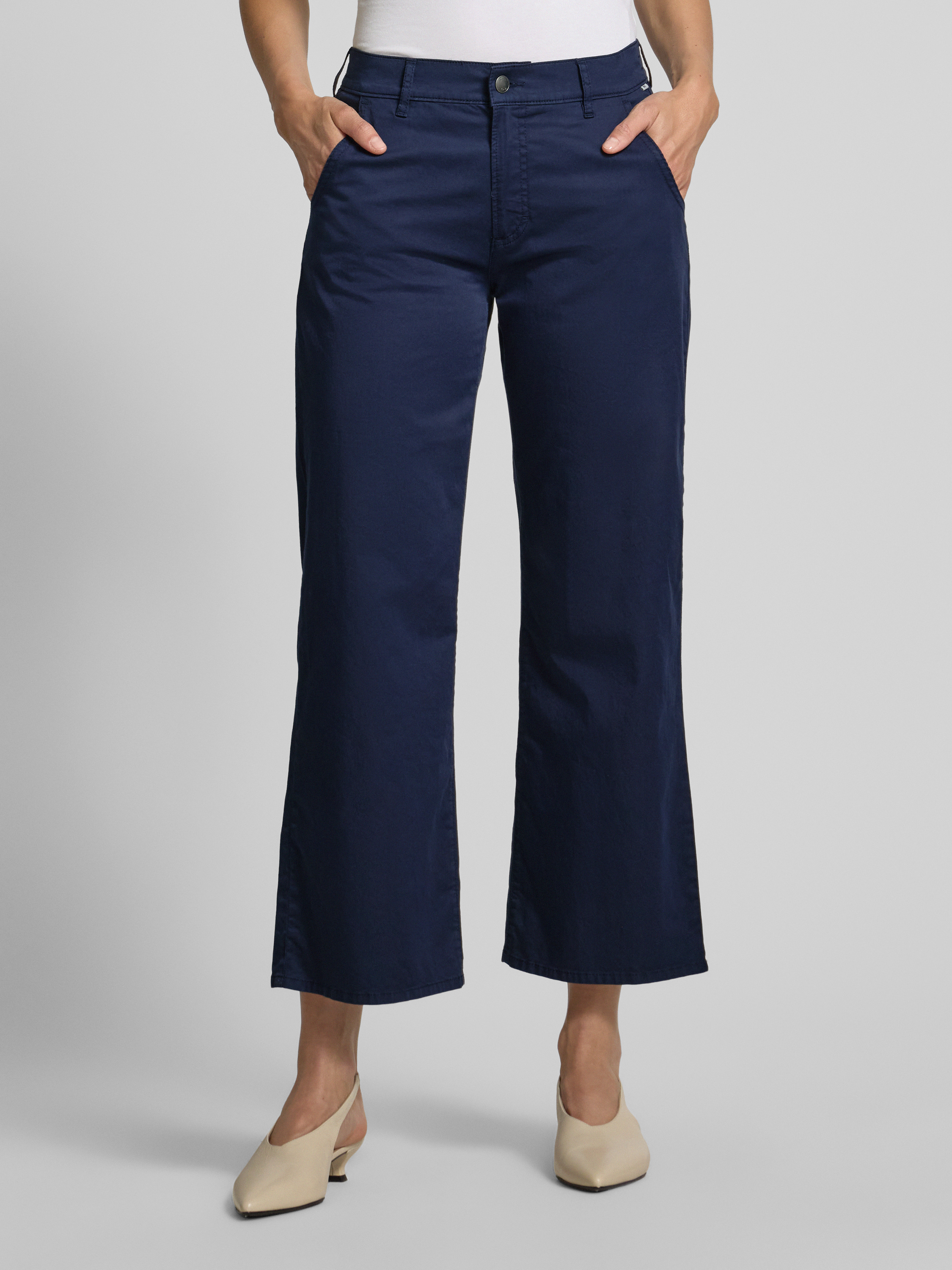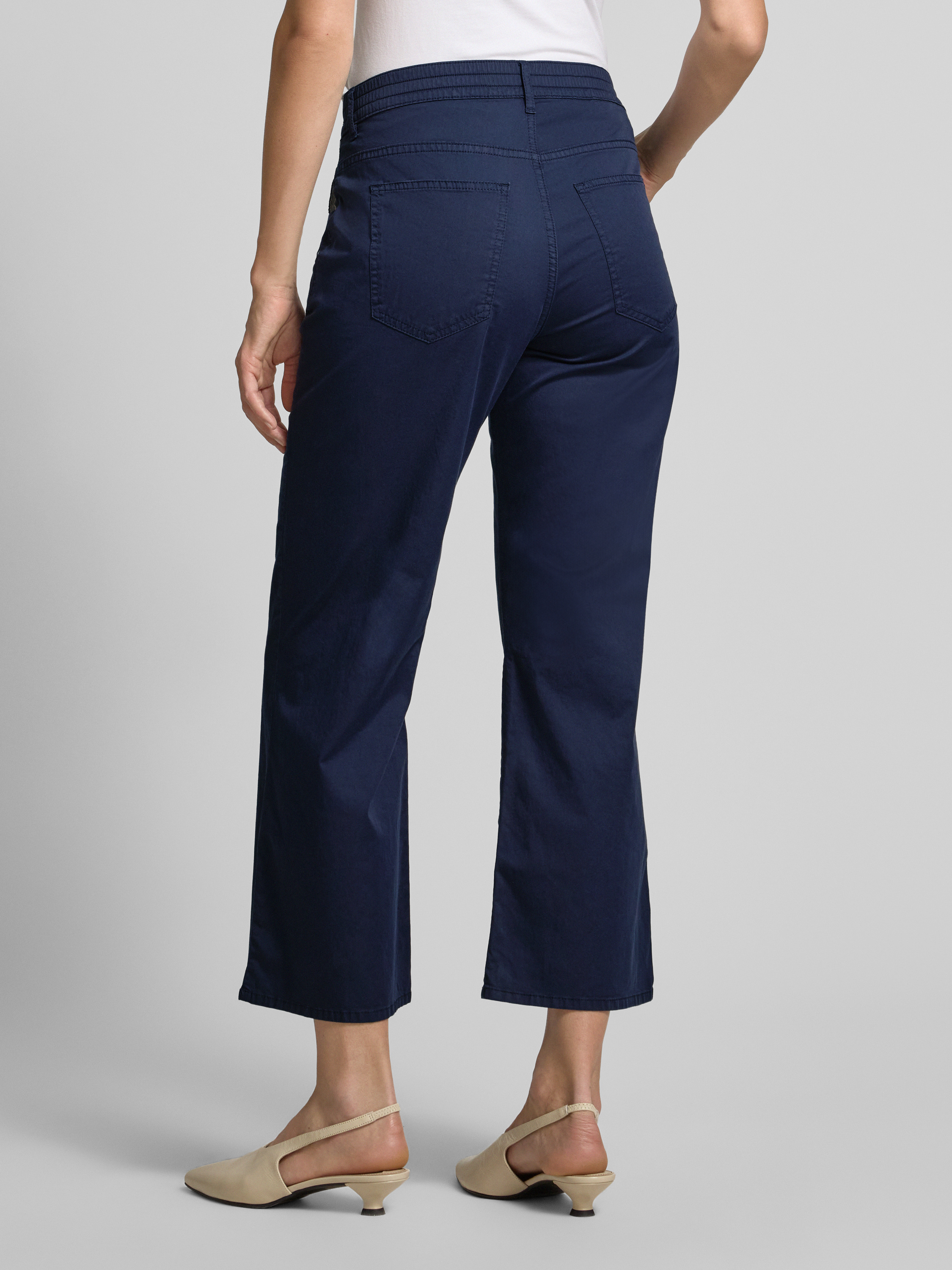 Spodnie materiałowe o rozkloszowanym, skróconym kroju model ‘STYLE.MAINE’ - granatowy
