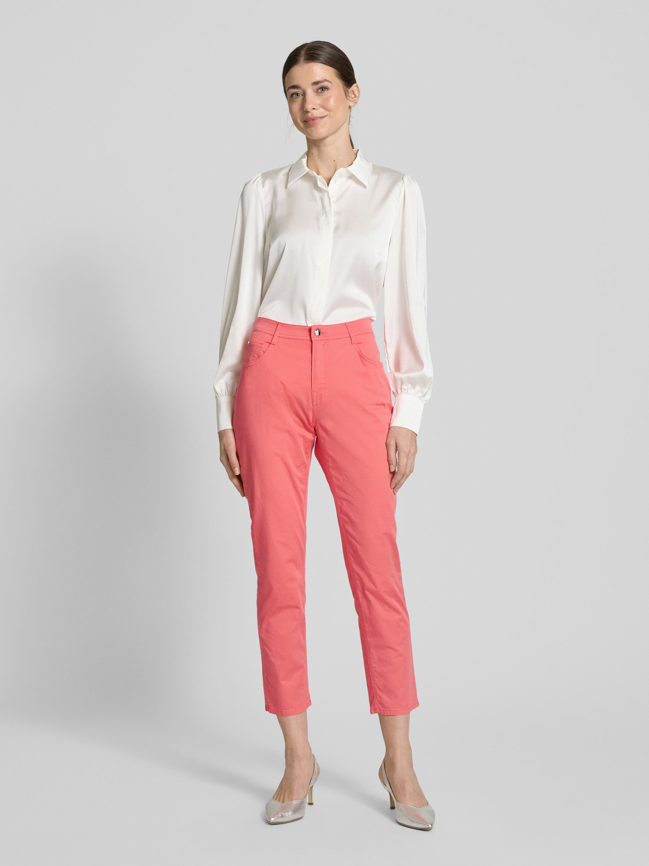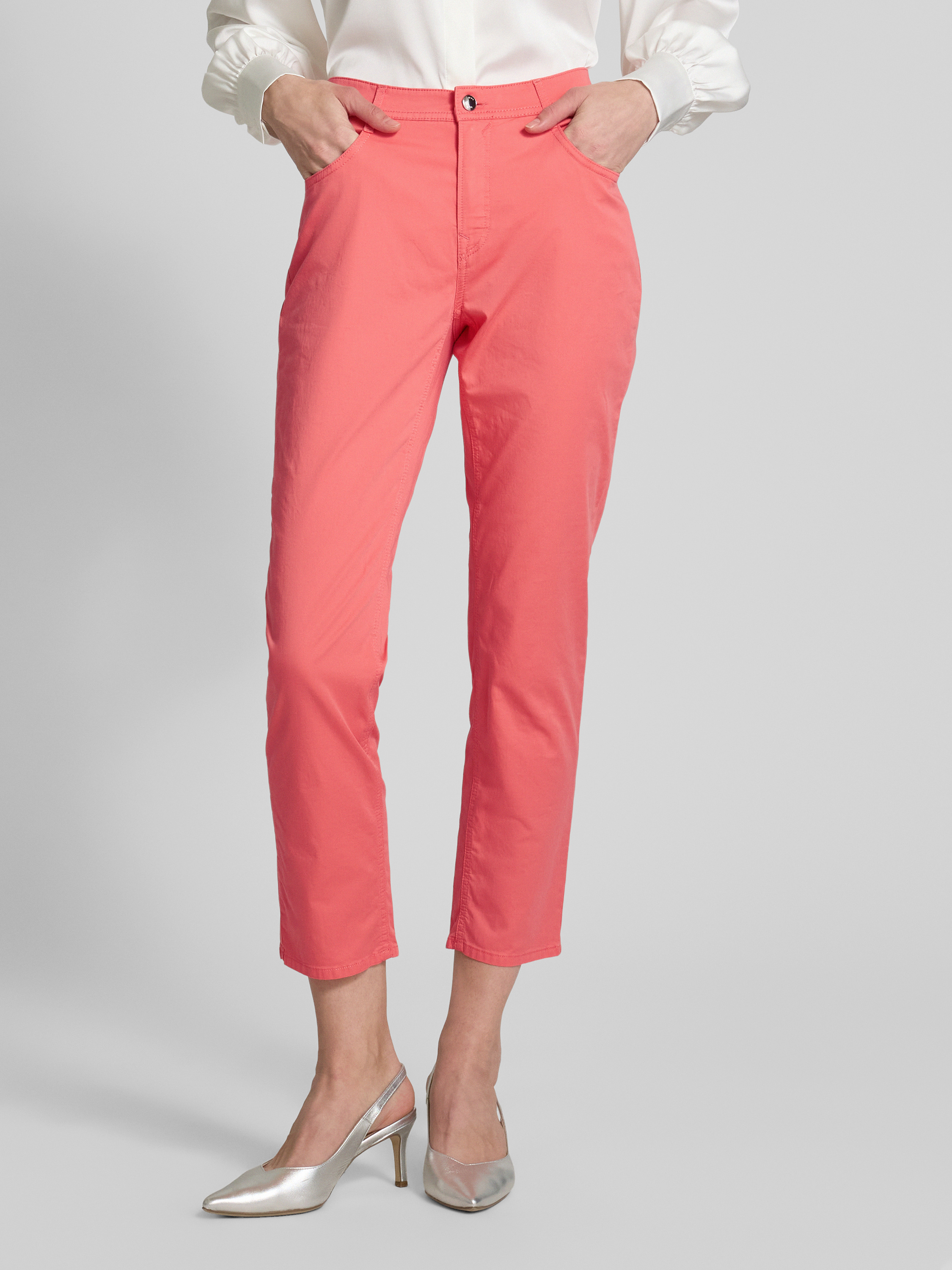 Spodnie materiałowe o skróconym kroju model ‘MARY’ - koralowy