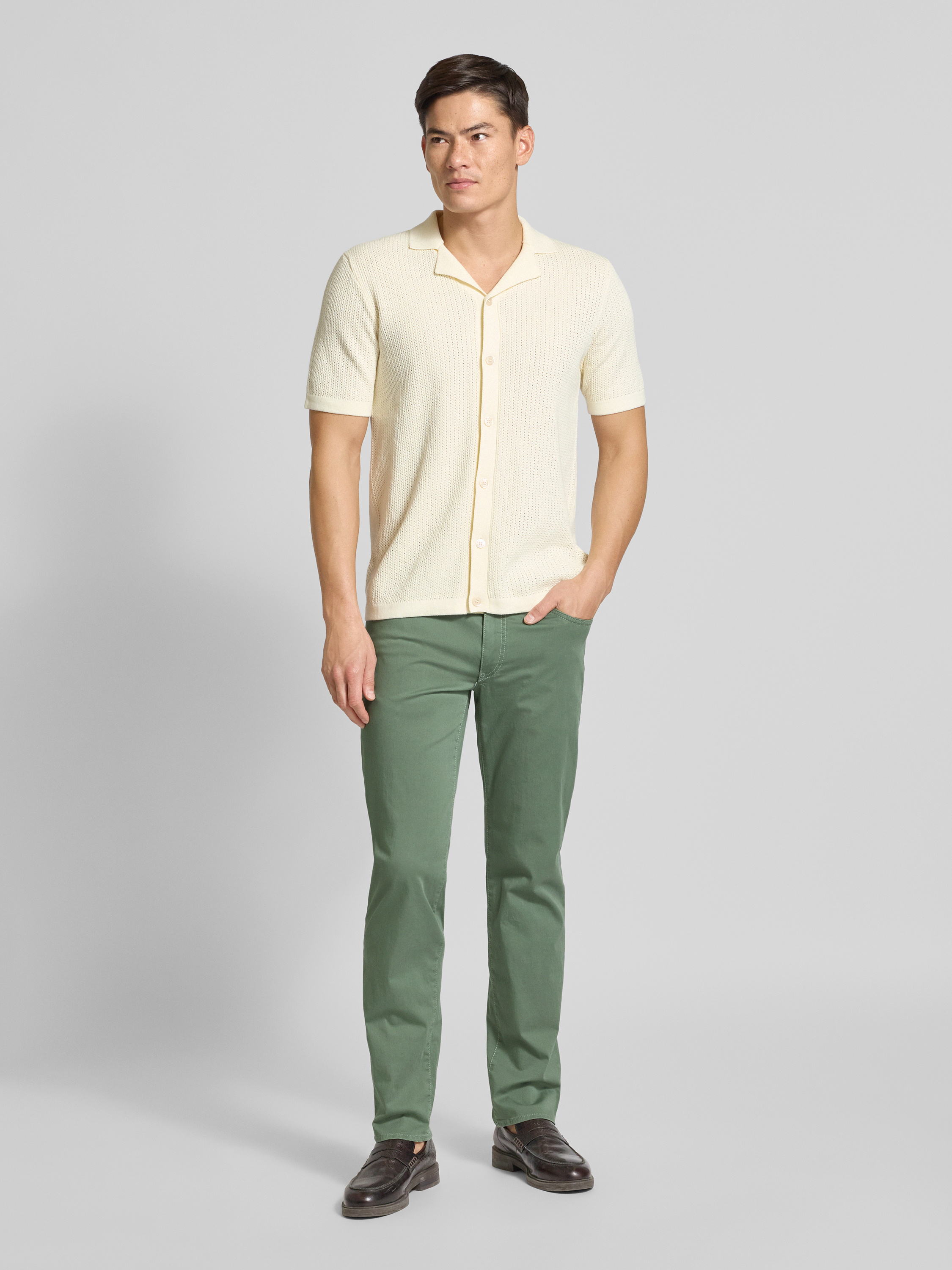 Spodnie materiałowe z 5 kieszeniami model ‘CADIZ’ - trzcinowy