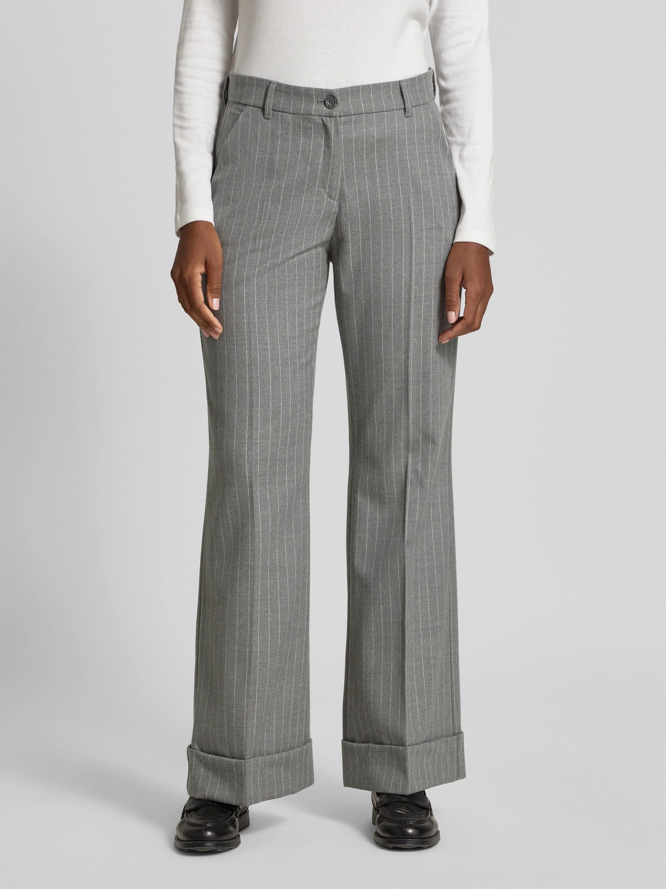 Spodnie materiałowe z mieszanki żywej wełny i elastanu model ‘MAINE’ - średnioszary