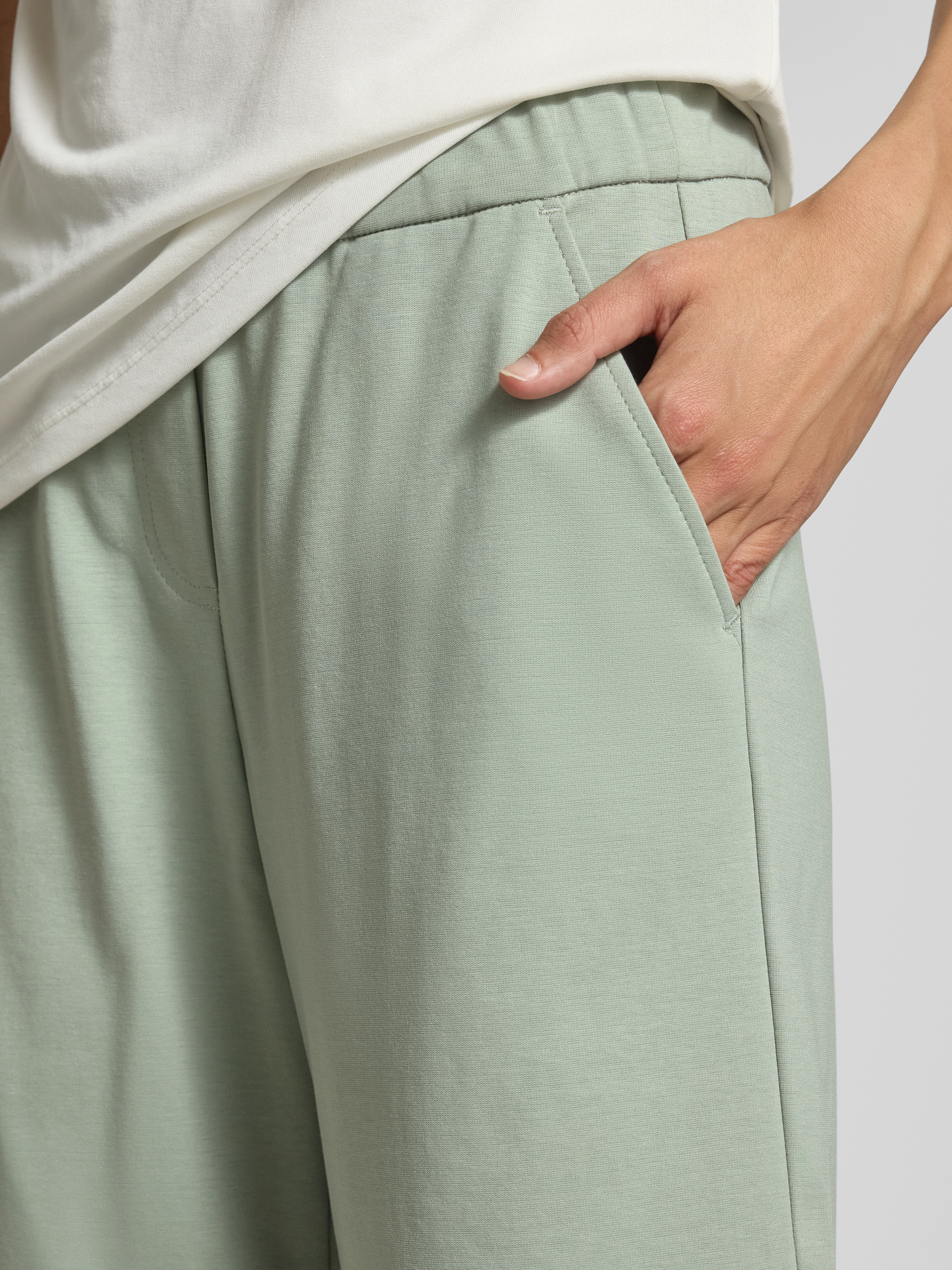 Spodnie materiałowe z szeroką nogawką i elastycznym pasem model ‘Style.Maine’ - trzcinowy