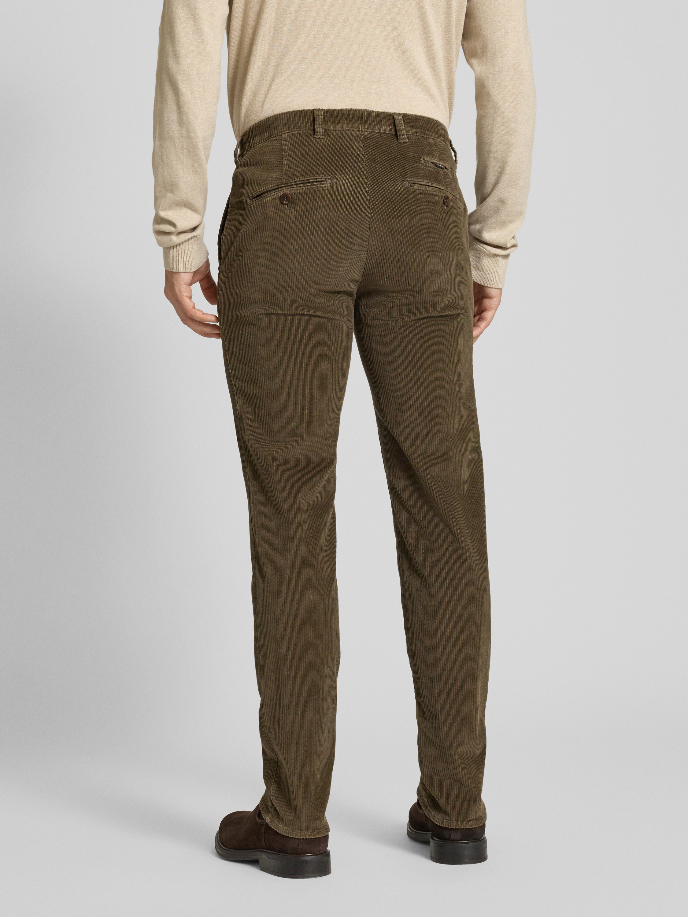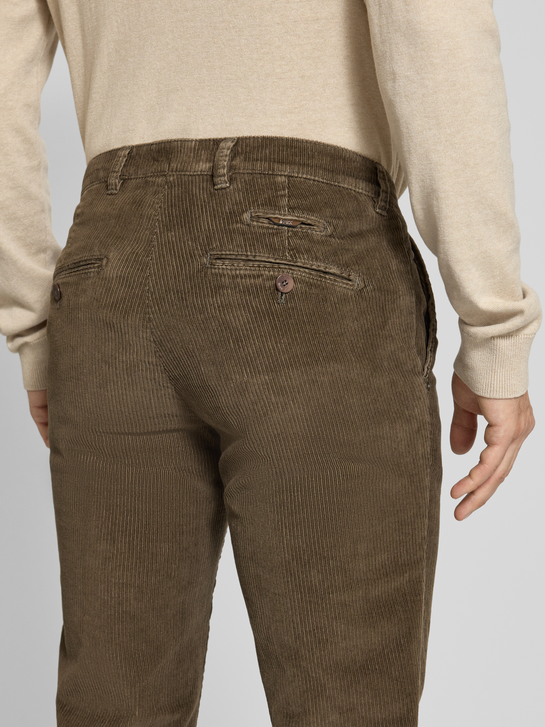 Spodnie sztruksowe o kroju slim fit z kieszeniami z tyłu model ‘Fabio’ - szarobrązowy