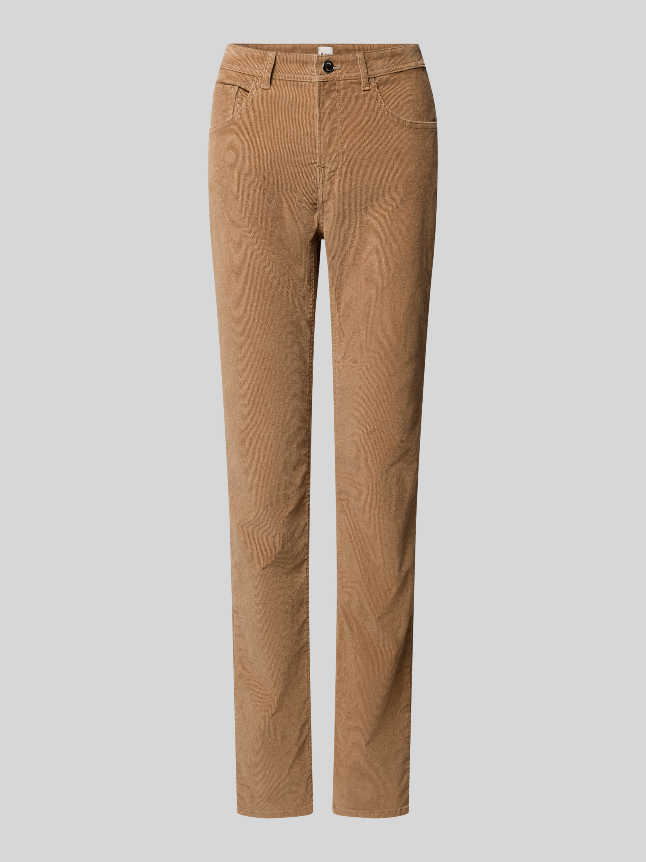 Spodnie sztruksowe o kroju slim fit z mieszanki bawełny model ‘Mary’ - camel