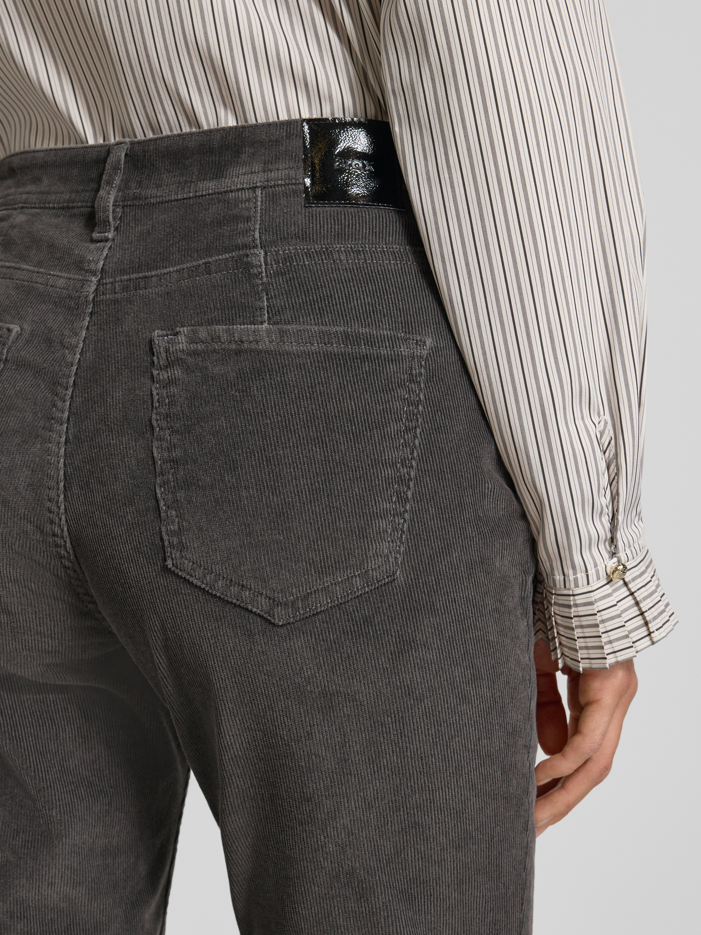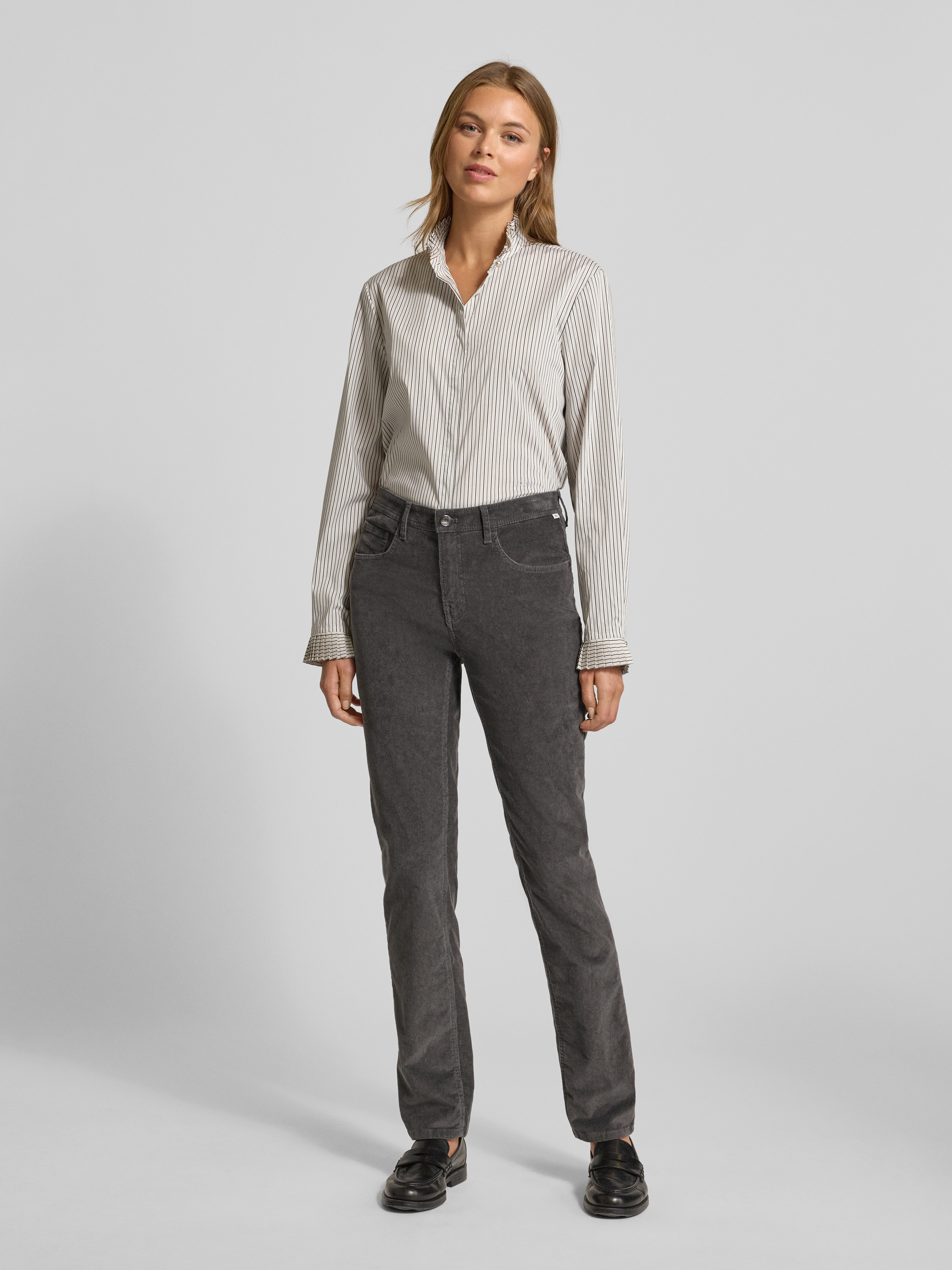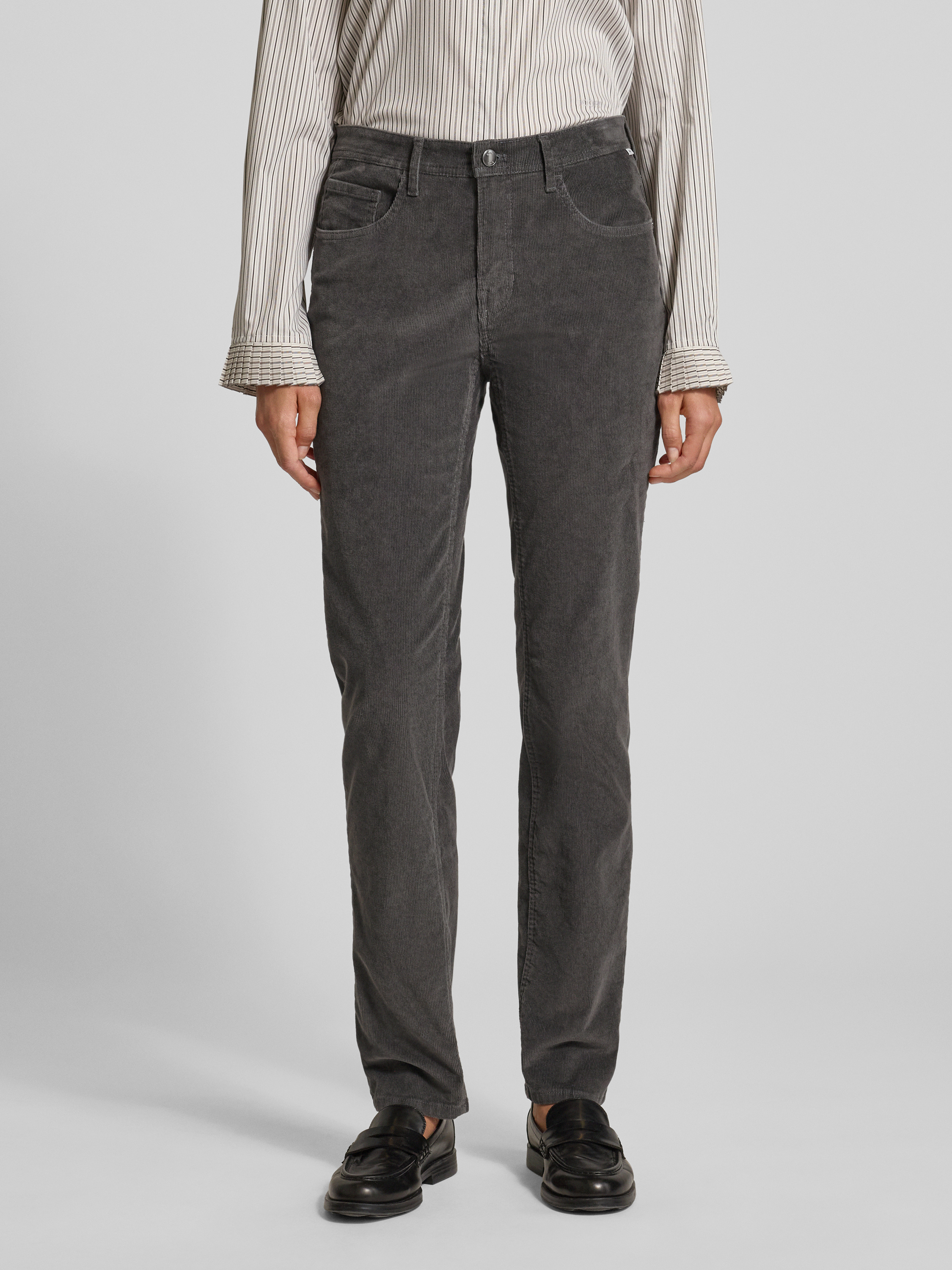 Spodnie sztruksowe o kroju slim fit z mieszanki bawełny model ‘Mary’ - ciemnoszary