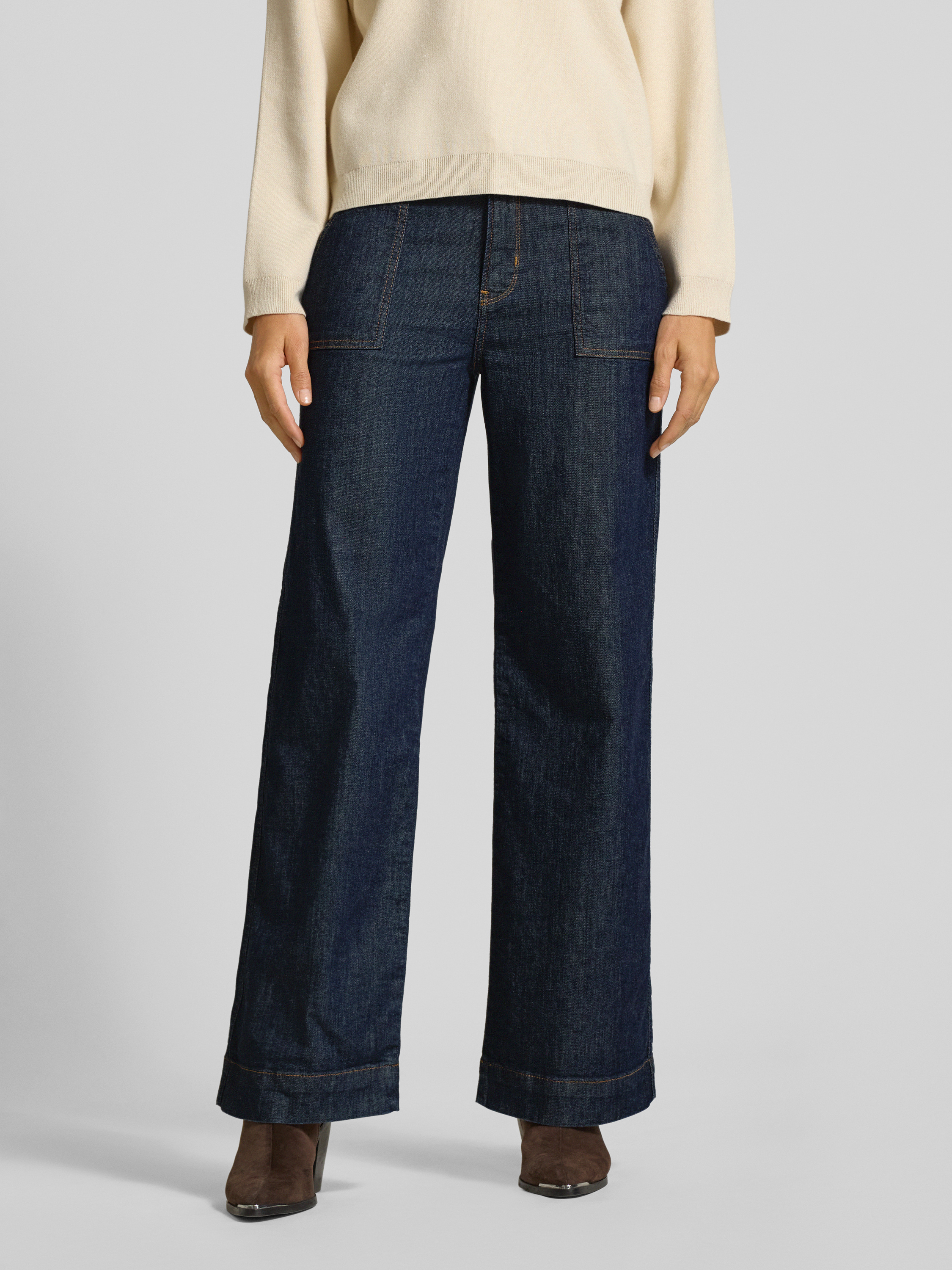 Jeansy z szerokimi nogawkami i wpuszczanymi kieszeniami - ciemnoniebieski