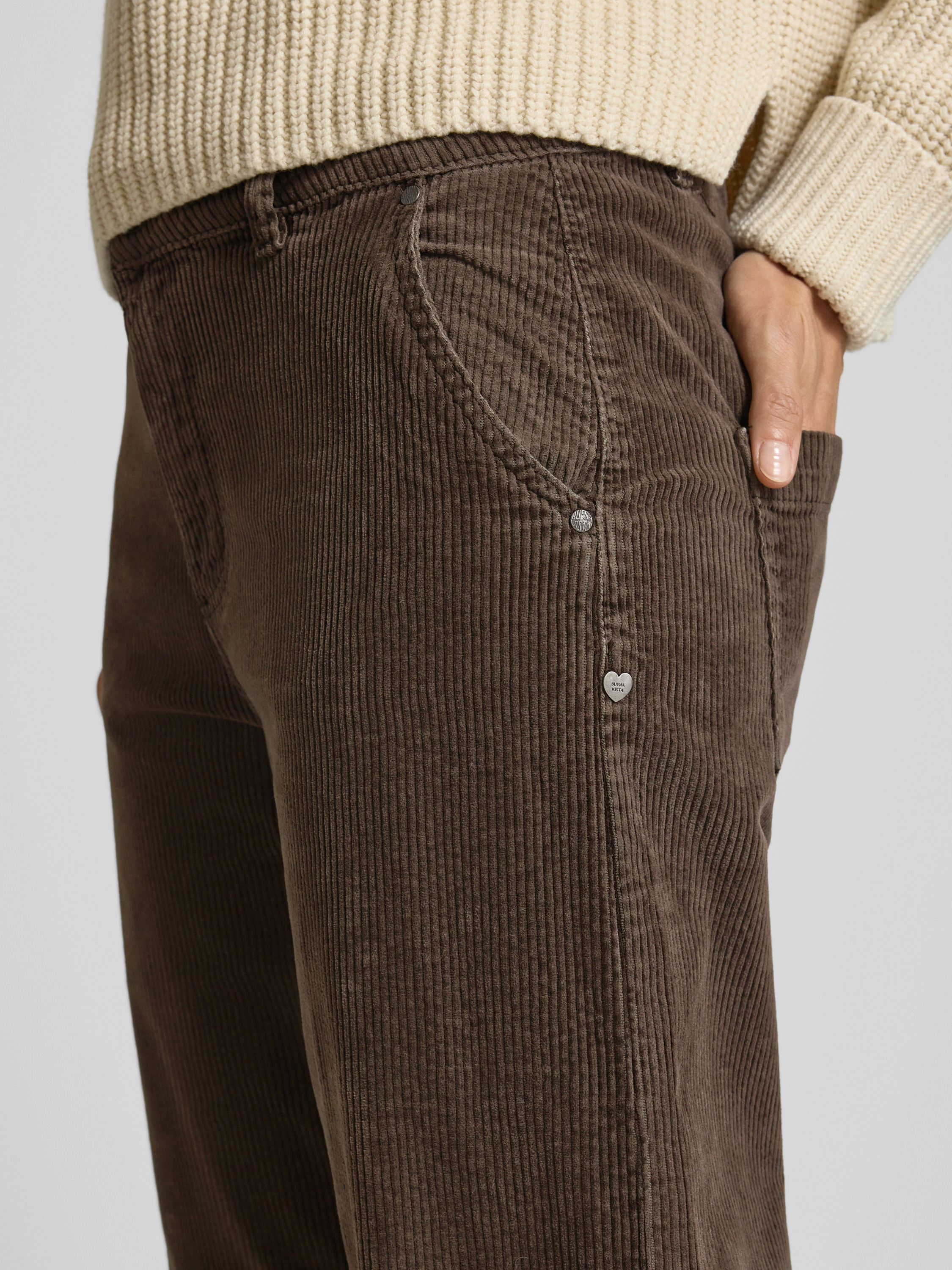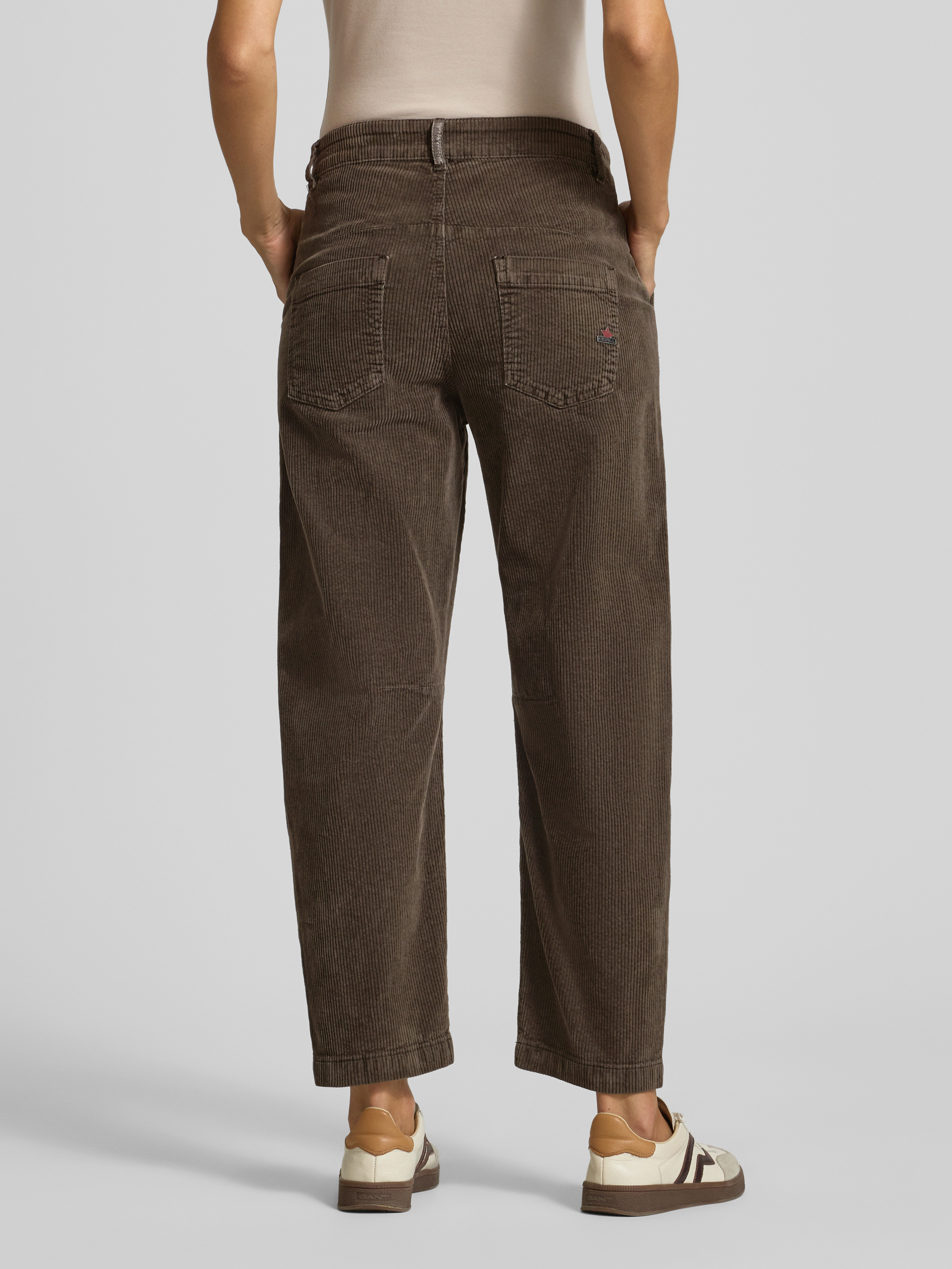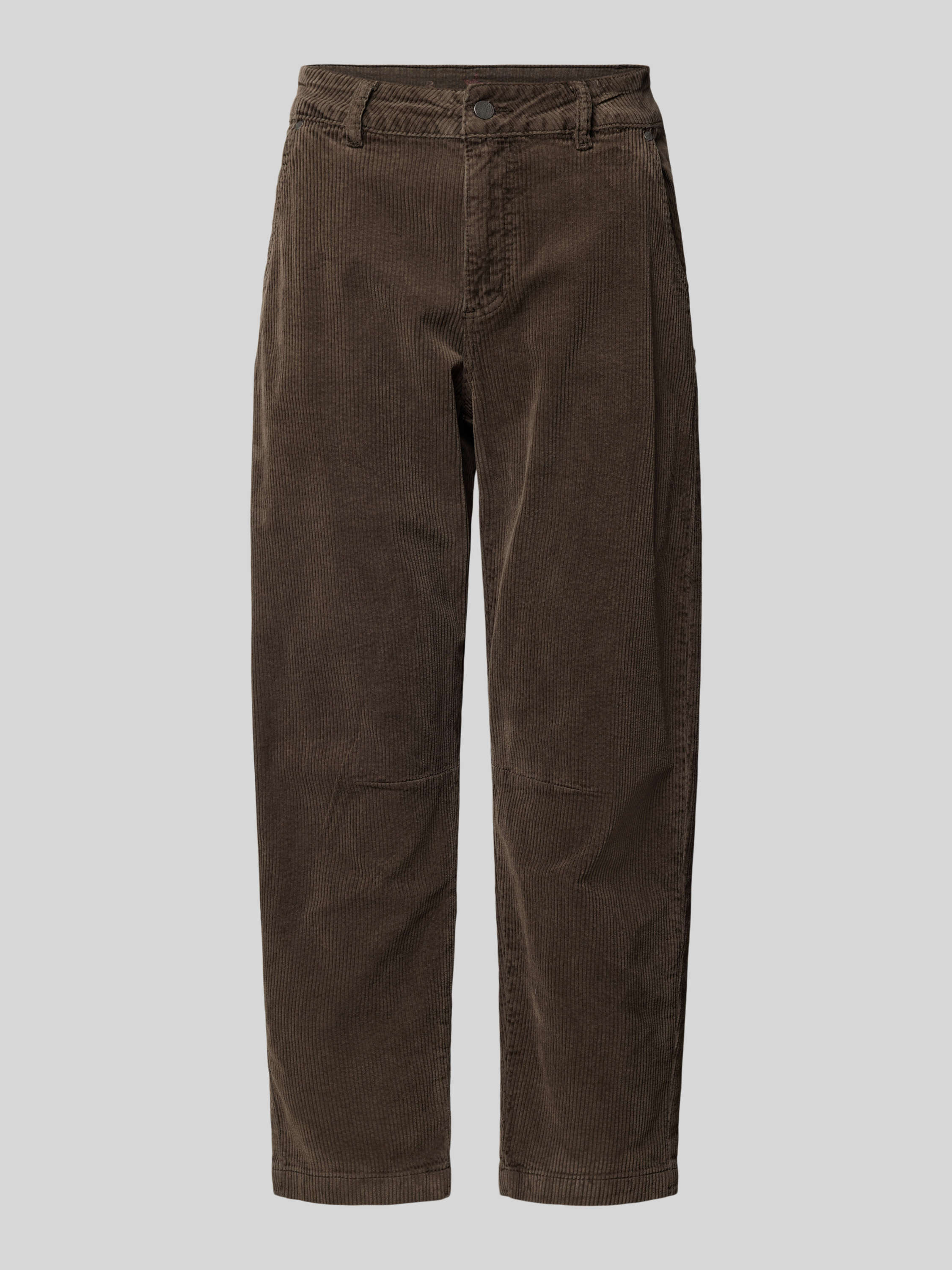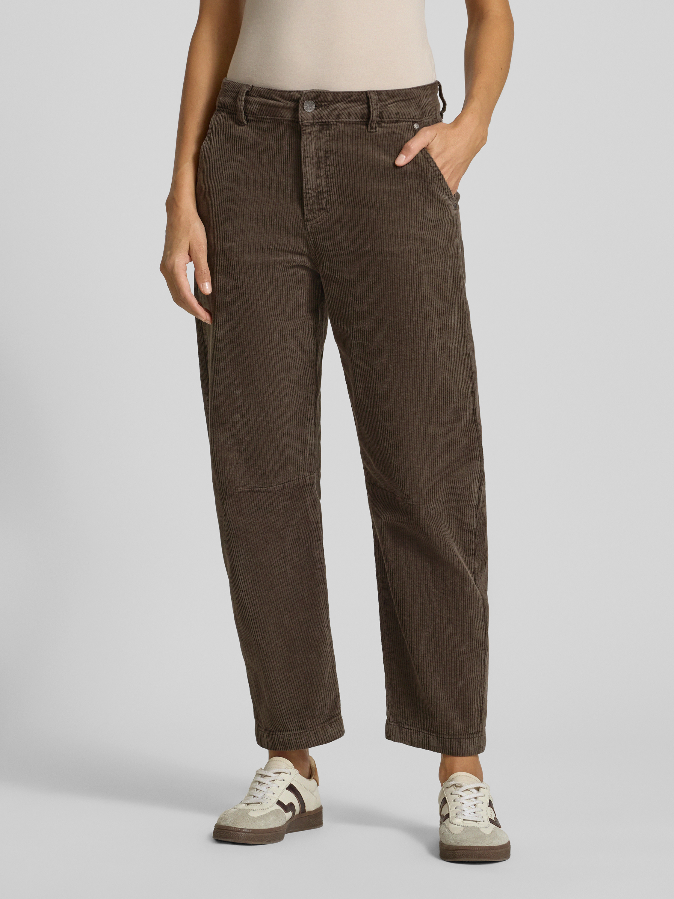 Spodnie sztruksowe o kroju barrel fit z wpuszczanymi kieszeniami - orzechowy