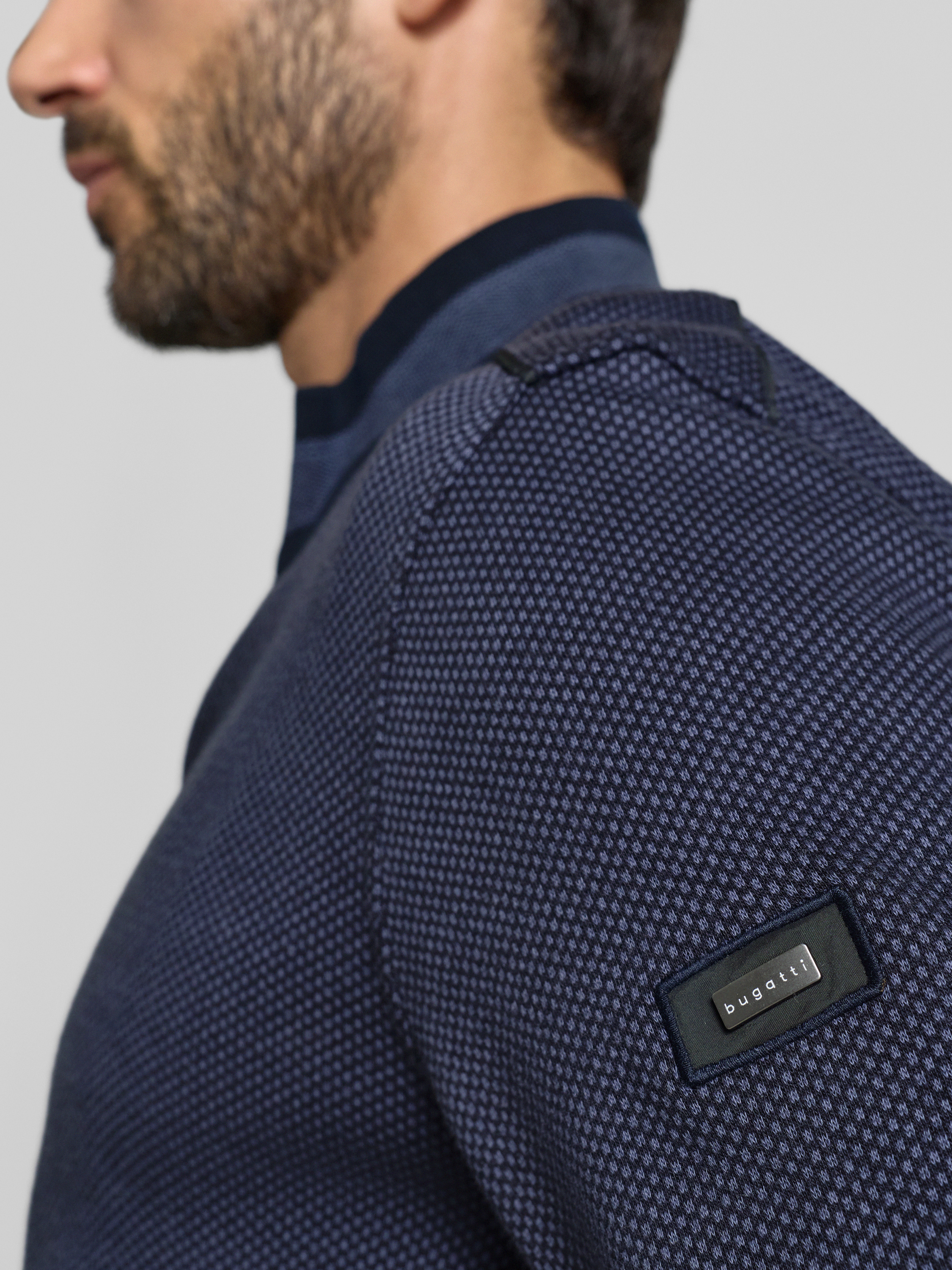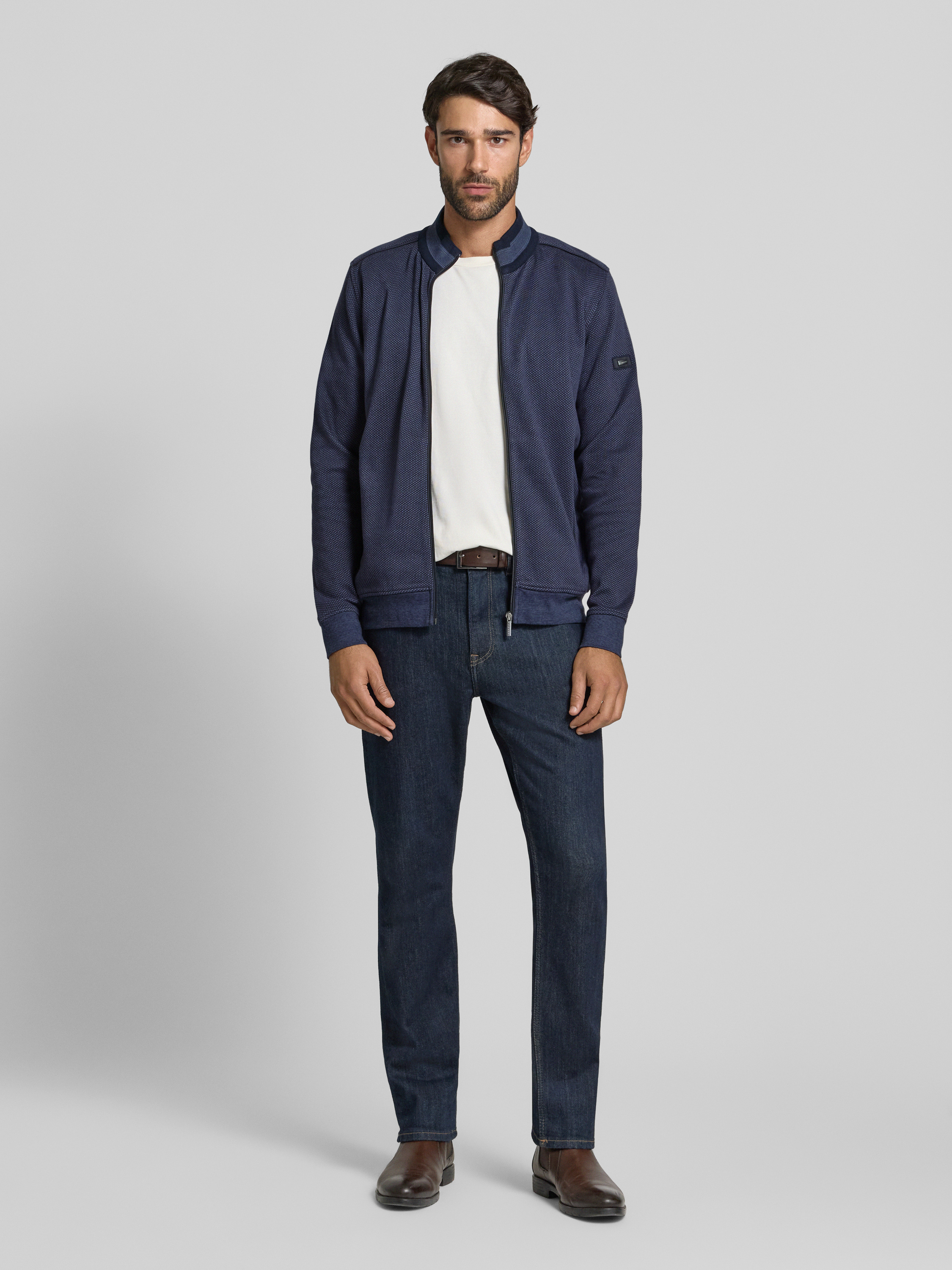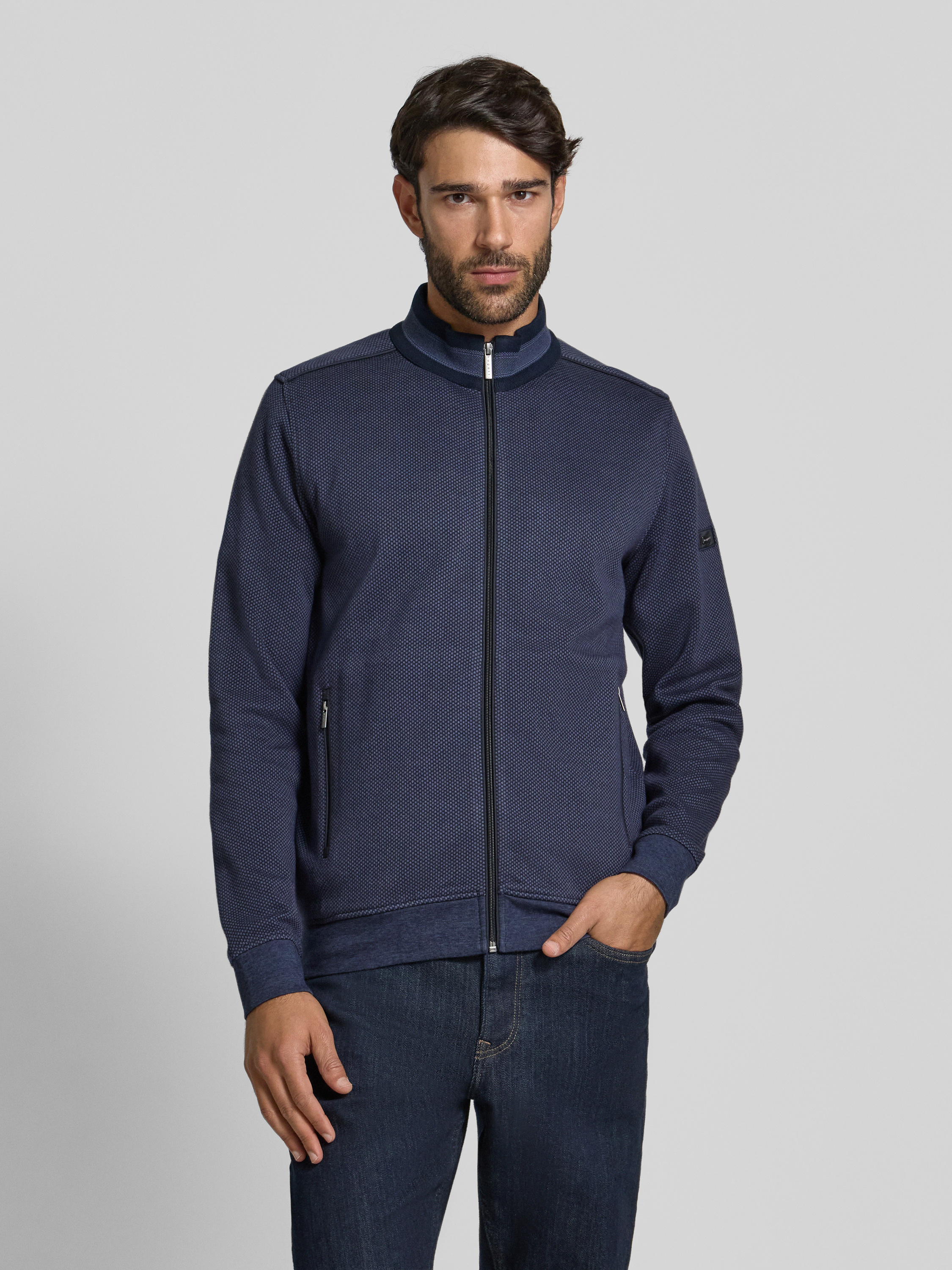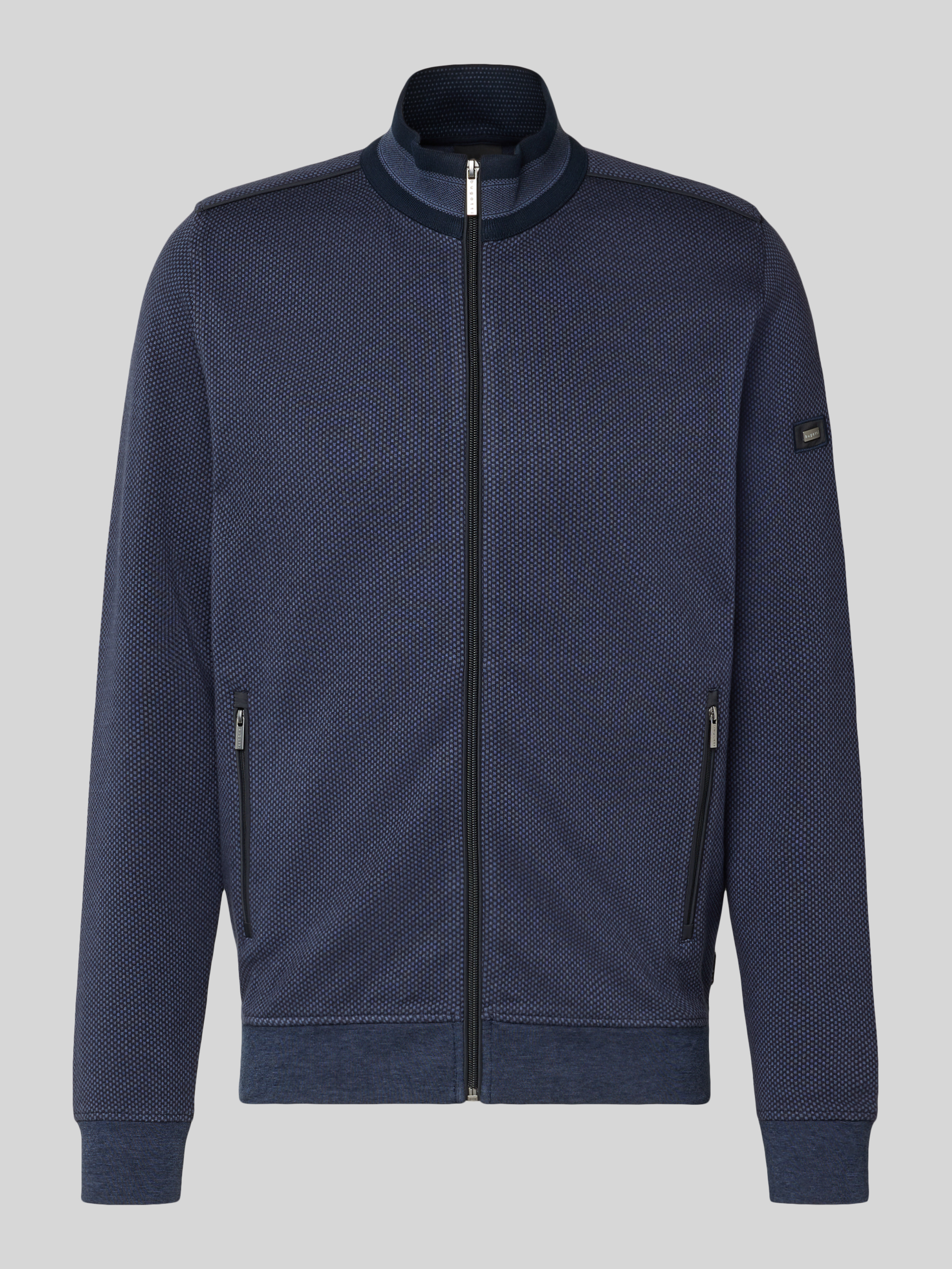 Bluza rozpinana z prążkowanymi wykończeniami - granatowy