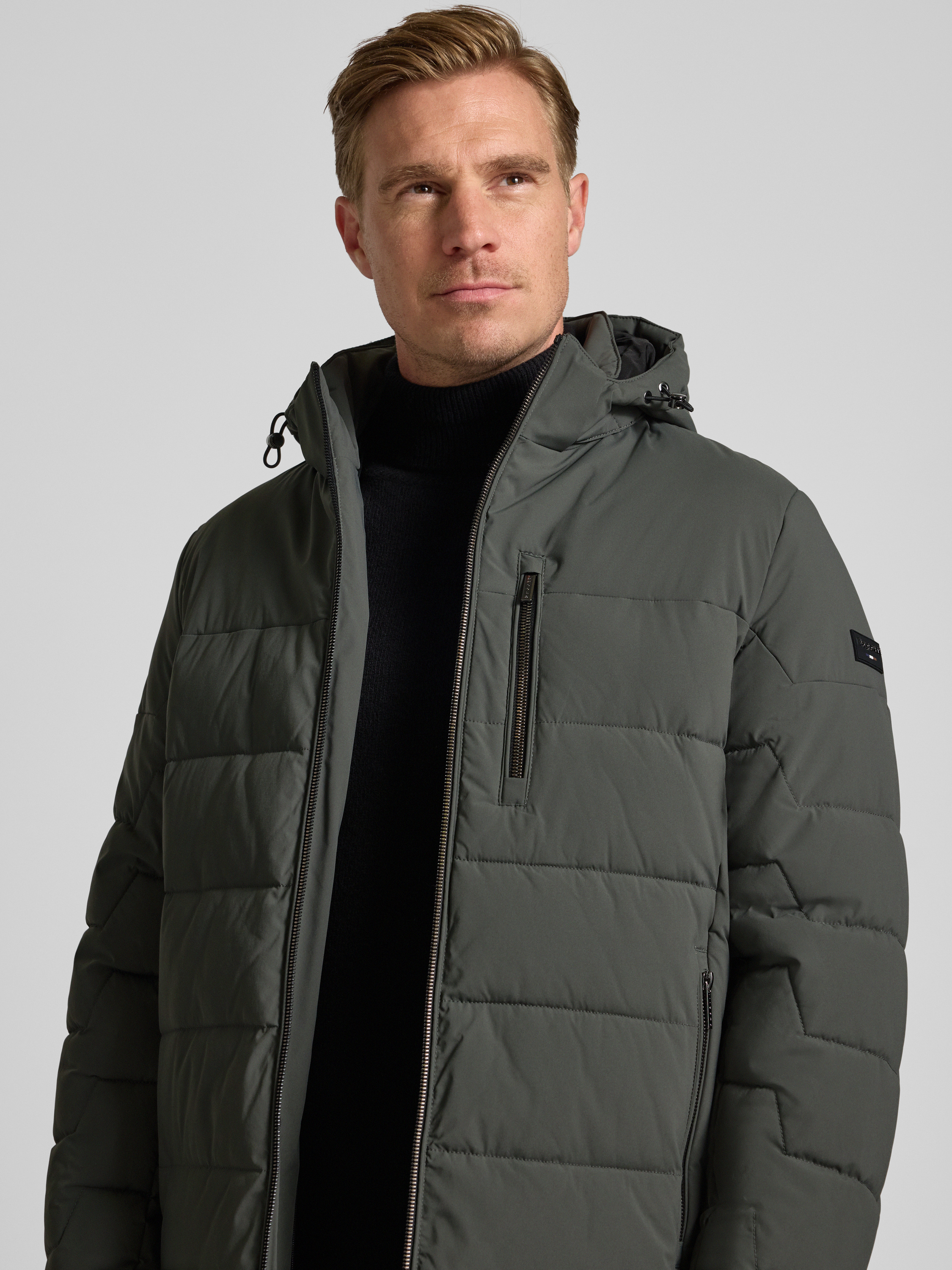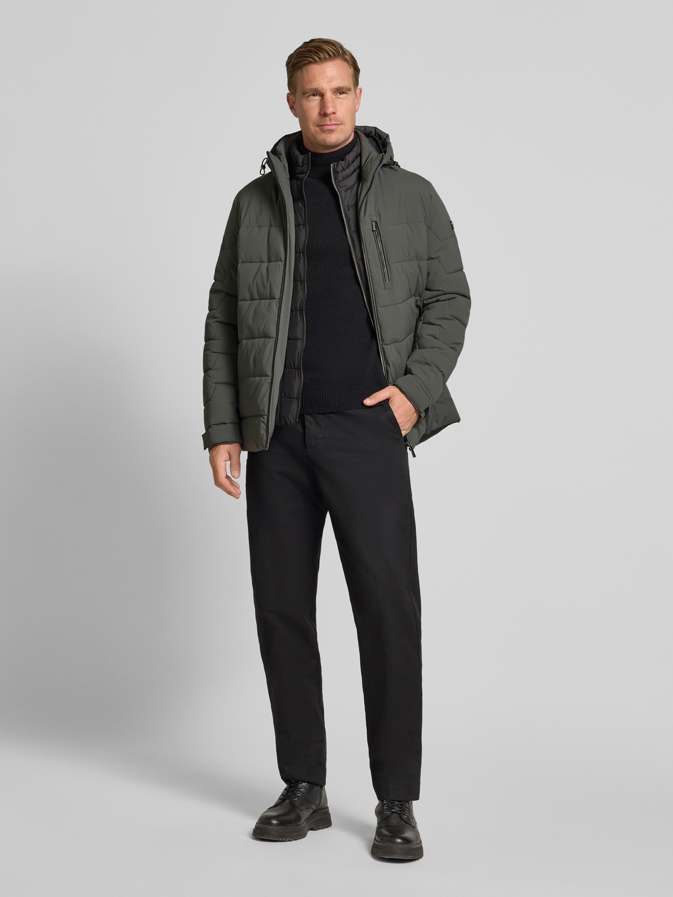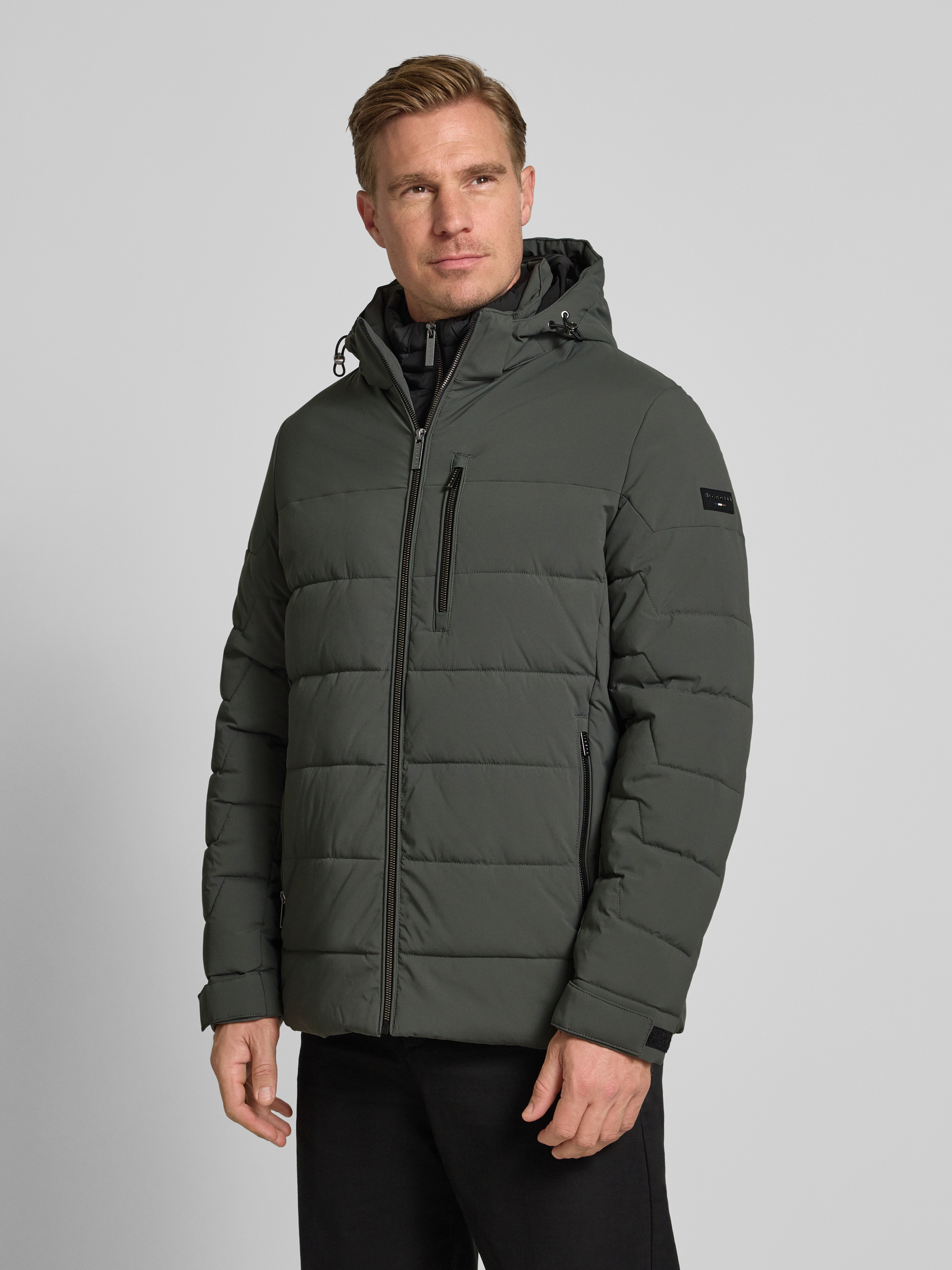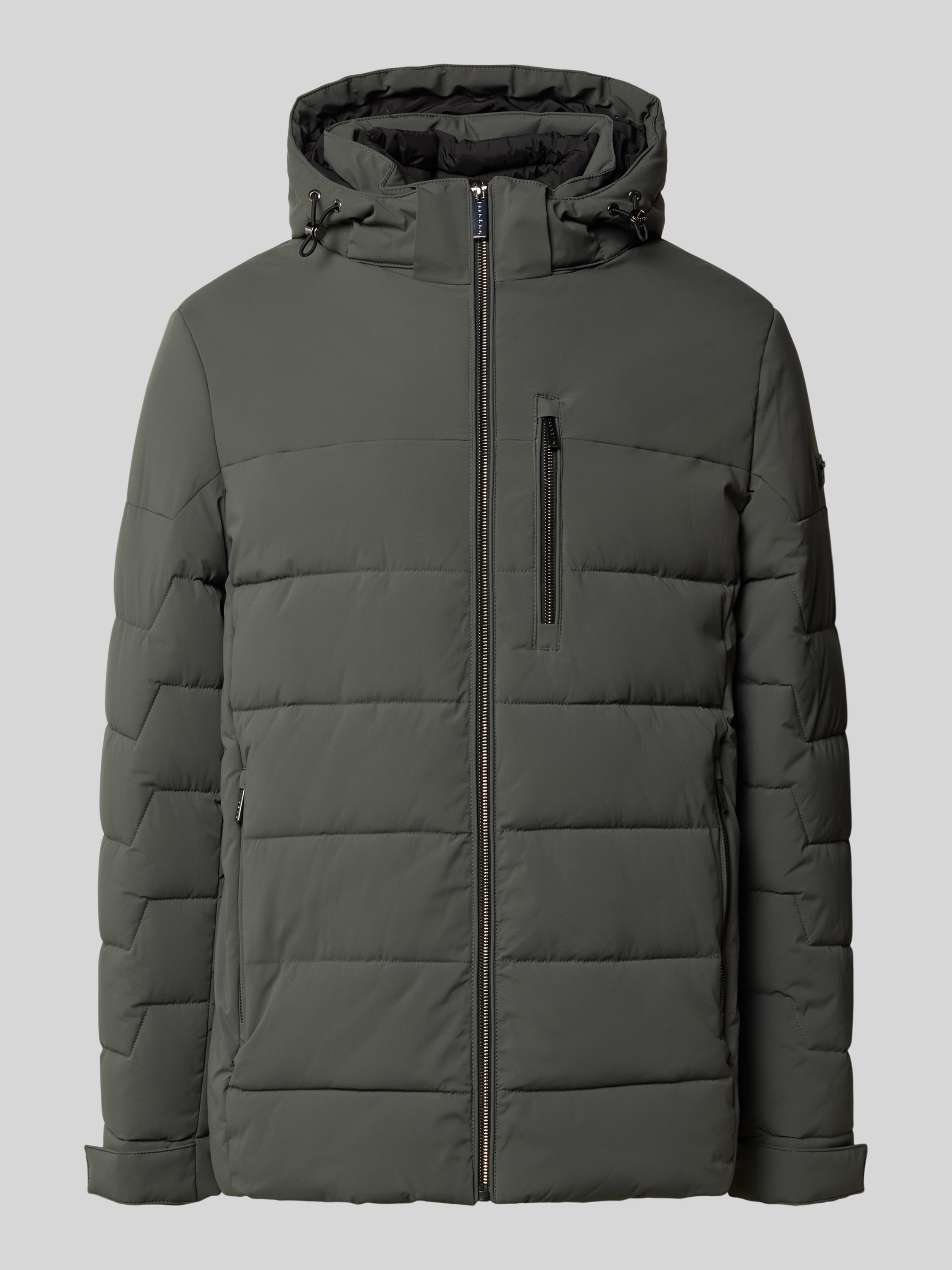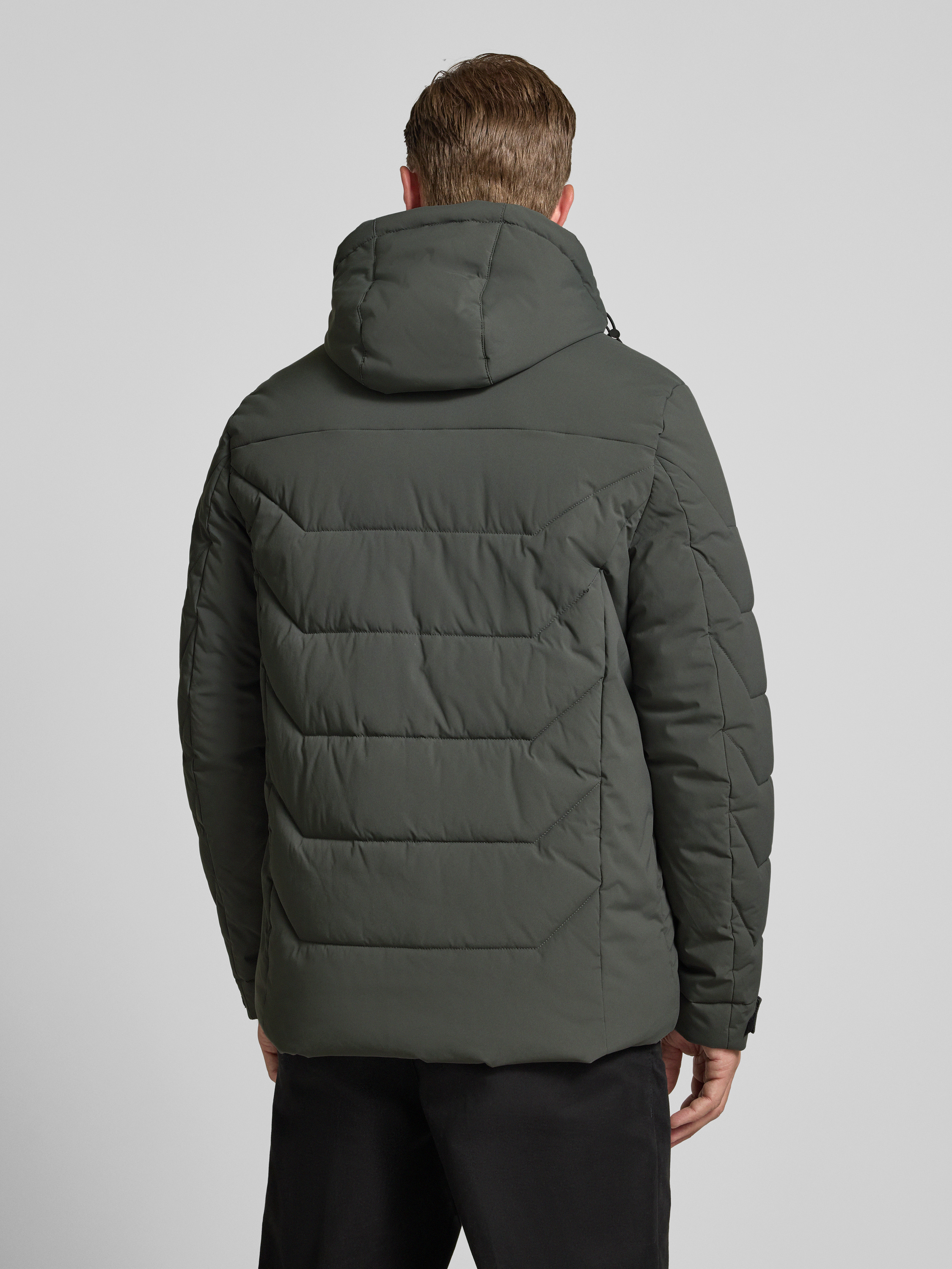 Pikowana kurtka z kapturem i kieszeniami zapinanymi na zamek błyskawiczny - grafitowy