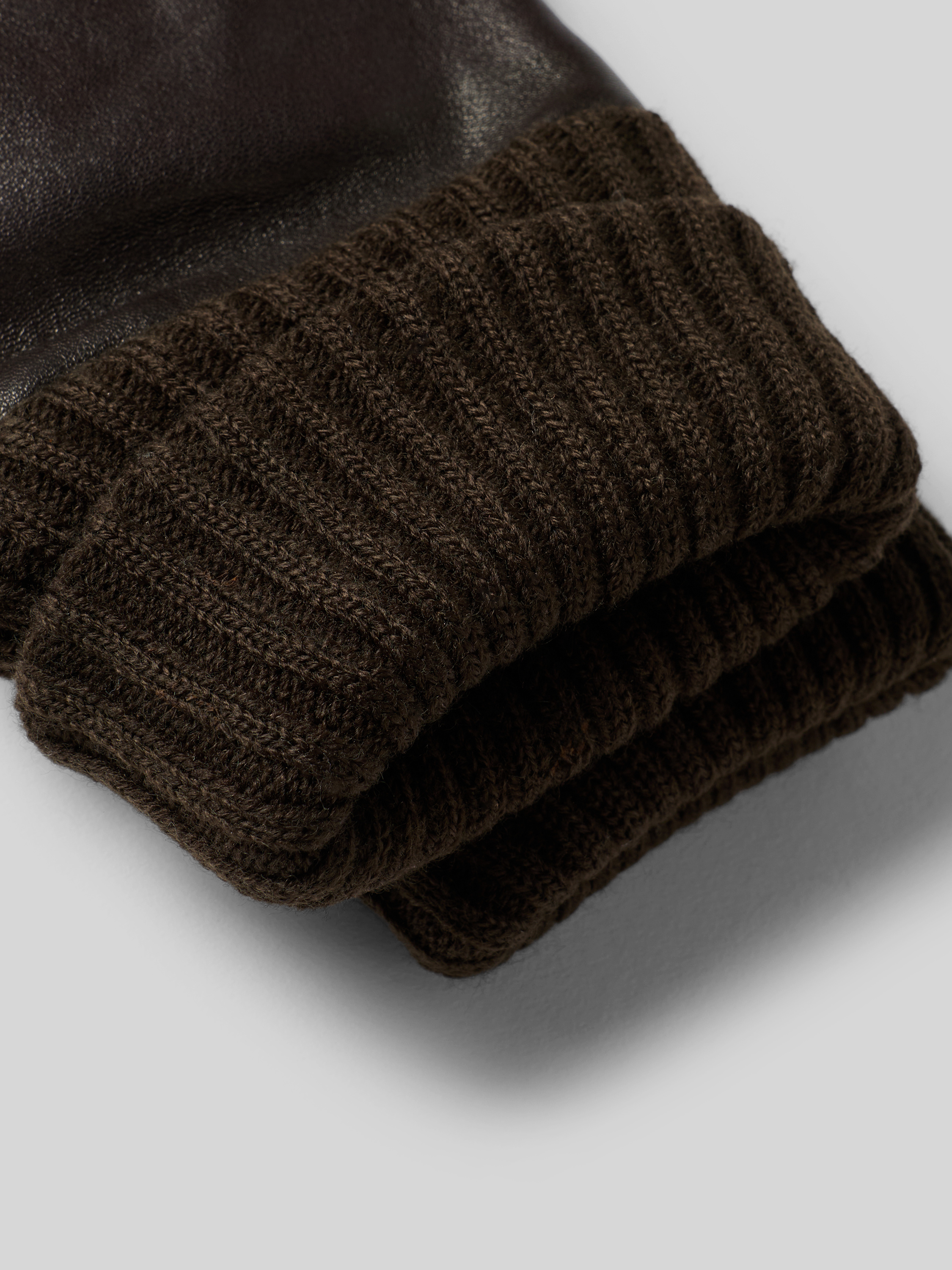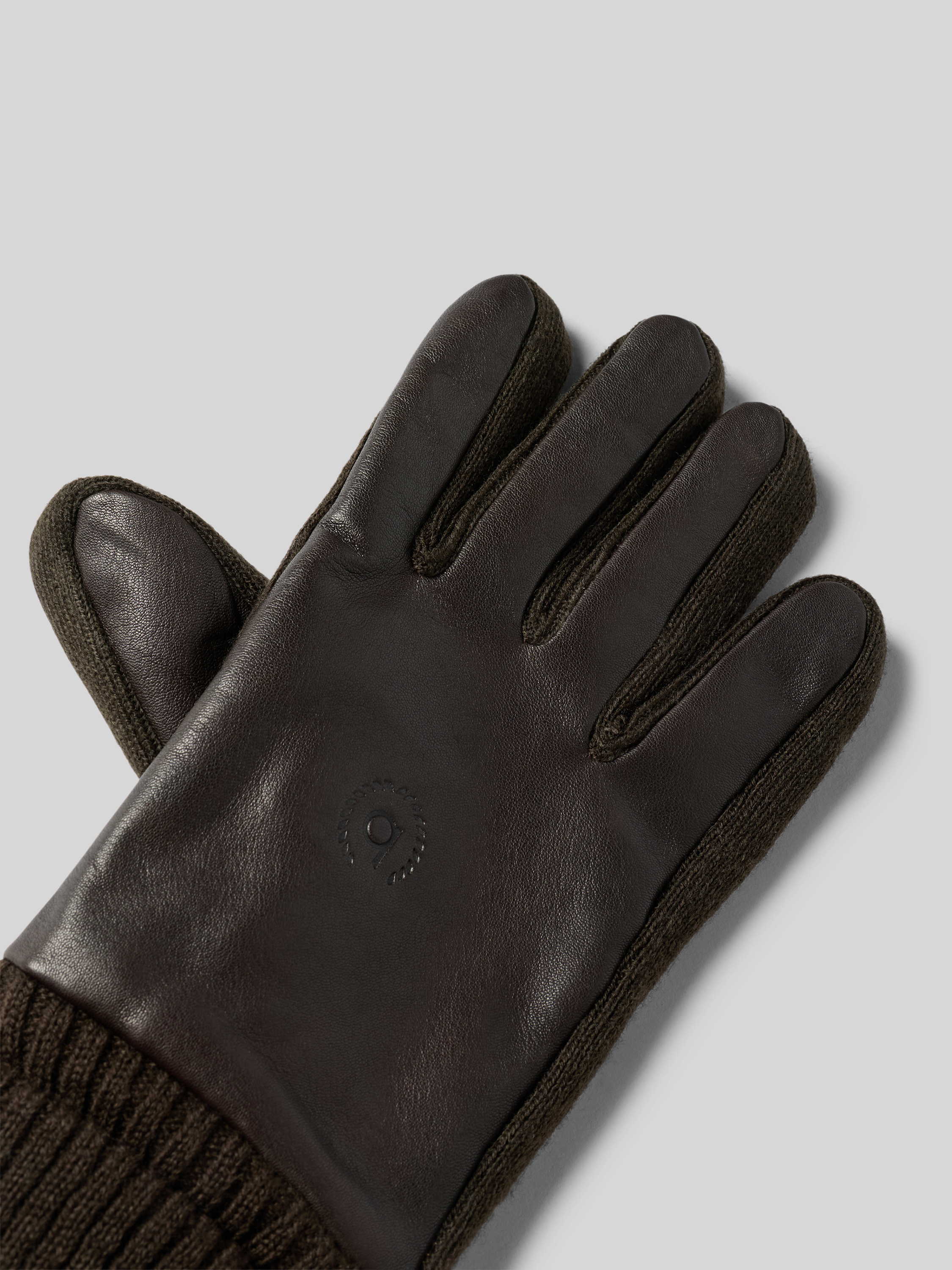 Rękawiczki z mieszanki skóry i tkaniny z detalem z logo - ciemnobrązowy