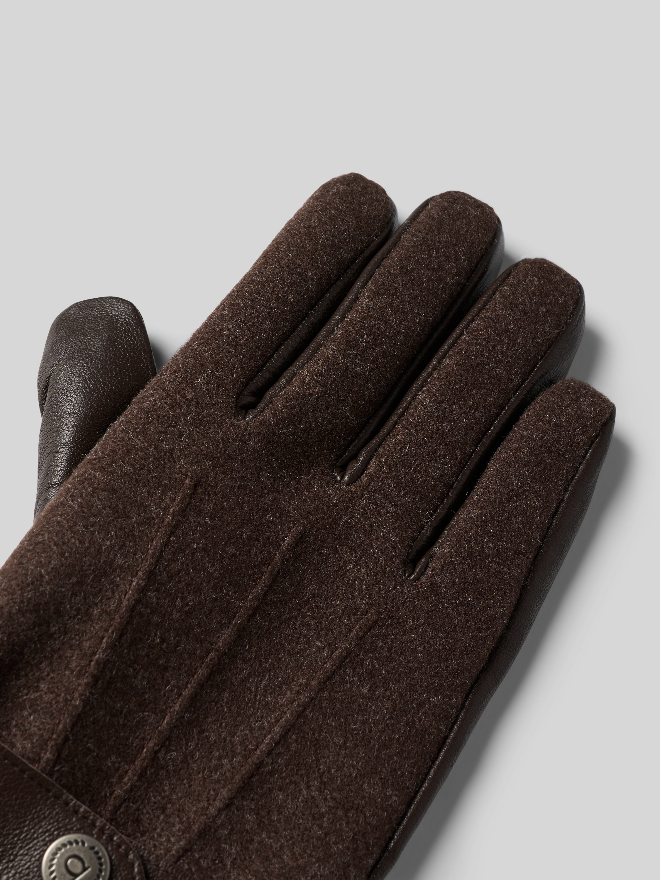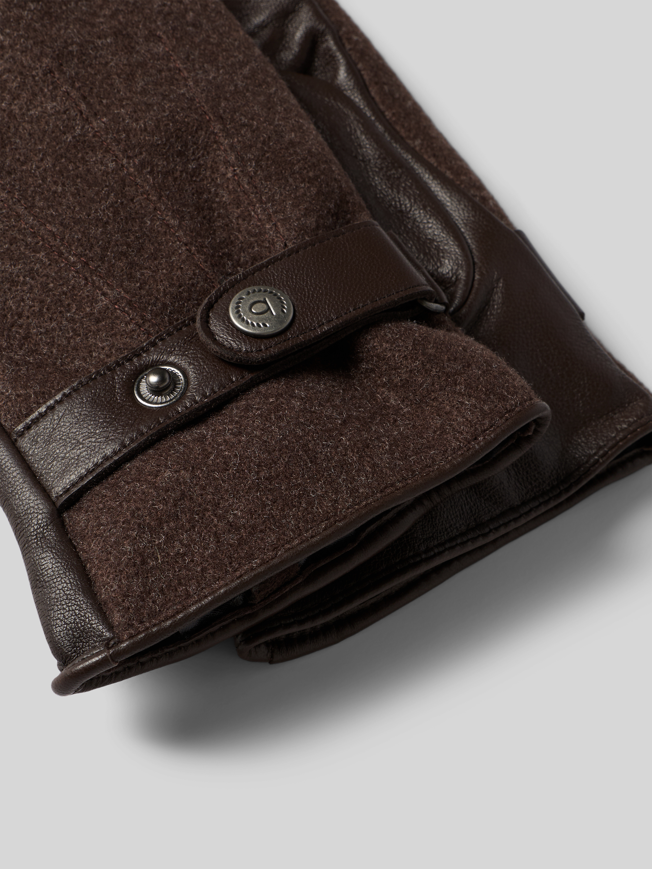 Rękawiczki z mieszanki tkaniny i skóry owczej z patką - ciemnobrązowy