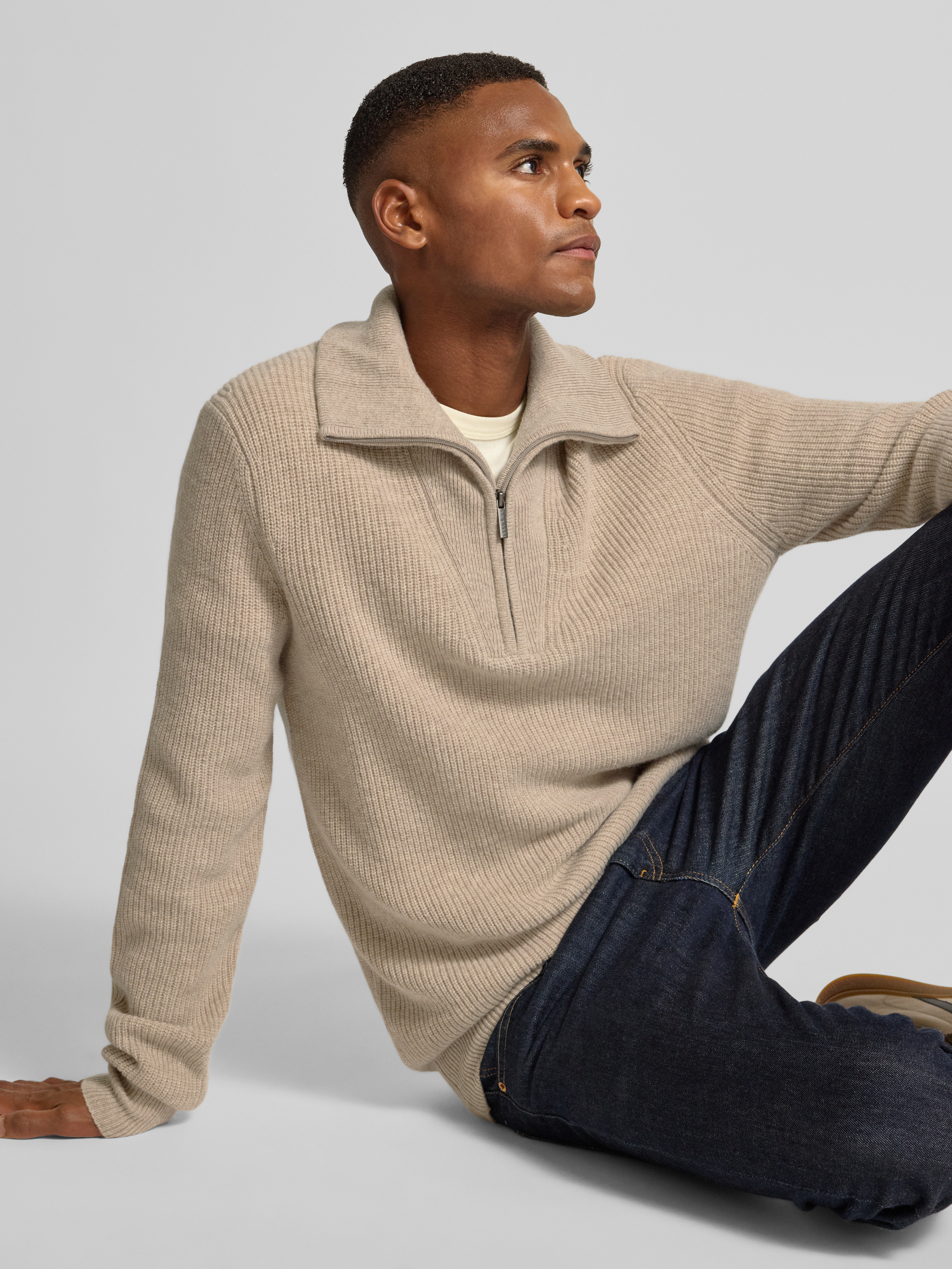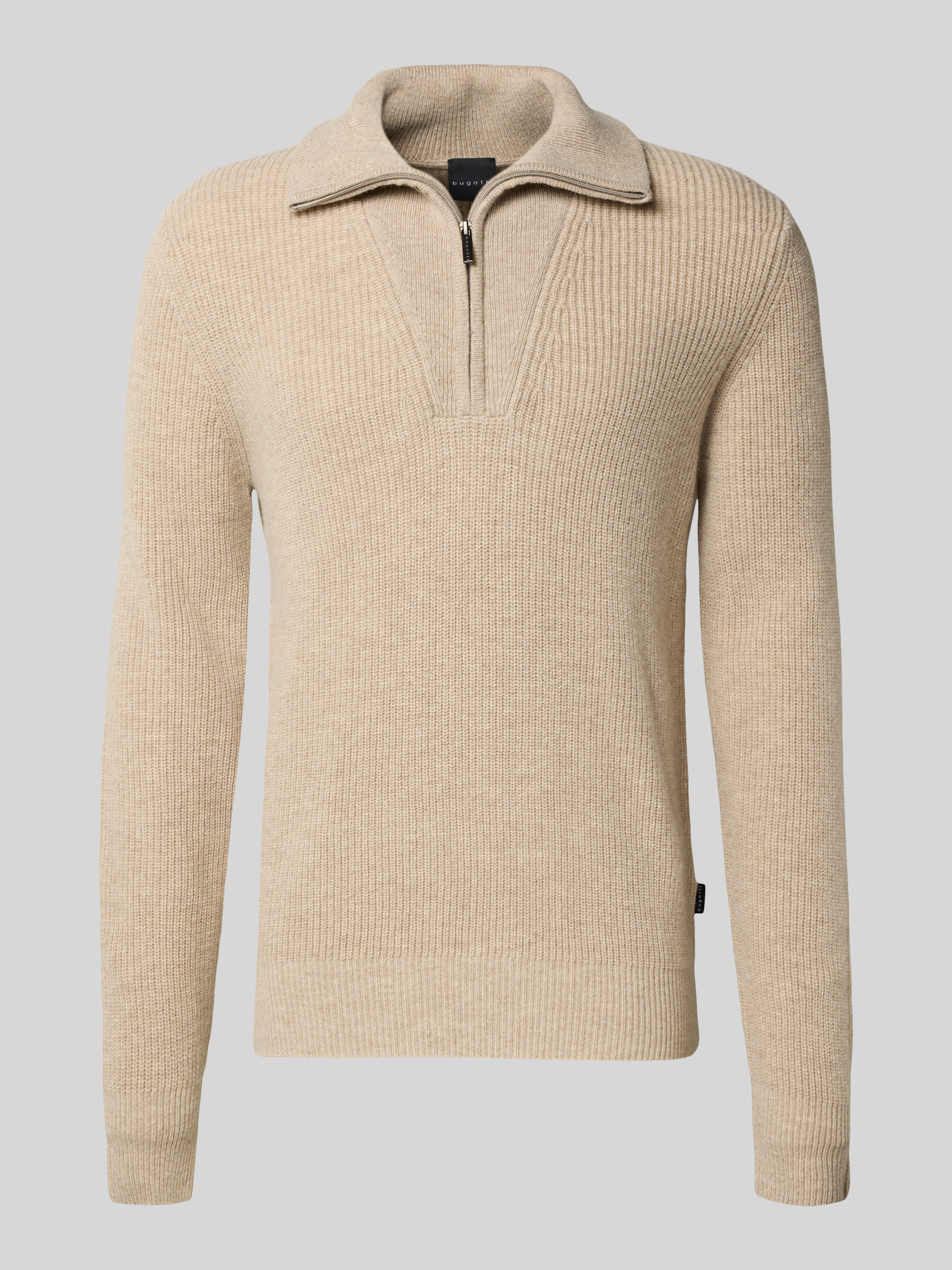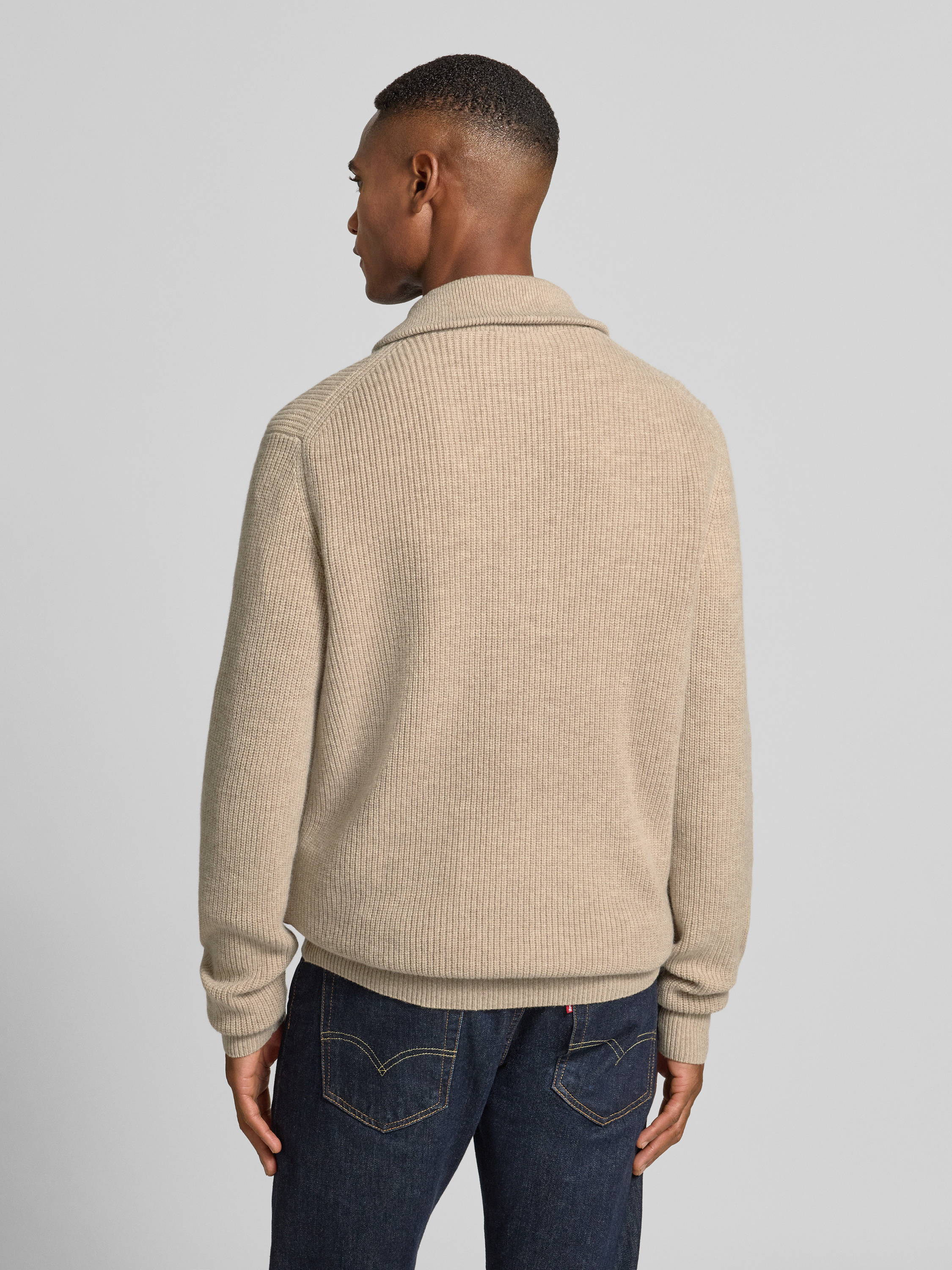 Sweter z mieszanki wełny z kołnierzem i detalem z logo - piaskowy
