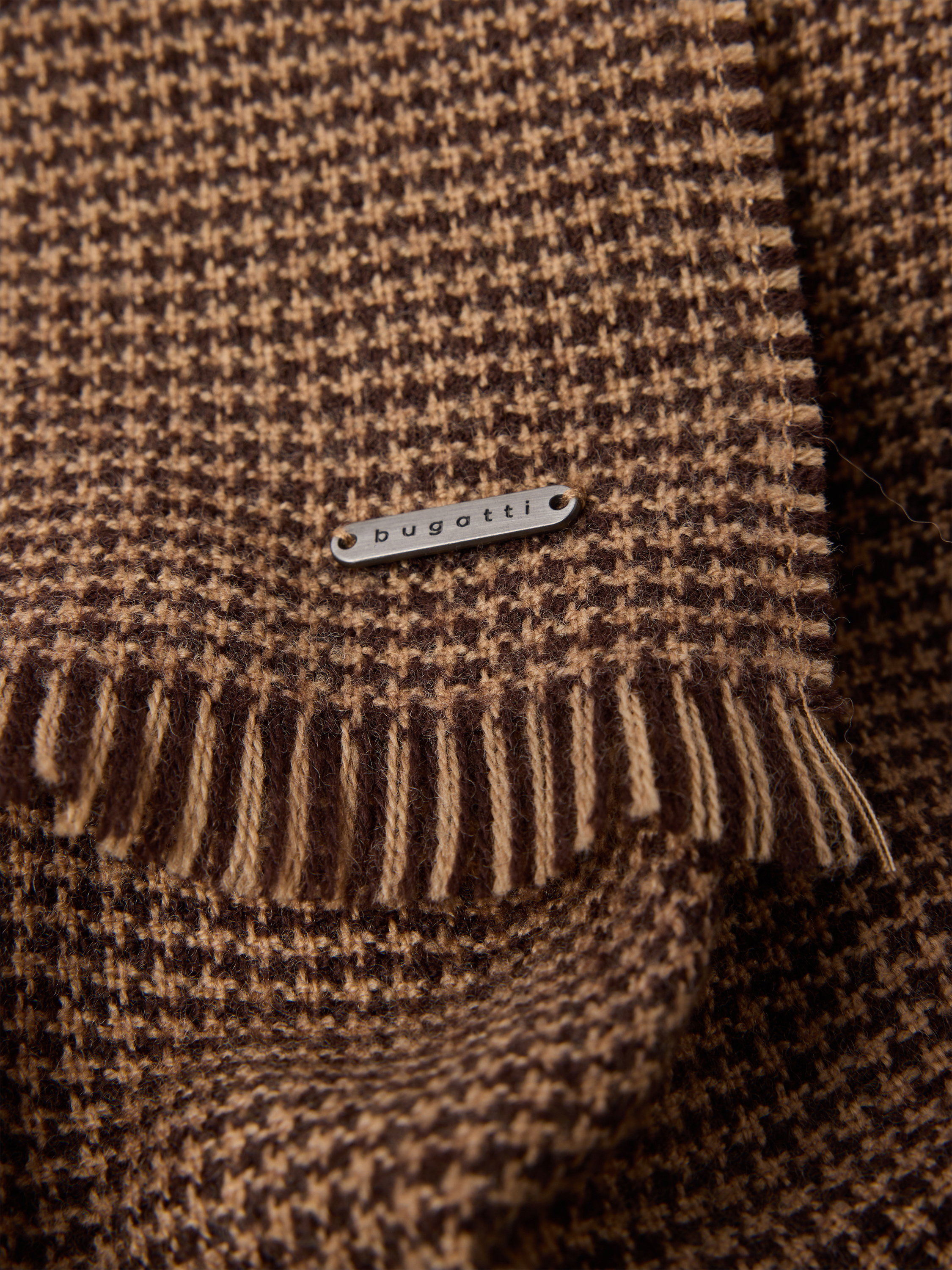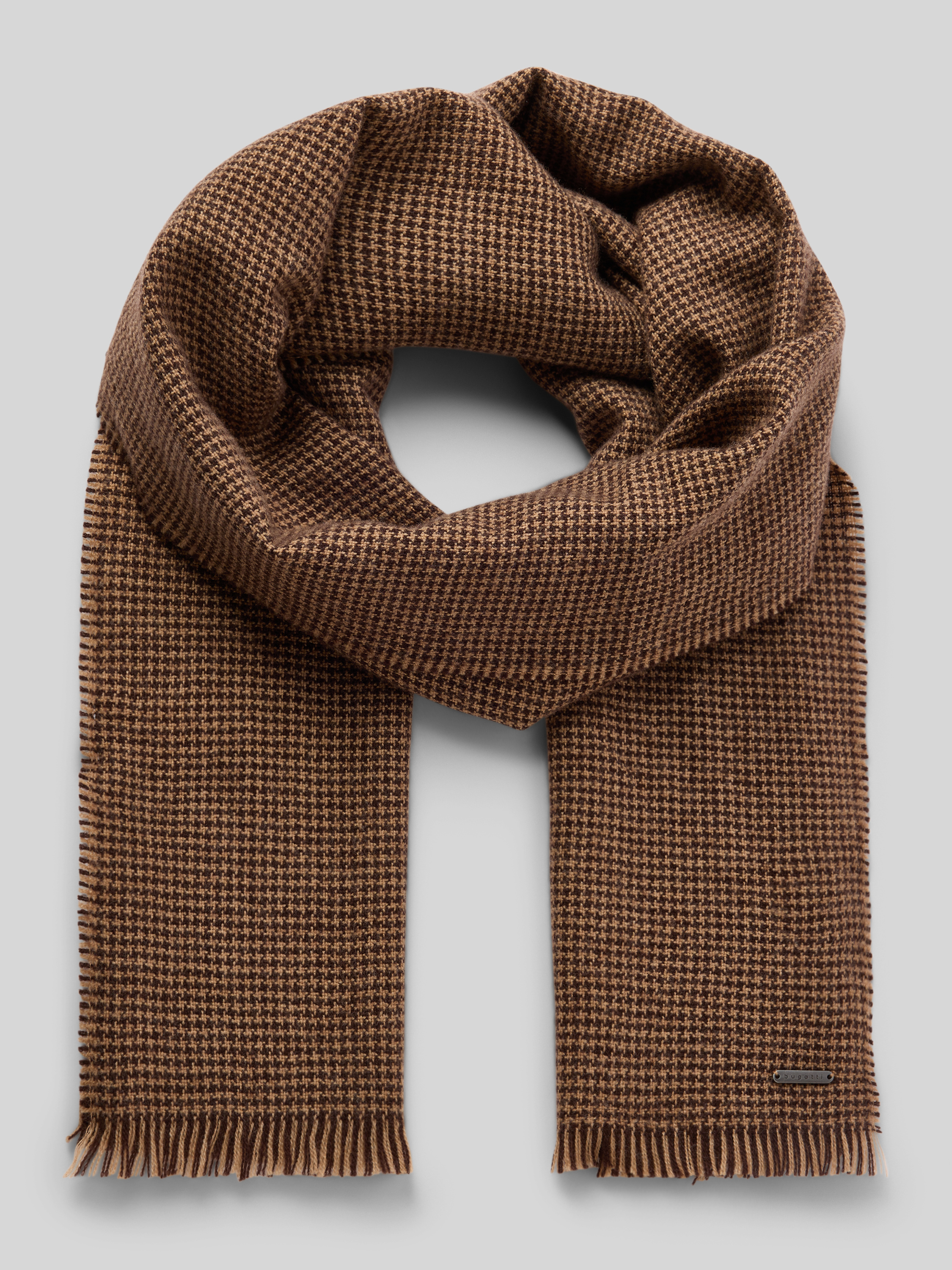 Szal z żywej wełny z frędzlami - ciemnobrązowy