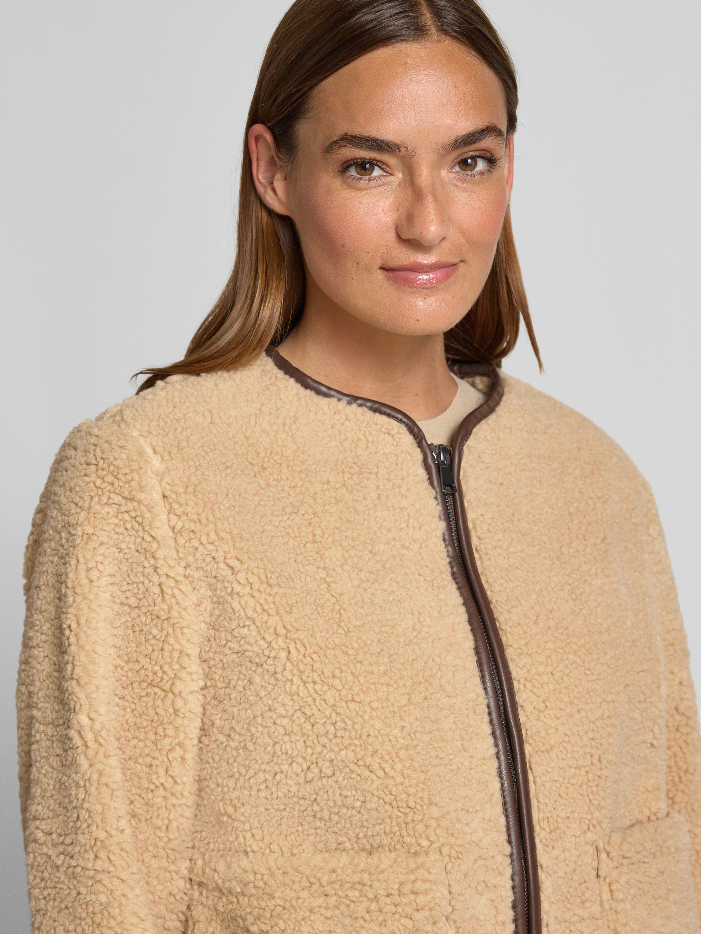 Kurtka z polaru z zamkiem błyskawicznym model ‘Asanne’ - beżowy melanż