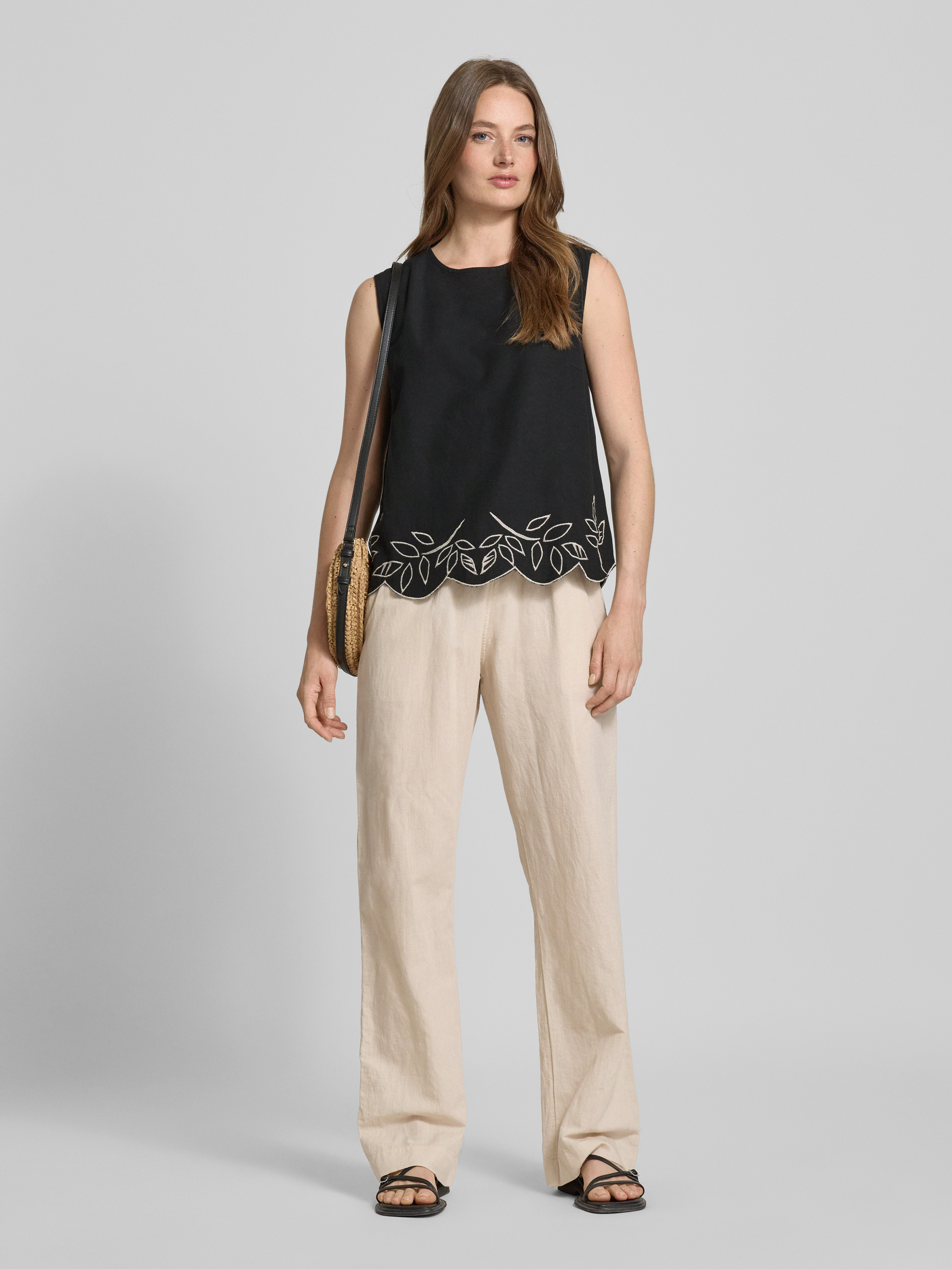 Top bluzkowy o kroju regular fit z wyhaftowanym motywem model ‘IBONO’ - czarny