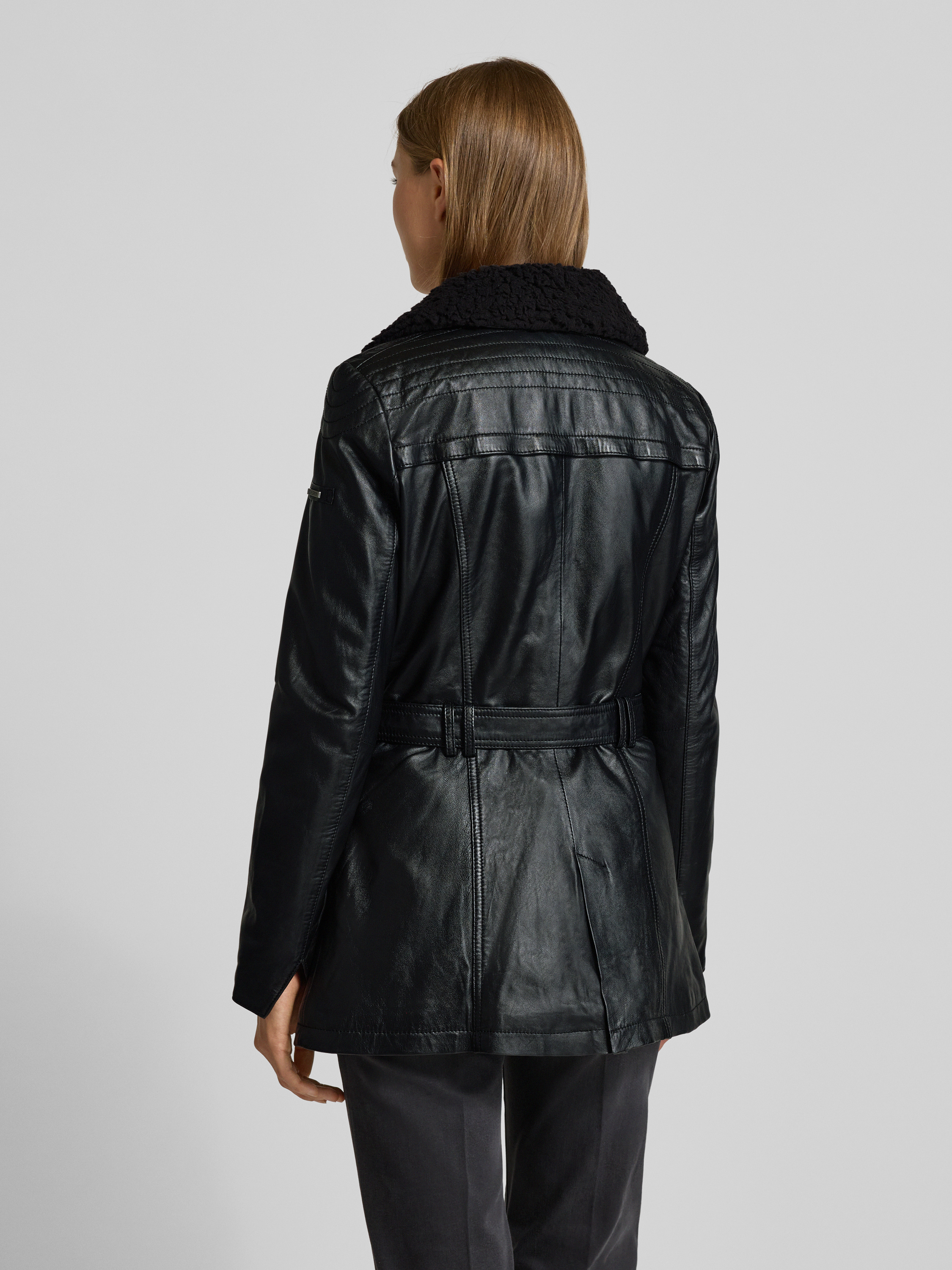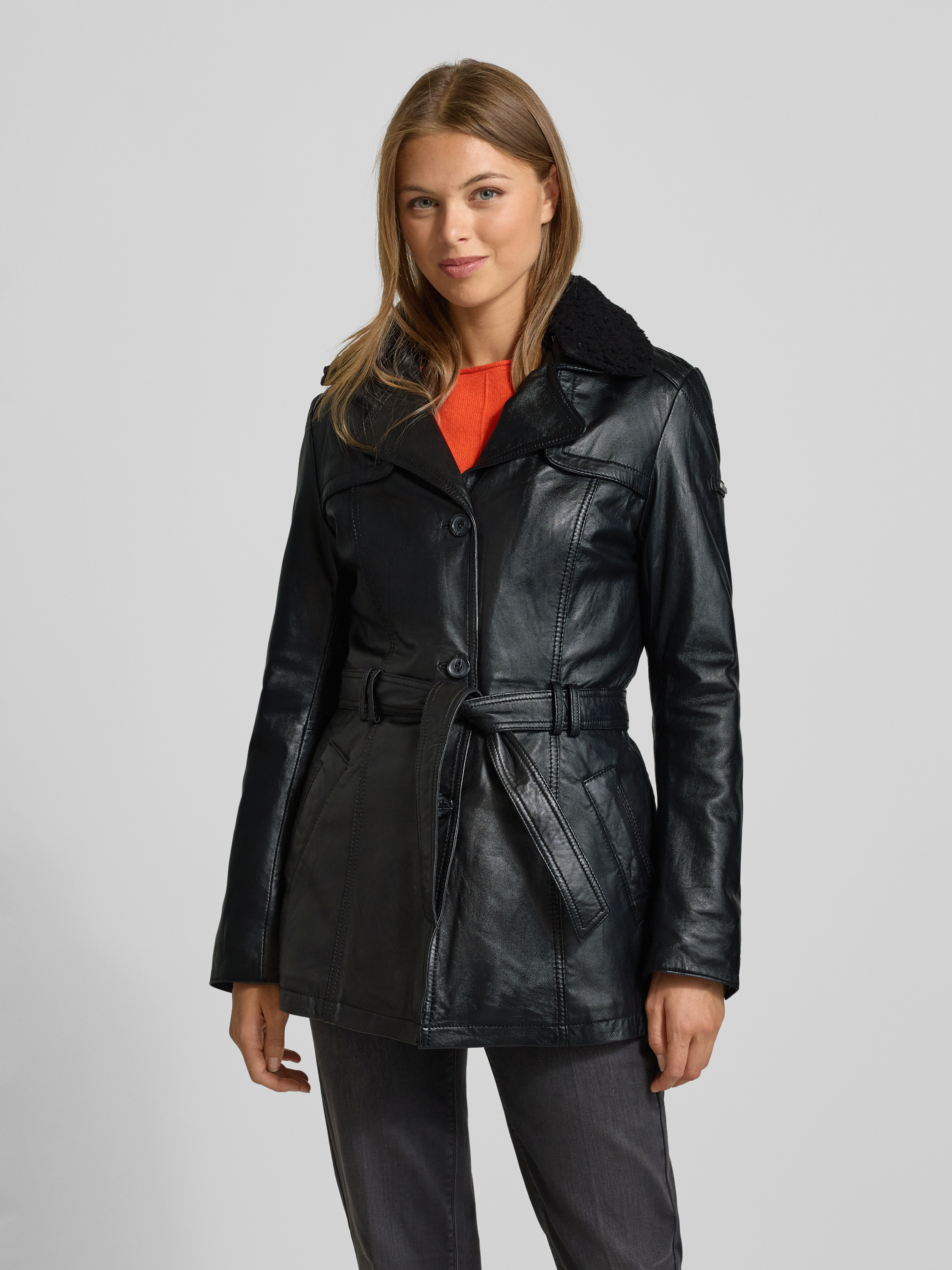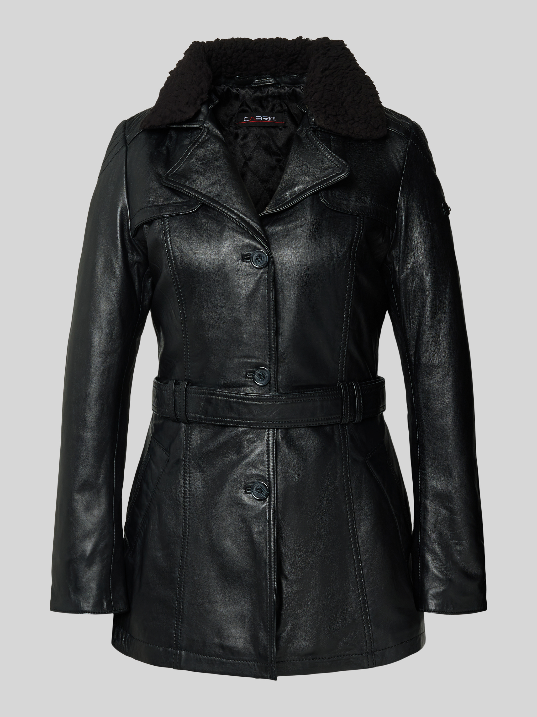 Płaszcz skórzany z kołnierzem z połami - czarny