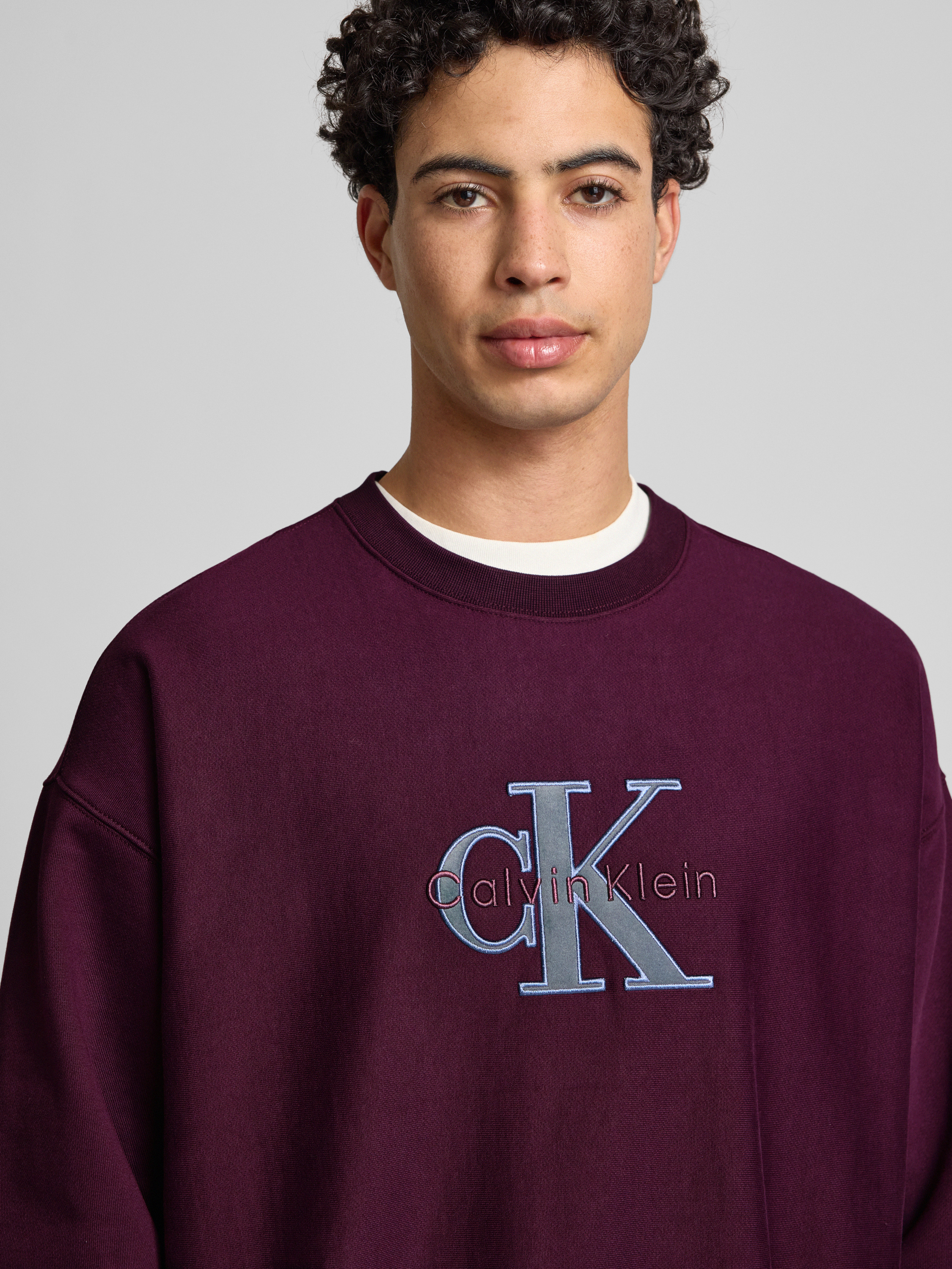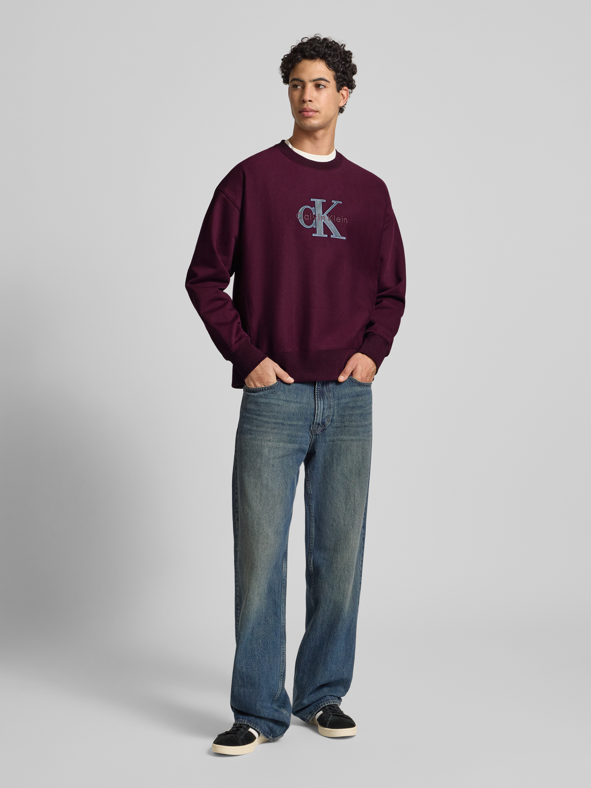 Bluza o kroju oversized fit z wyhaftowanym logo model ‘Premium’ - bordowy