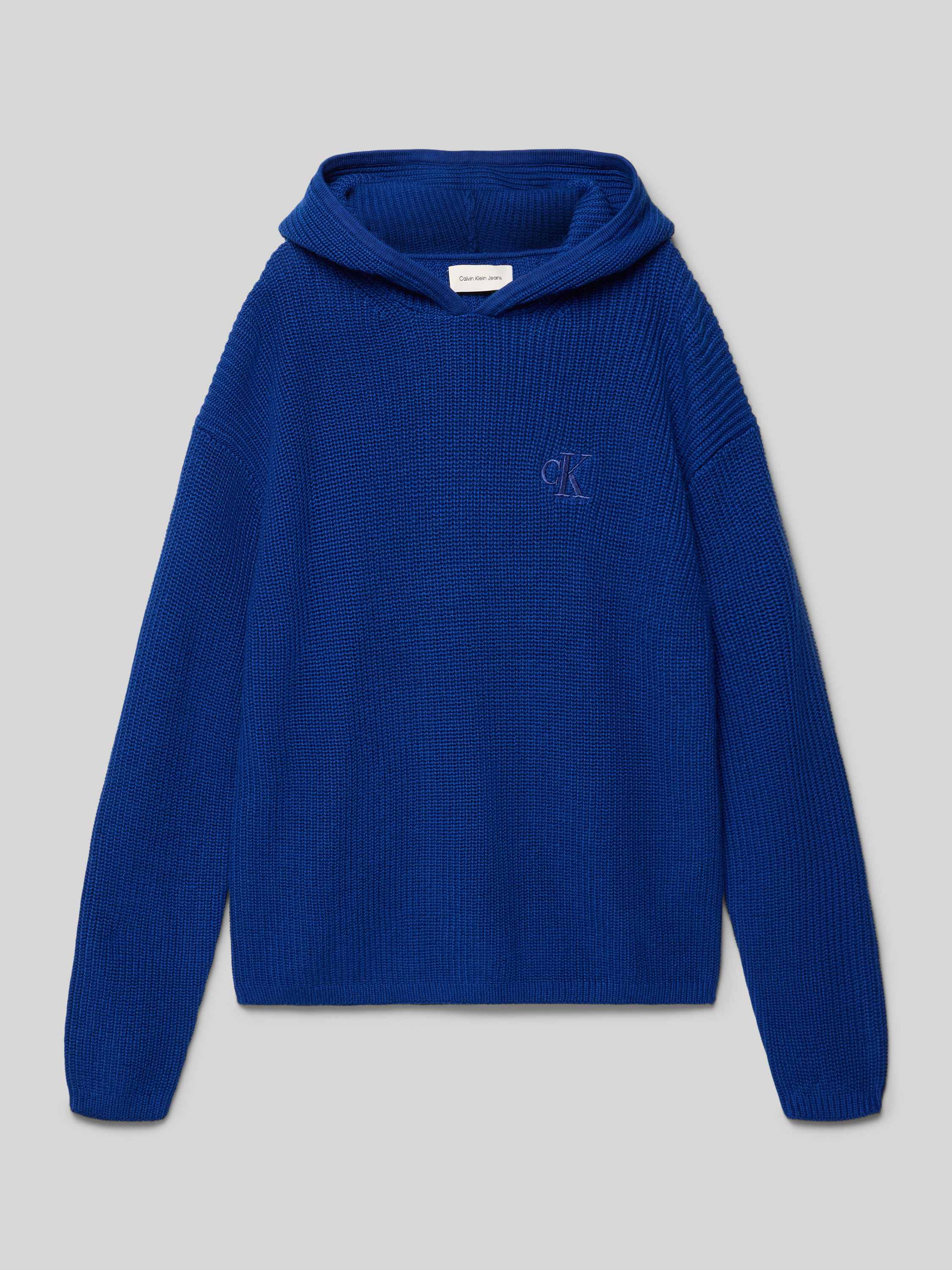 Bluza z kapturem z imitacji dzianiny - królewski niebieski