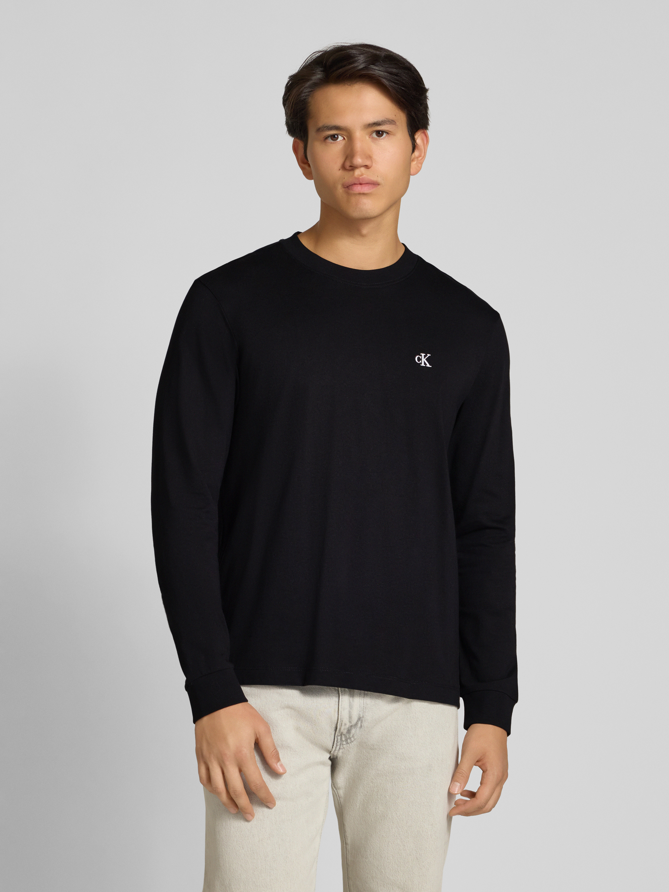 Bluzka z długim rękawem i wyhaftowanym logo - czarny