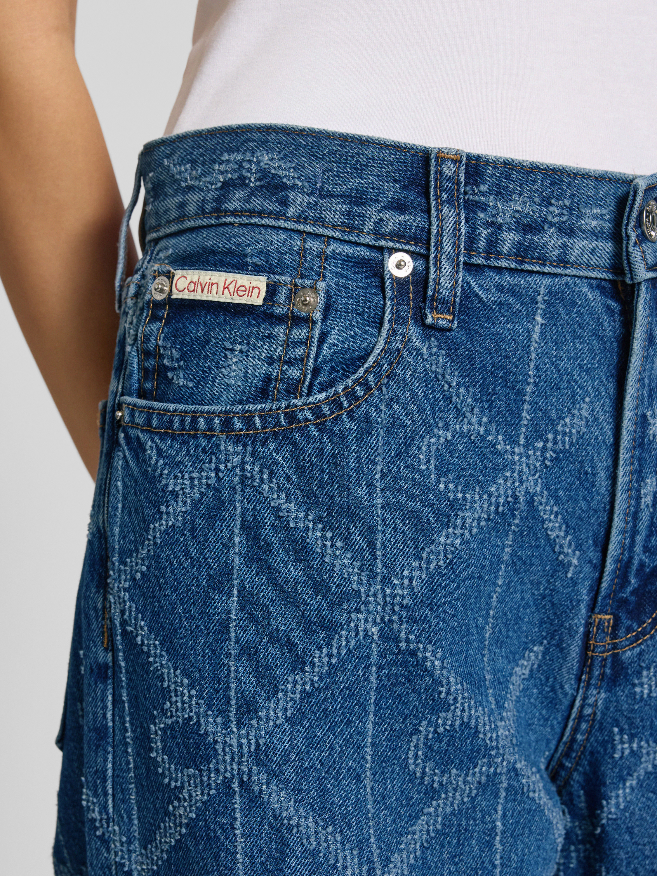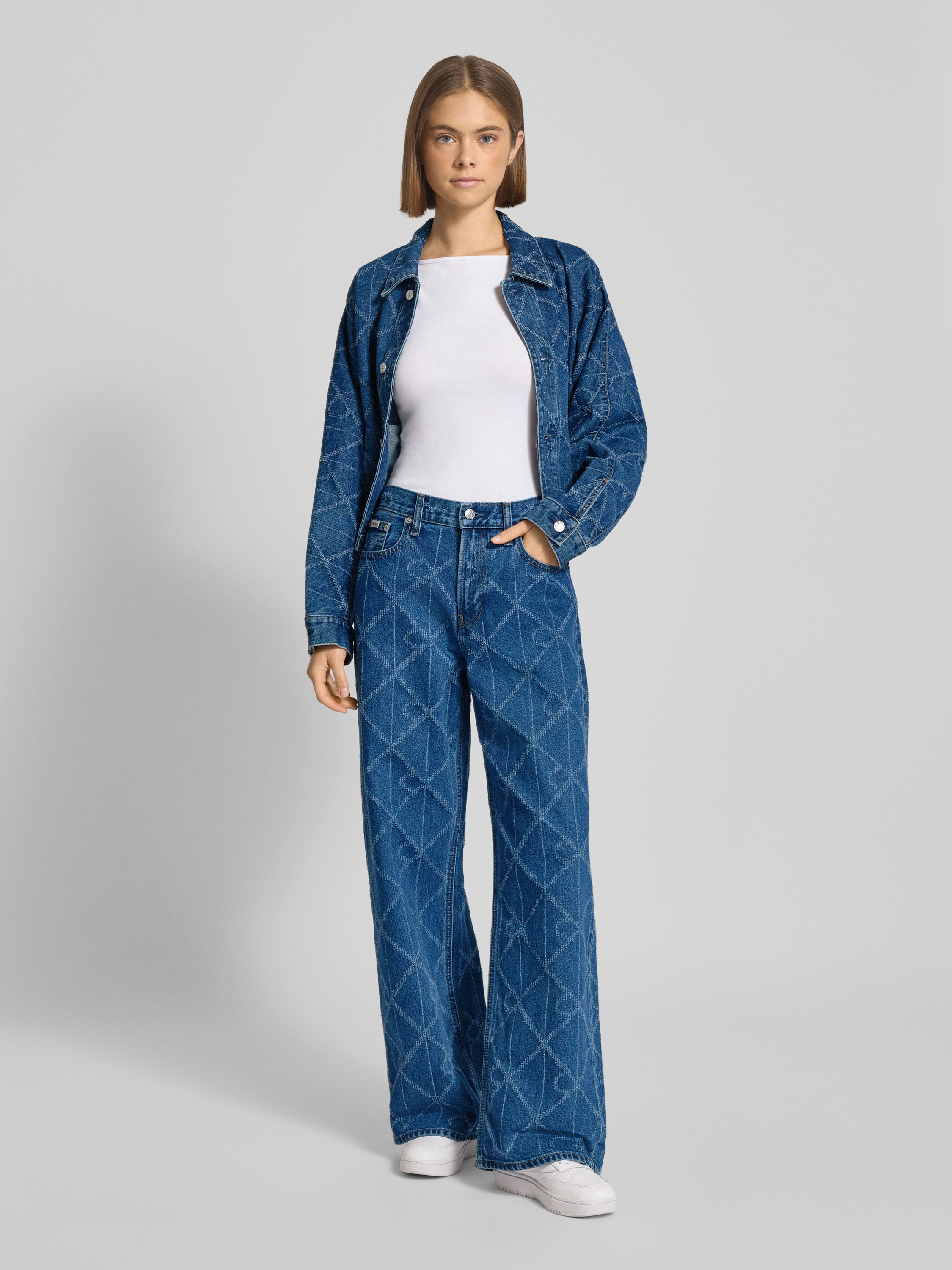 Jeansy o luźnym kroju z 5 kieszeniami - granatowy