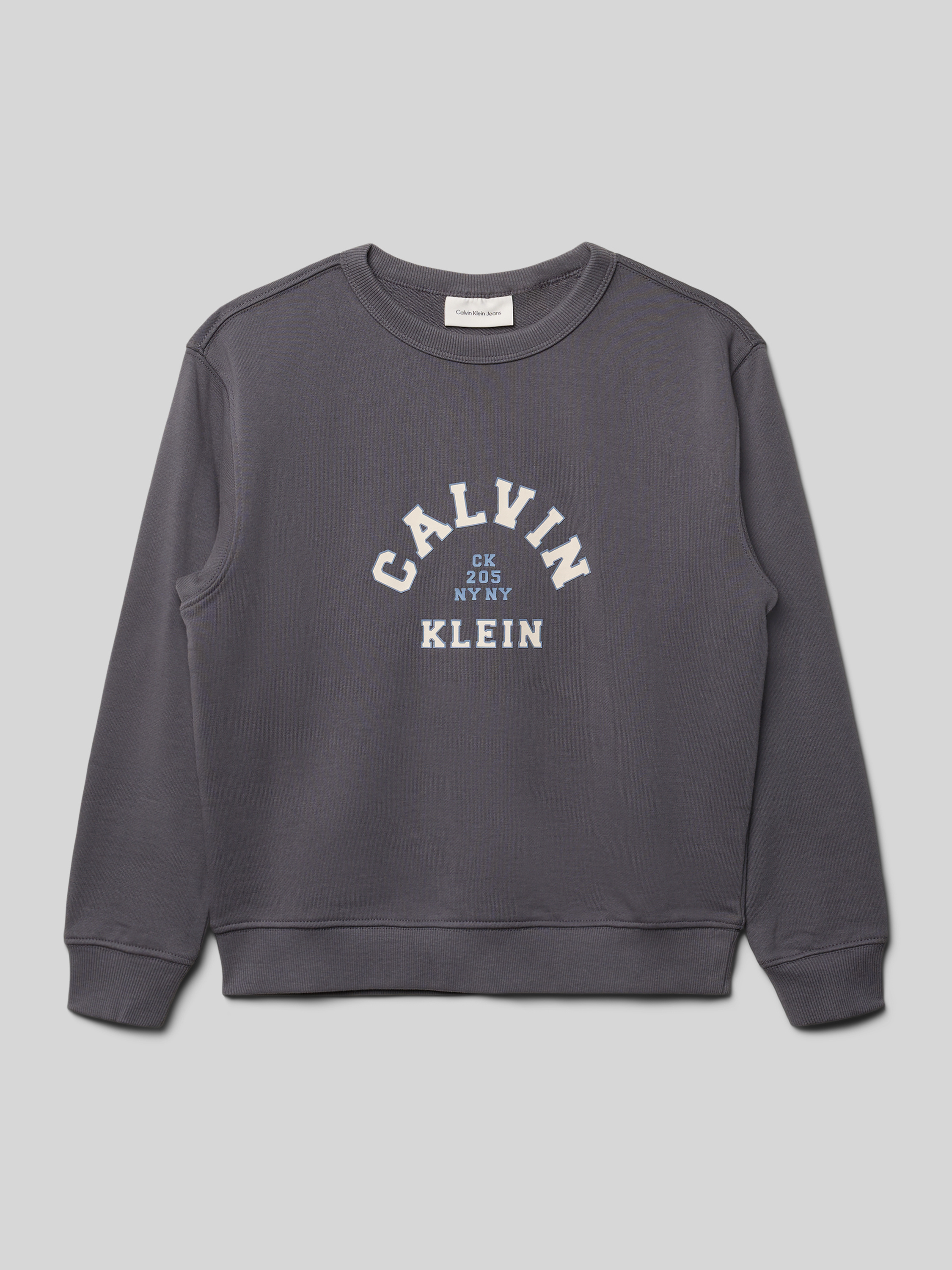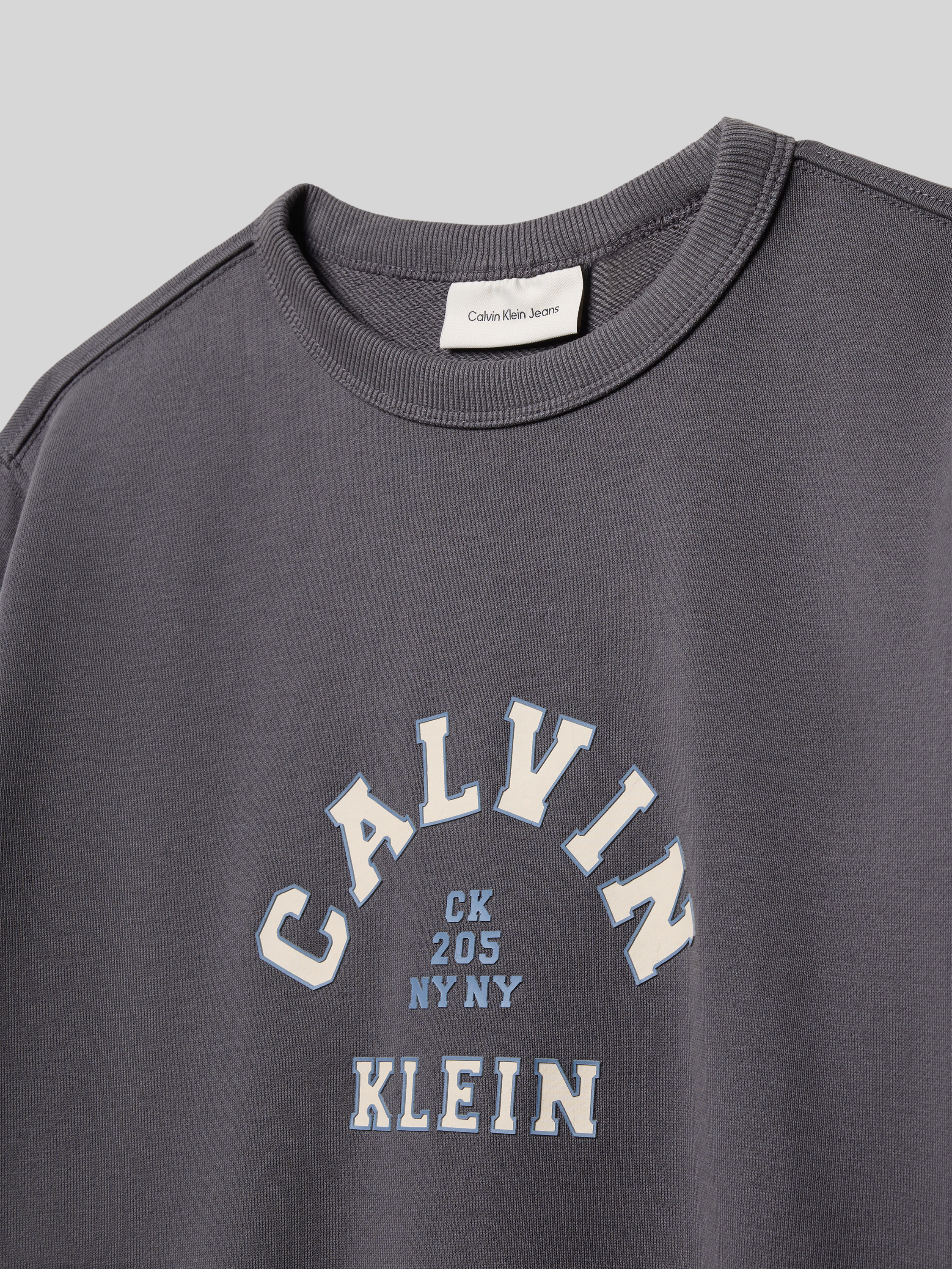 Sweter o kroju regular fit z nadrukiem z logo model ‘Varsity’ - grafitowy