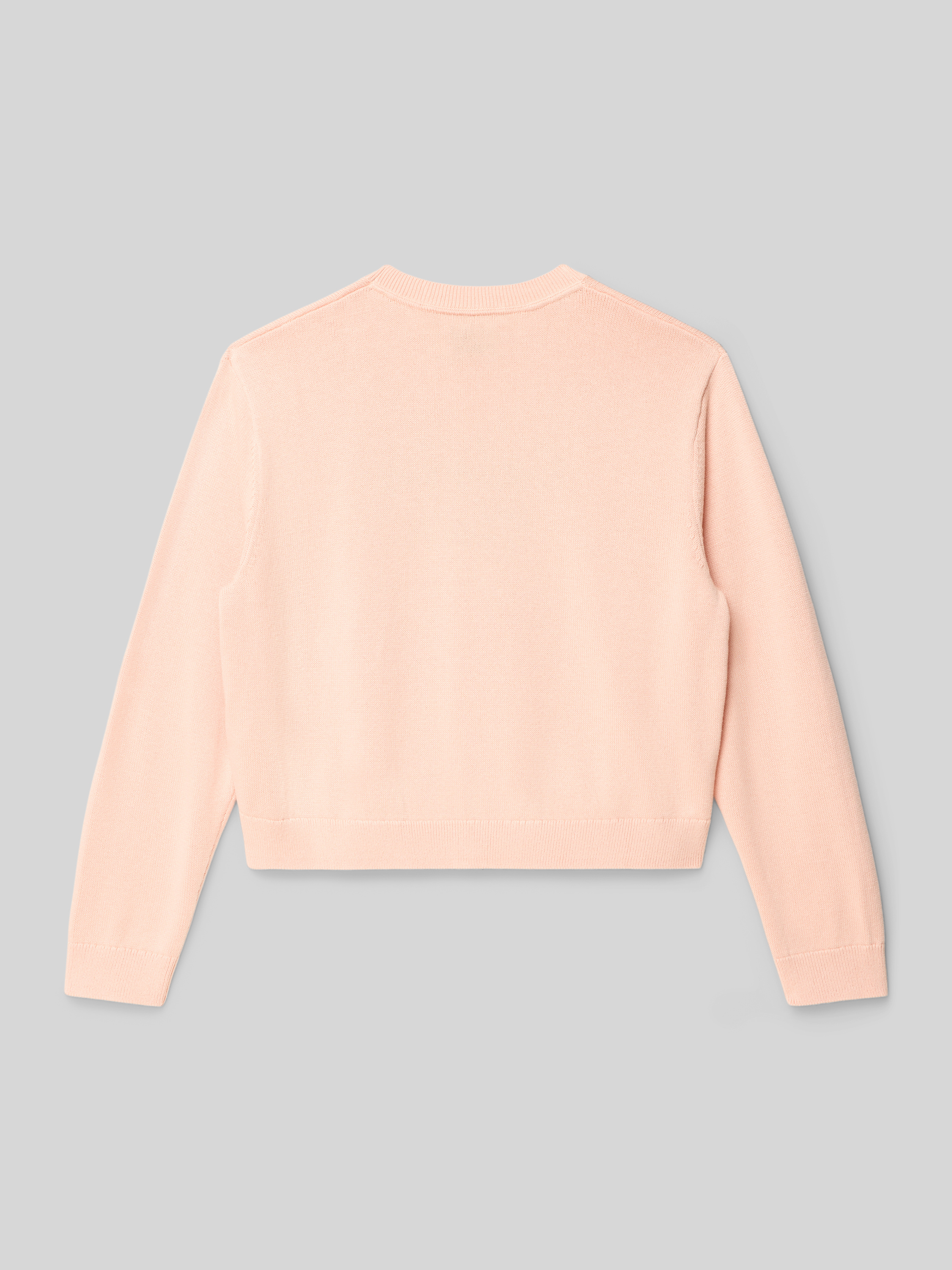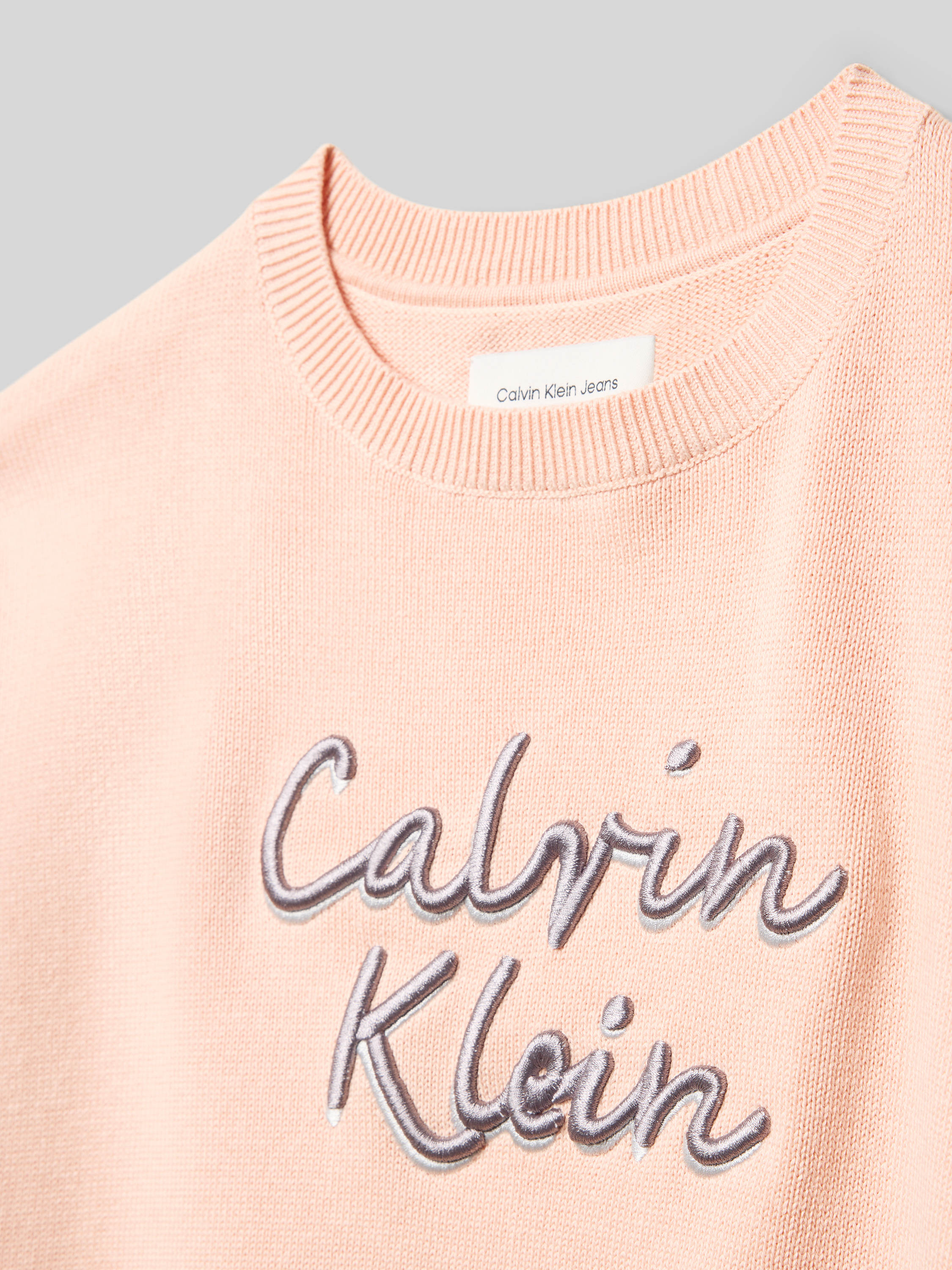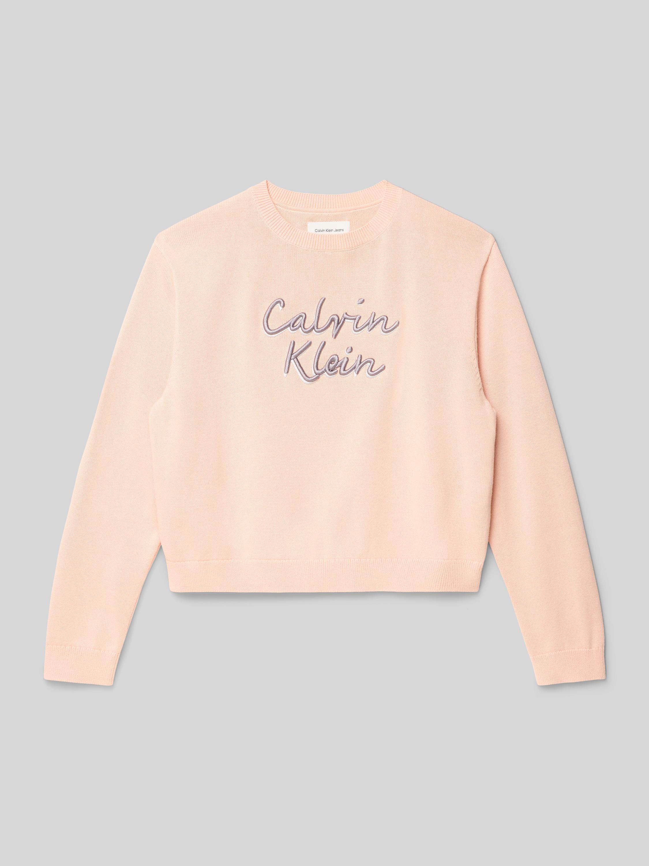 Sweter z dzianiny z wyhaftowanym logo - brudnoróżowy