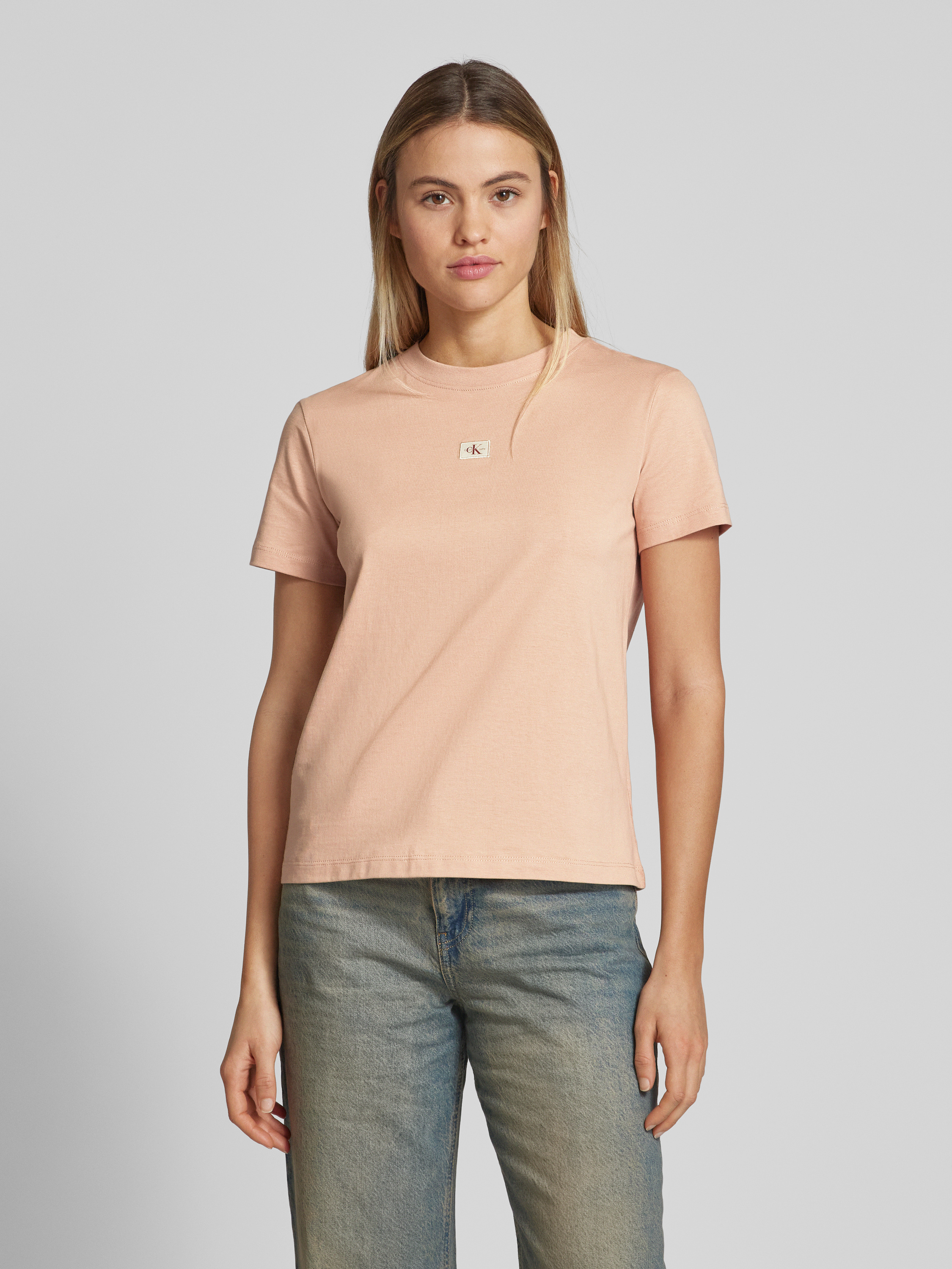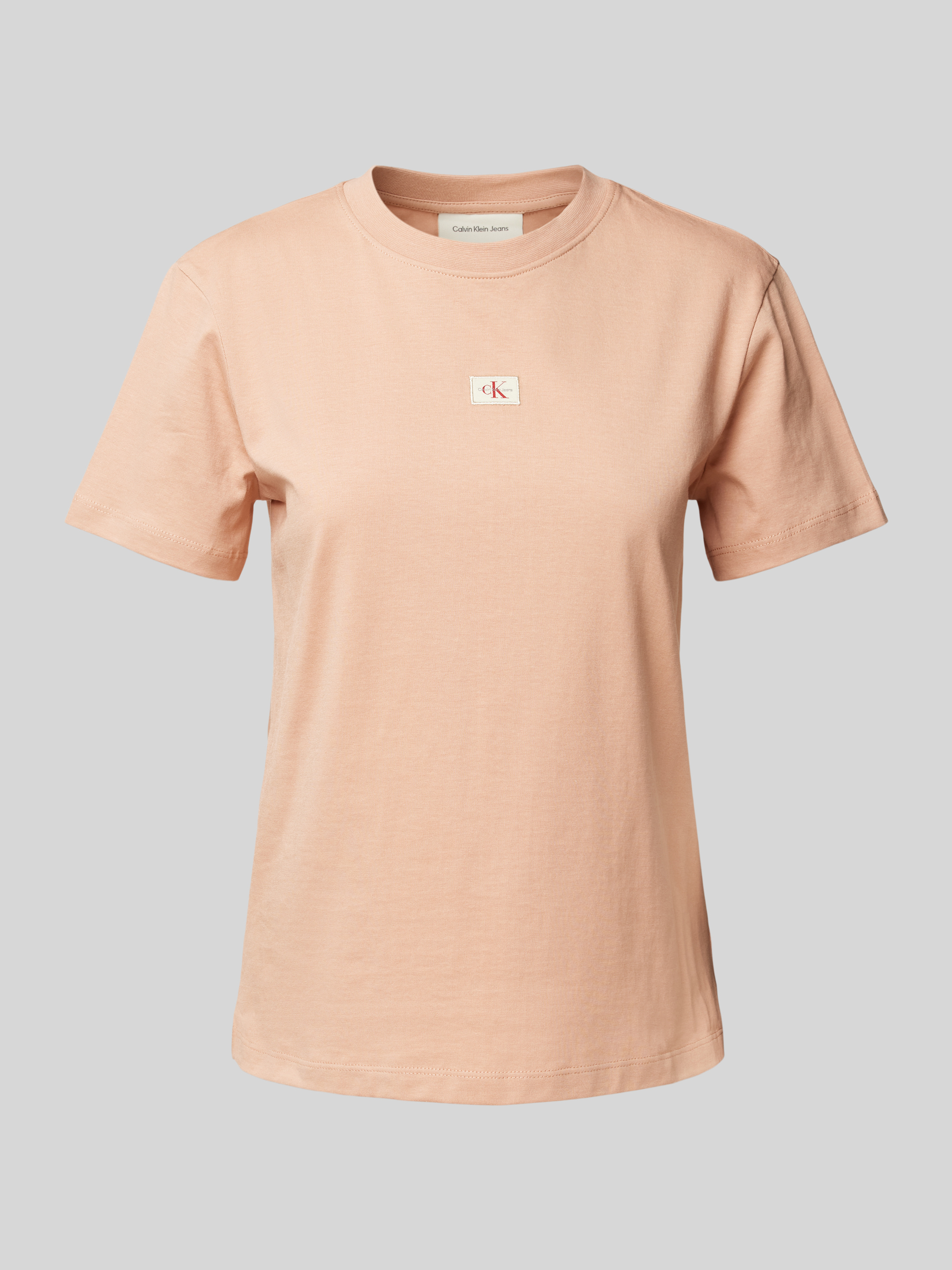 T-shirt o kroju regular fit z naszywką z logo - brudnoróżowy