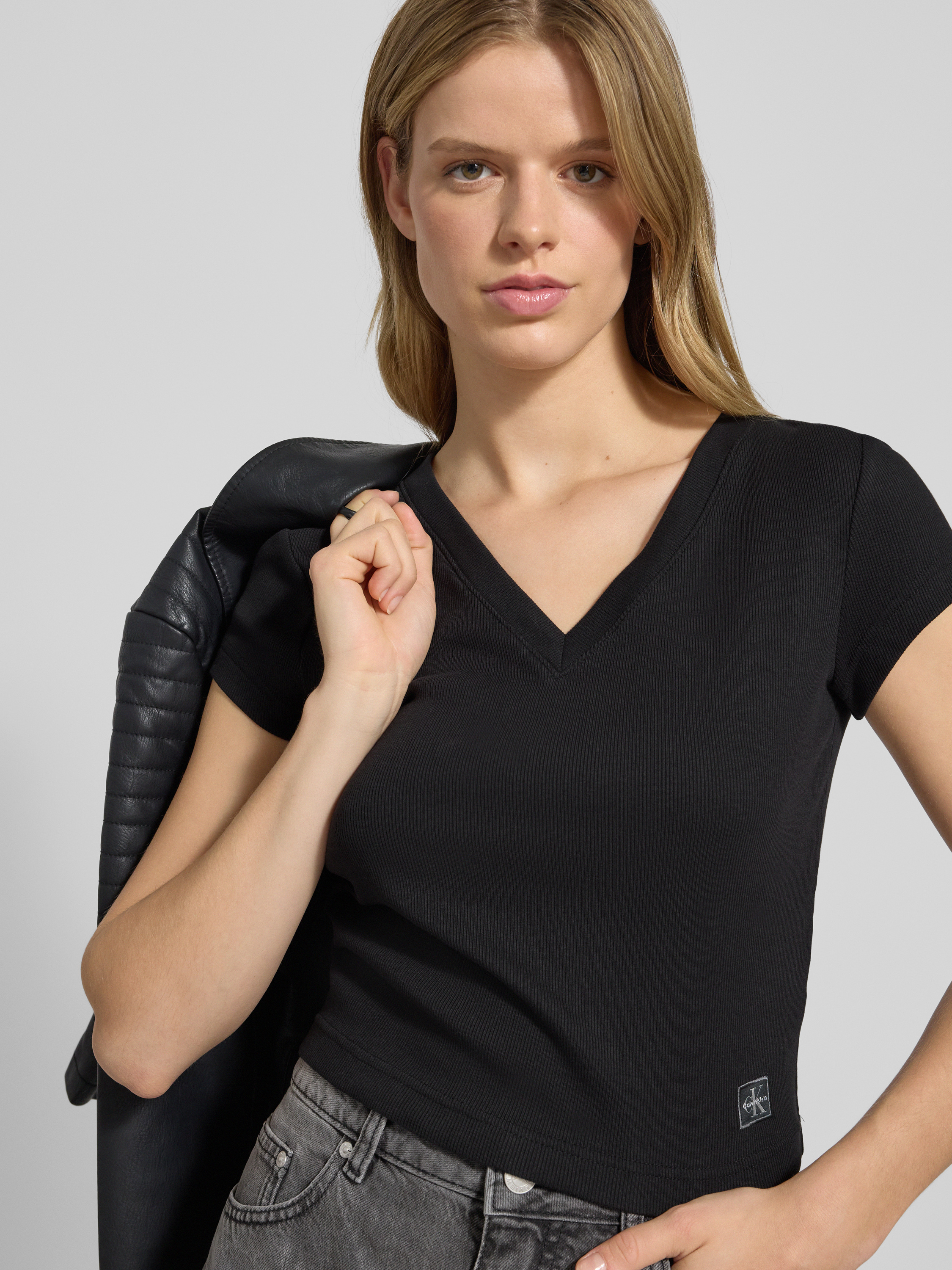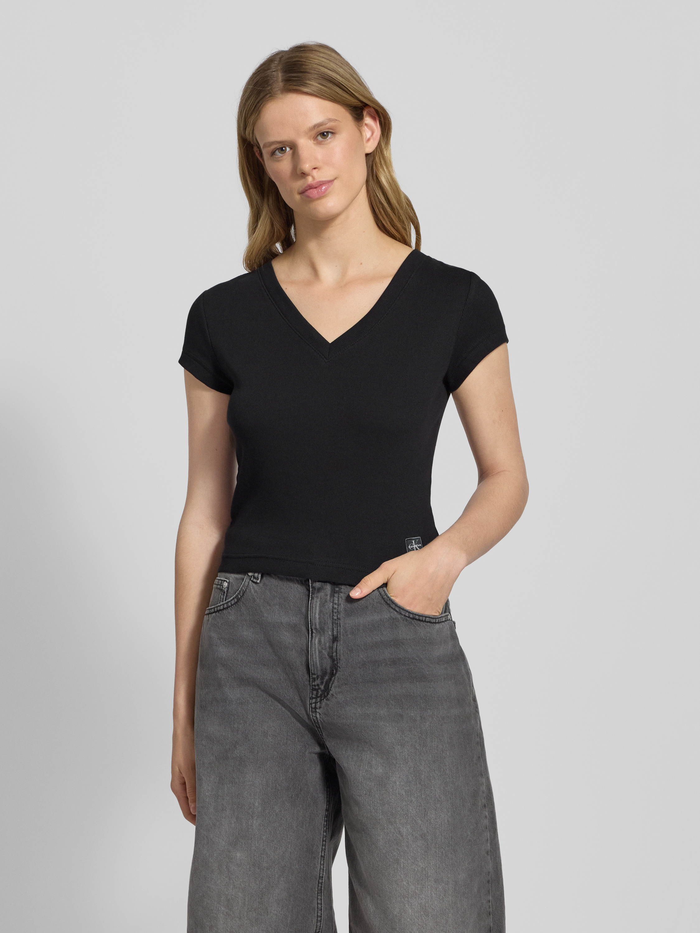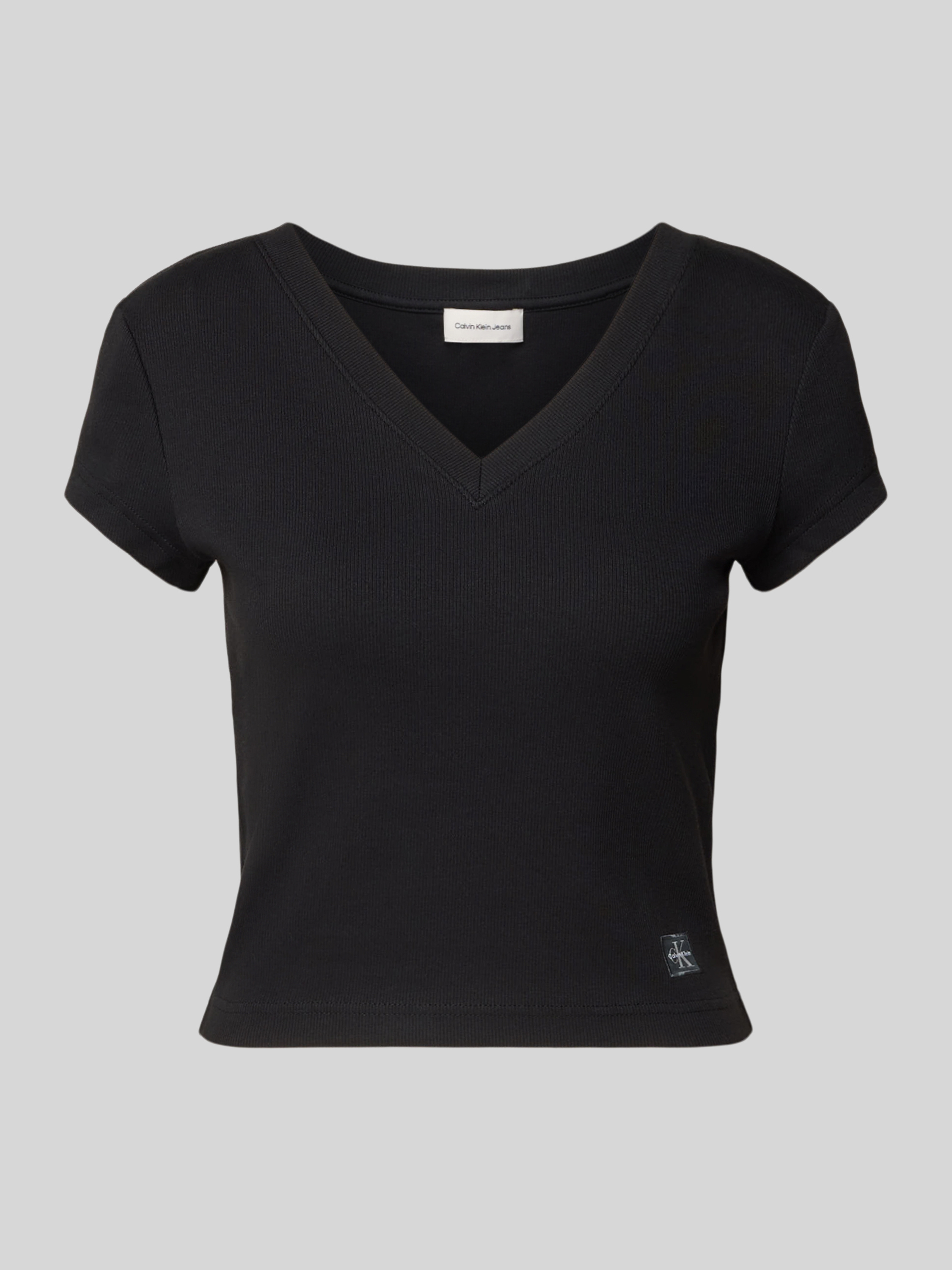 Dekolt w serek z prążkowanego ściągacza