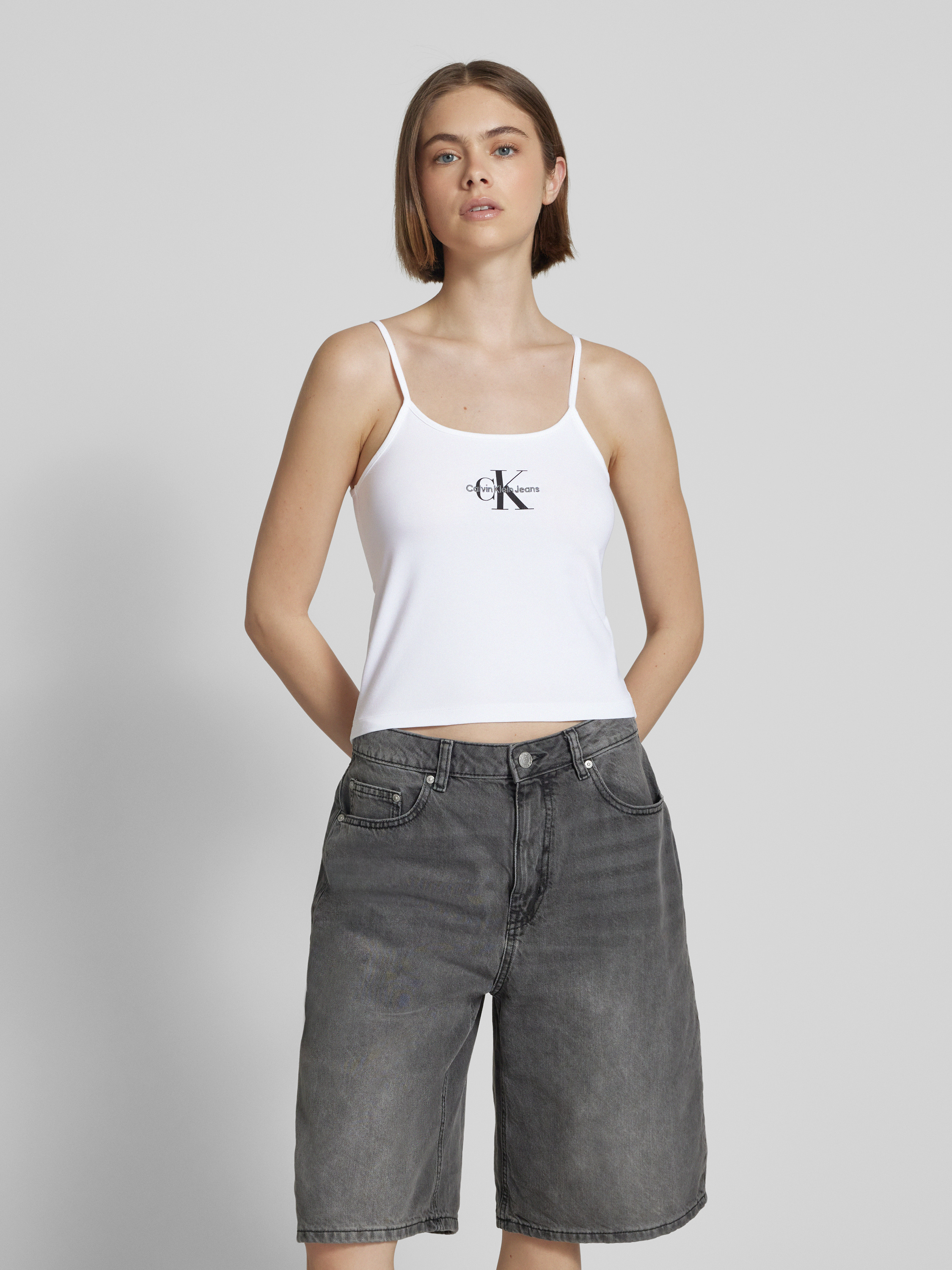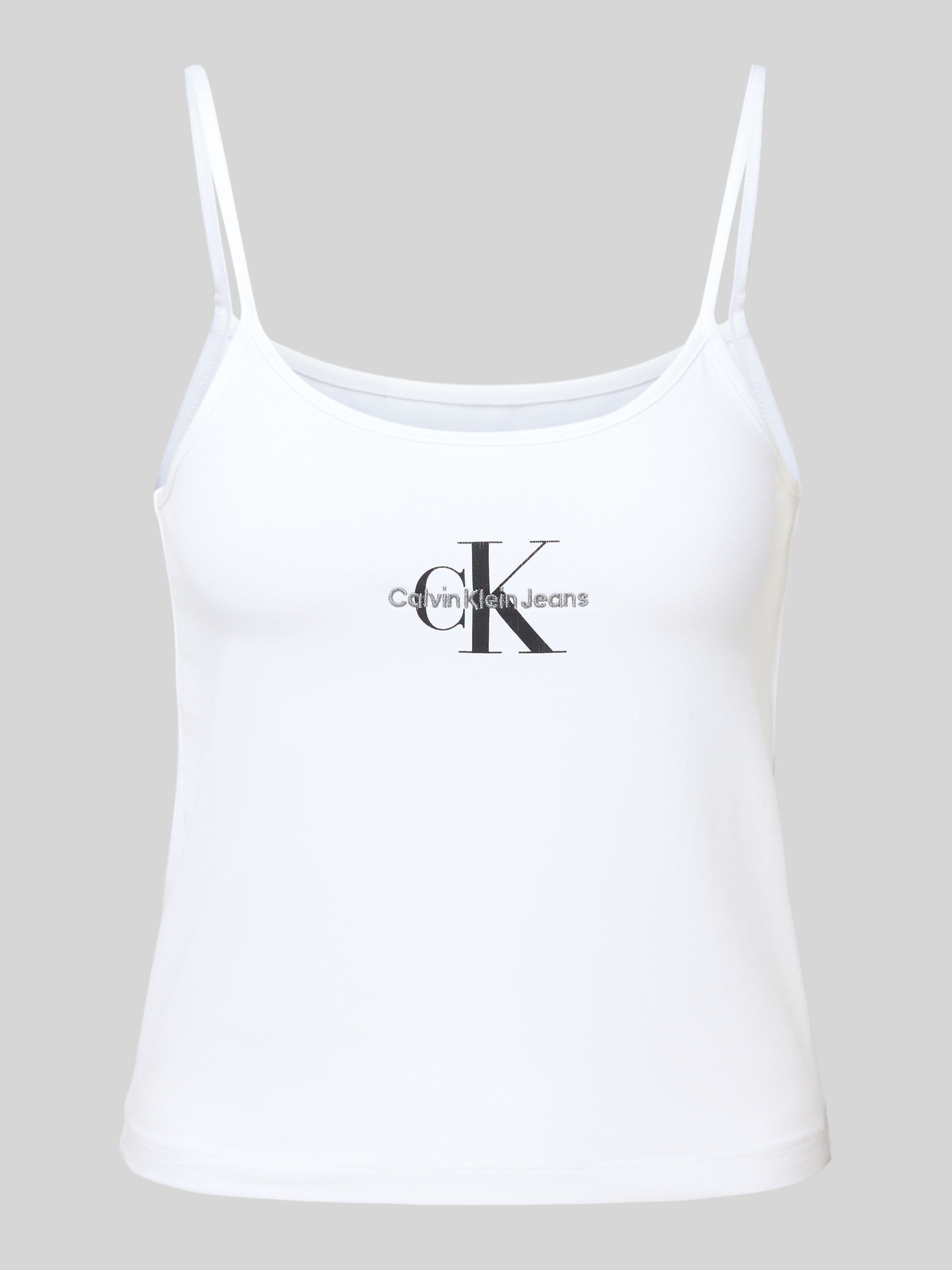 Top z przeszyciami i cienkimi ramiączkami - biały