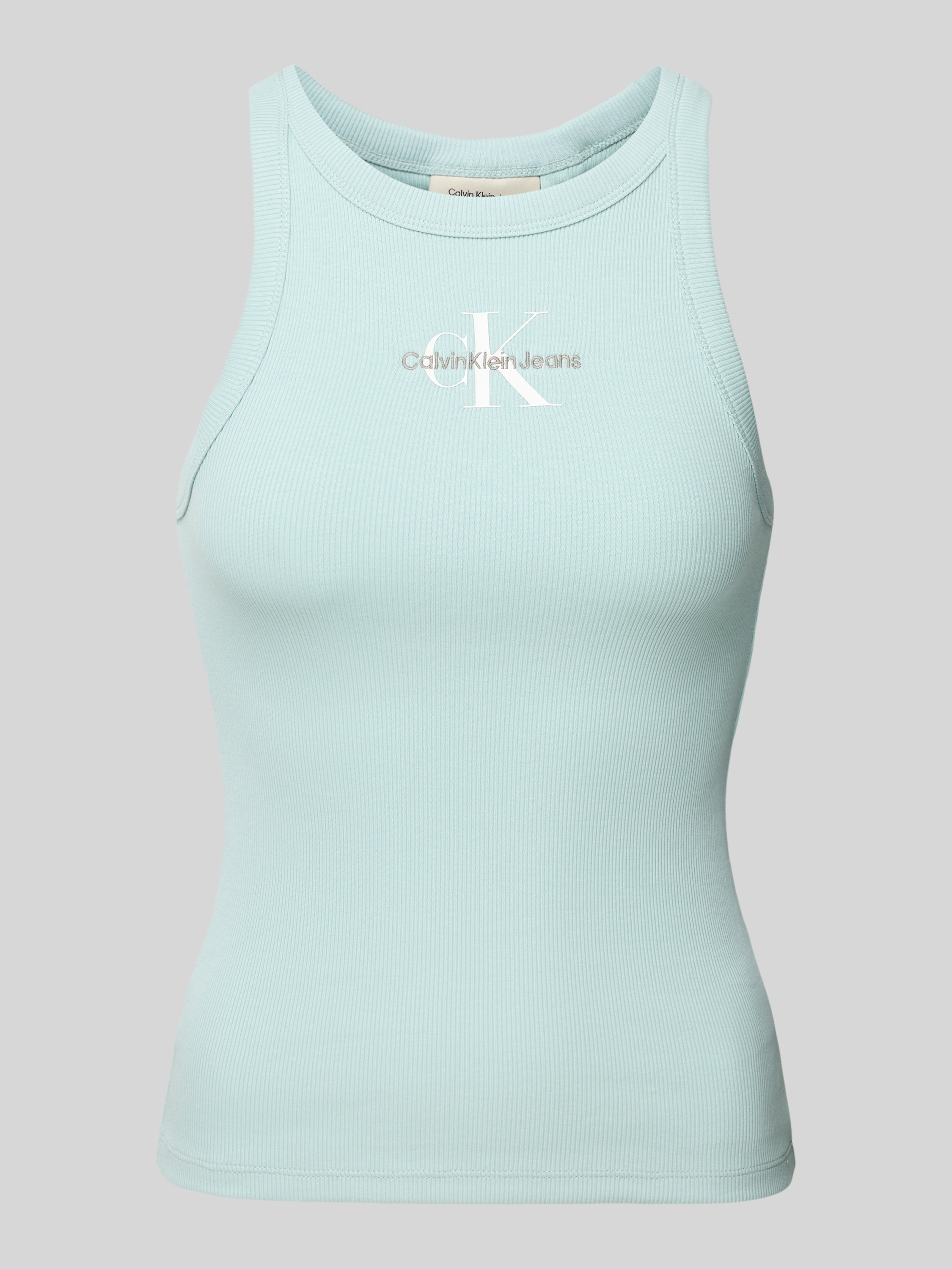 Top z wyhaftowanym logo i okrągłym dekoltem - miętowy