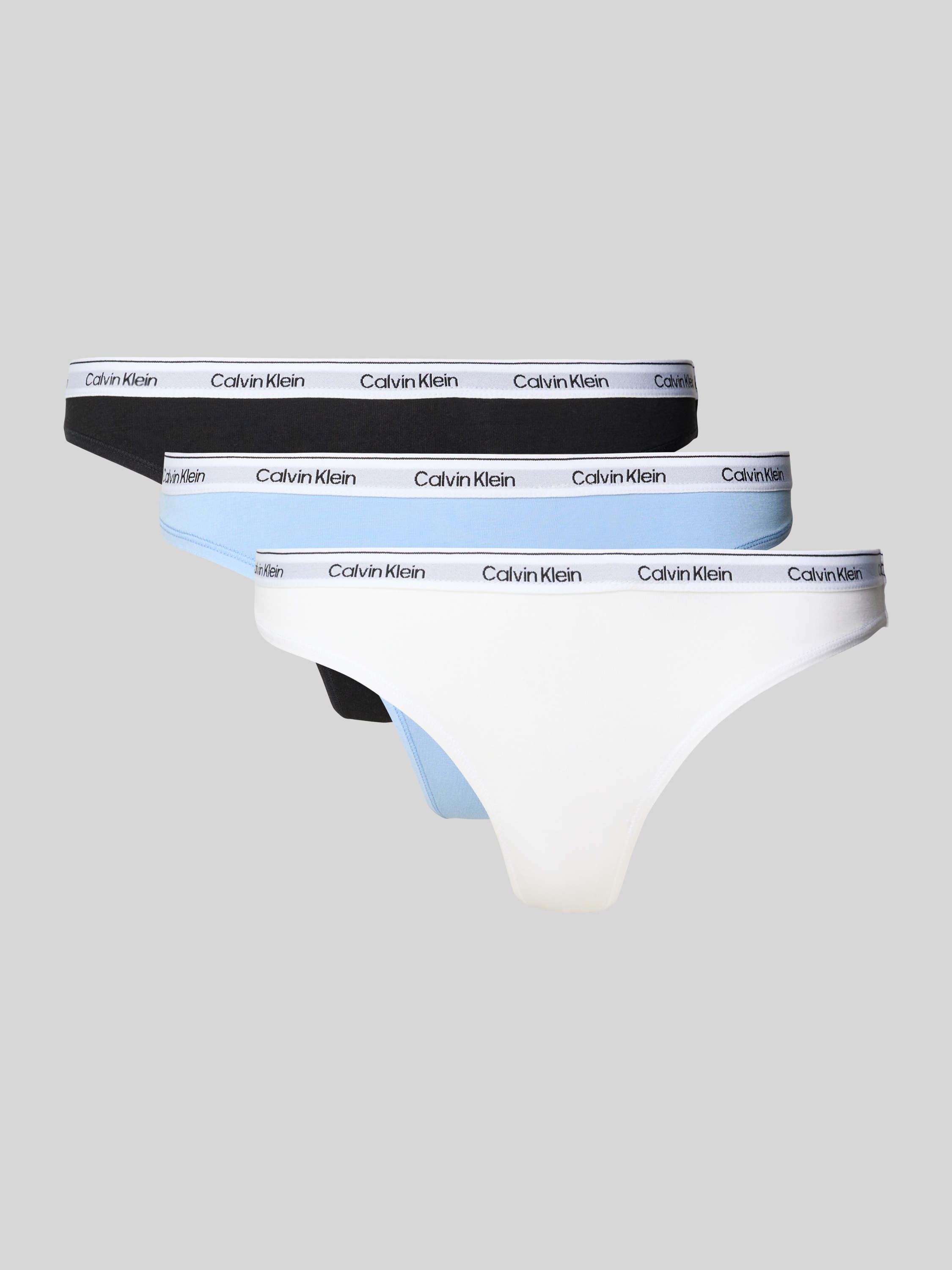 Stringi z wyhaftowanym logo w zestawie 3 szt. model ‘Modern’ - niebieski