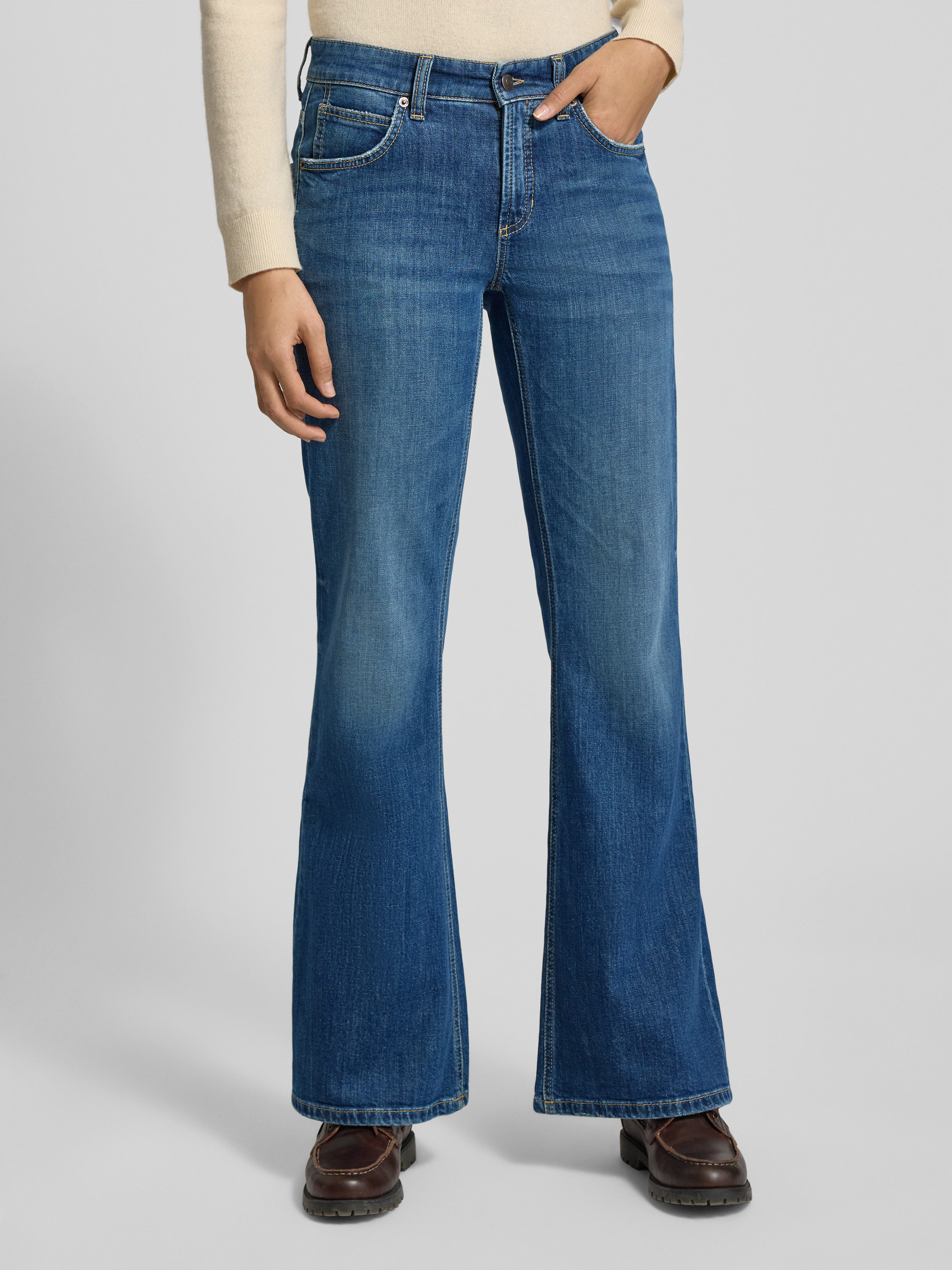 Jeansy rozkloszowane z 5 kieszeniami model ‘FABIENNE’ - niebieski